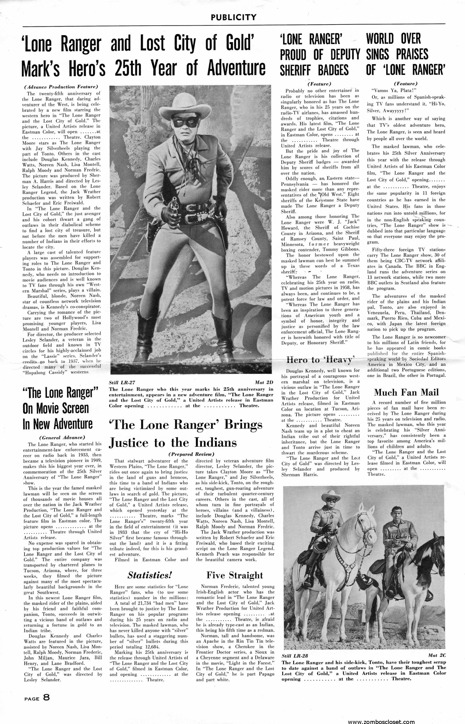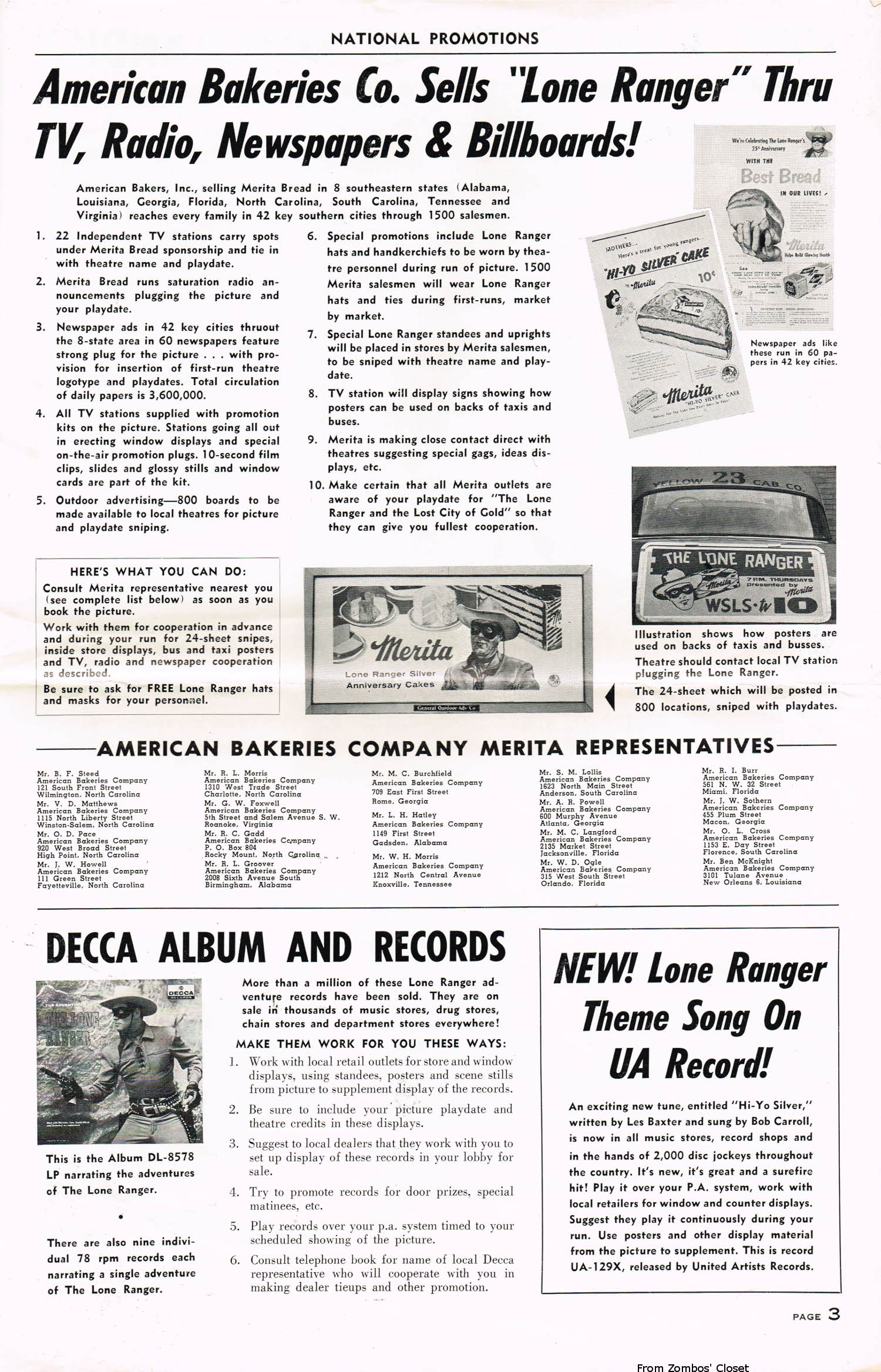 An incredible amount of merchandising went into promoting the Lone Ranger, even before he hit the theaters. With television episodes, comics, books, radio, toys, and General Mills and American Bakeries food products already gobbled up by kids daily, a movie would be easy to promote. Hi-Yo, Silver! indeed.