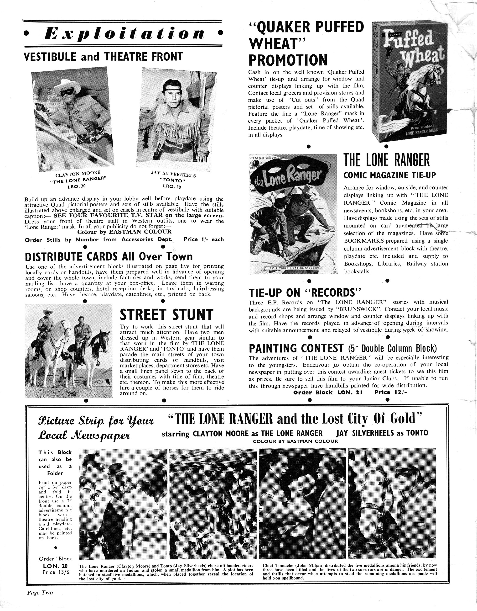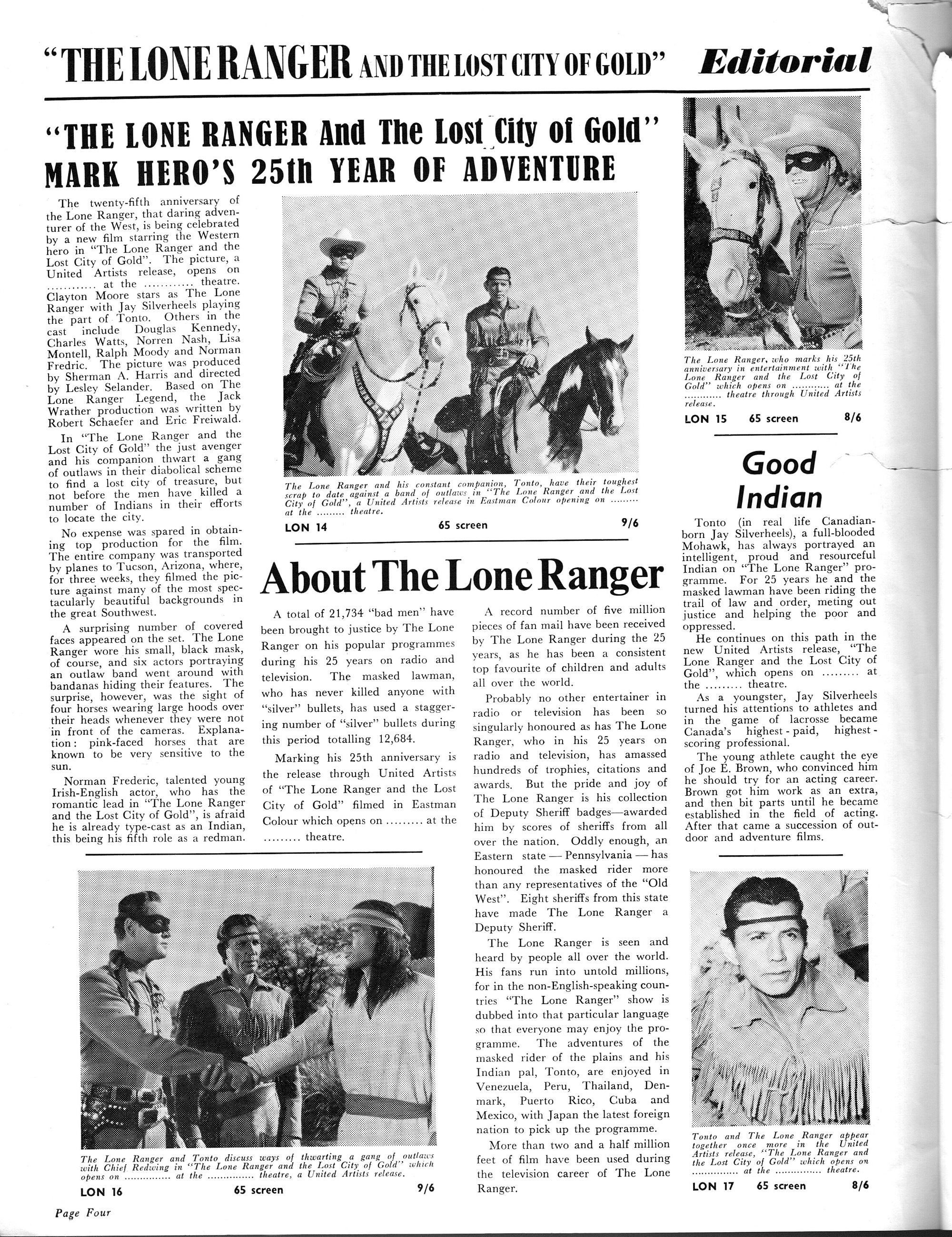 Here's the British pressbook for the Lost City of Gold (1958) with the Lone Ranger. Mind you, this is the real deal, not the buffoonish misfire starring Johnny Depp and Armie Hammer. Here's the comic book reader version for you hombres and hombrettes: Download Lone Ranger British Pressbook