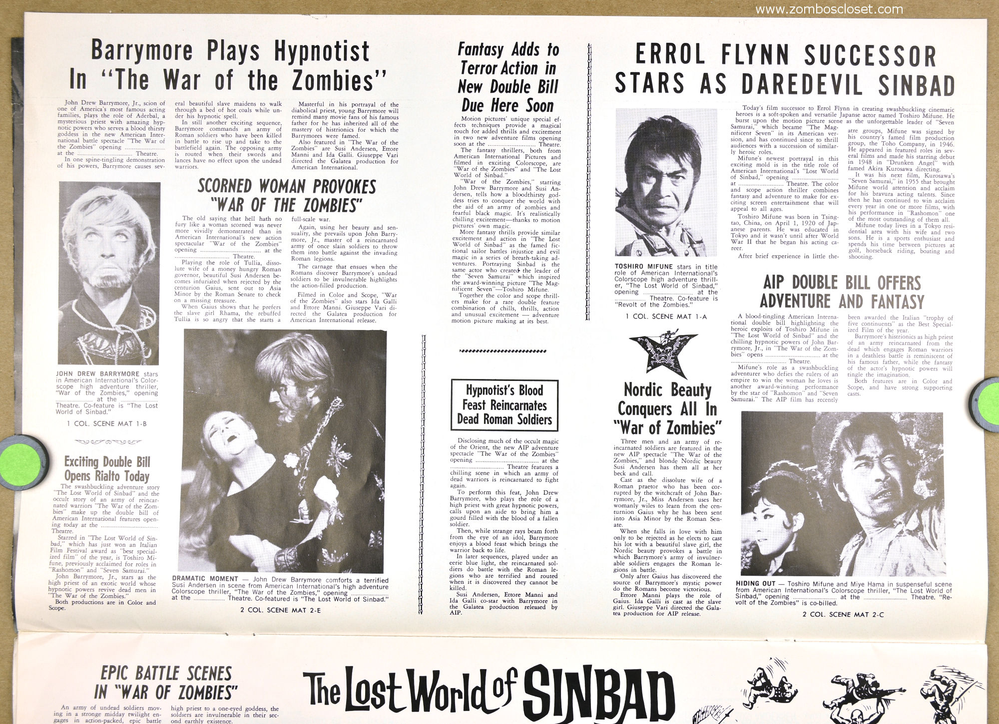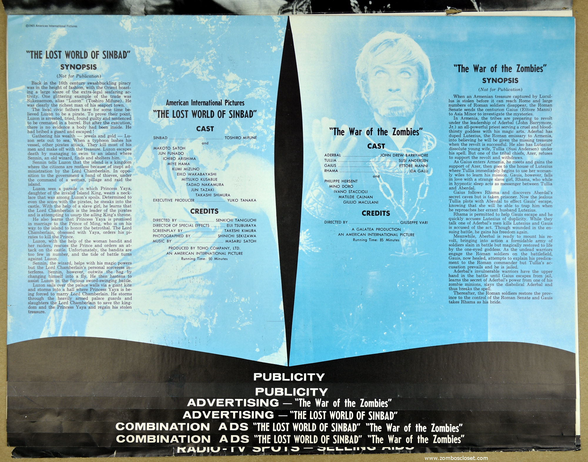 What more could you ask for in a double bill? Not only do you get some salty action with The Lost World of Sinbad, you get to witness the undead crossing swords with the living in Rome Against Rome (aka War of the Zombies)! Of course, it would be more exciting to see Sinbad fighting zombies, but you can't have everything.