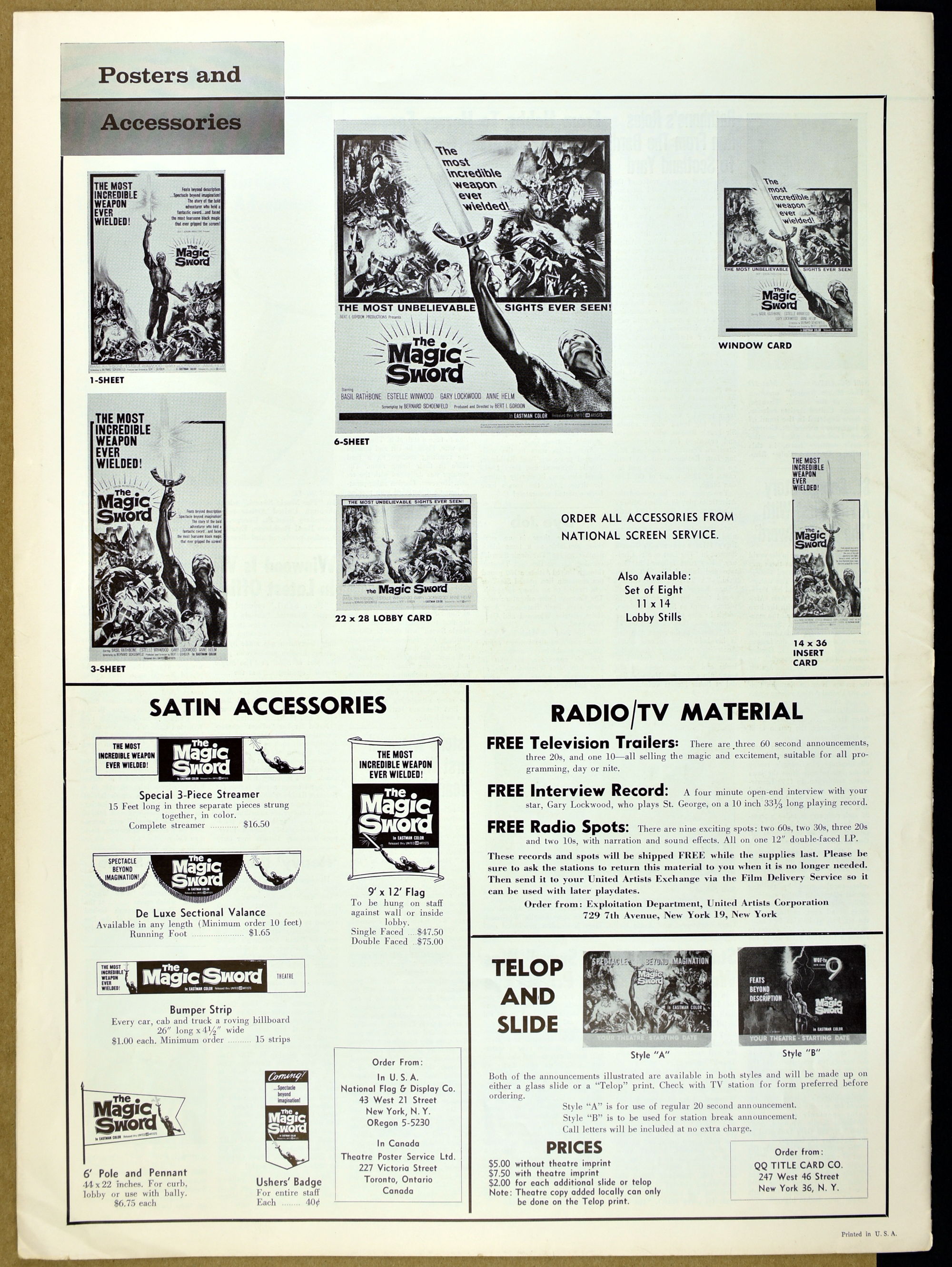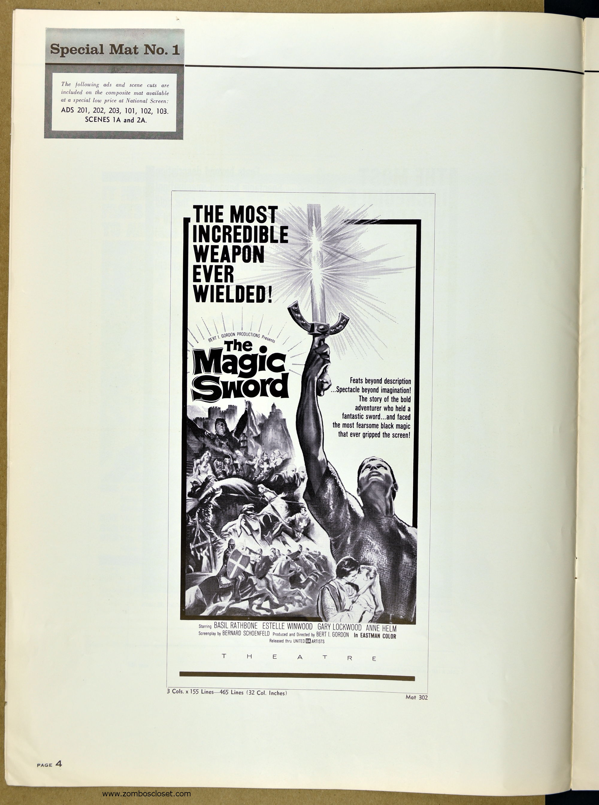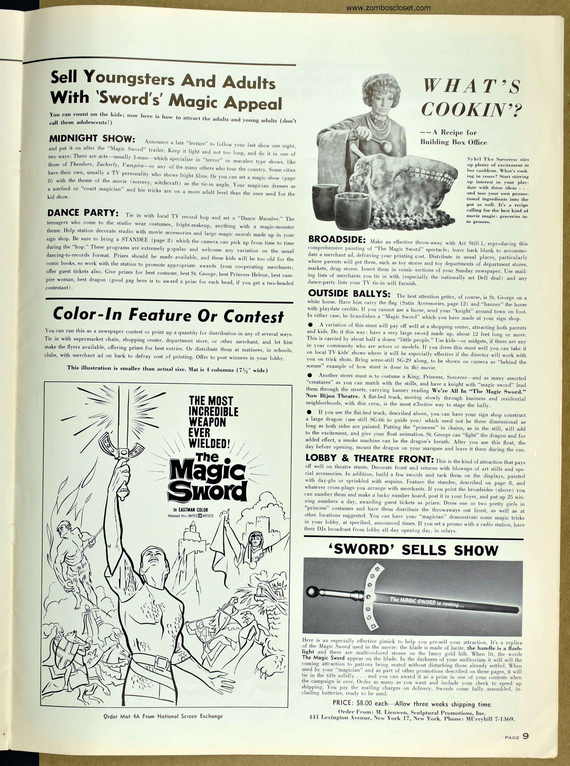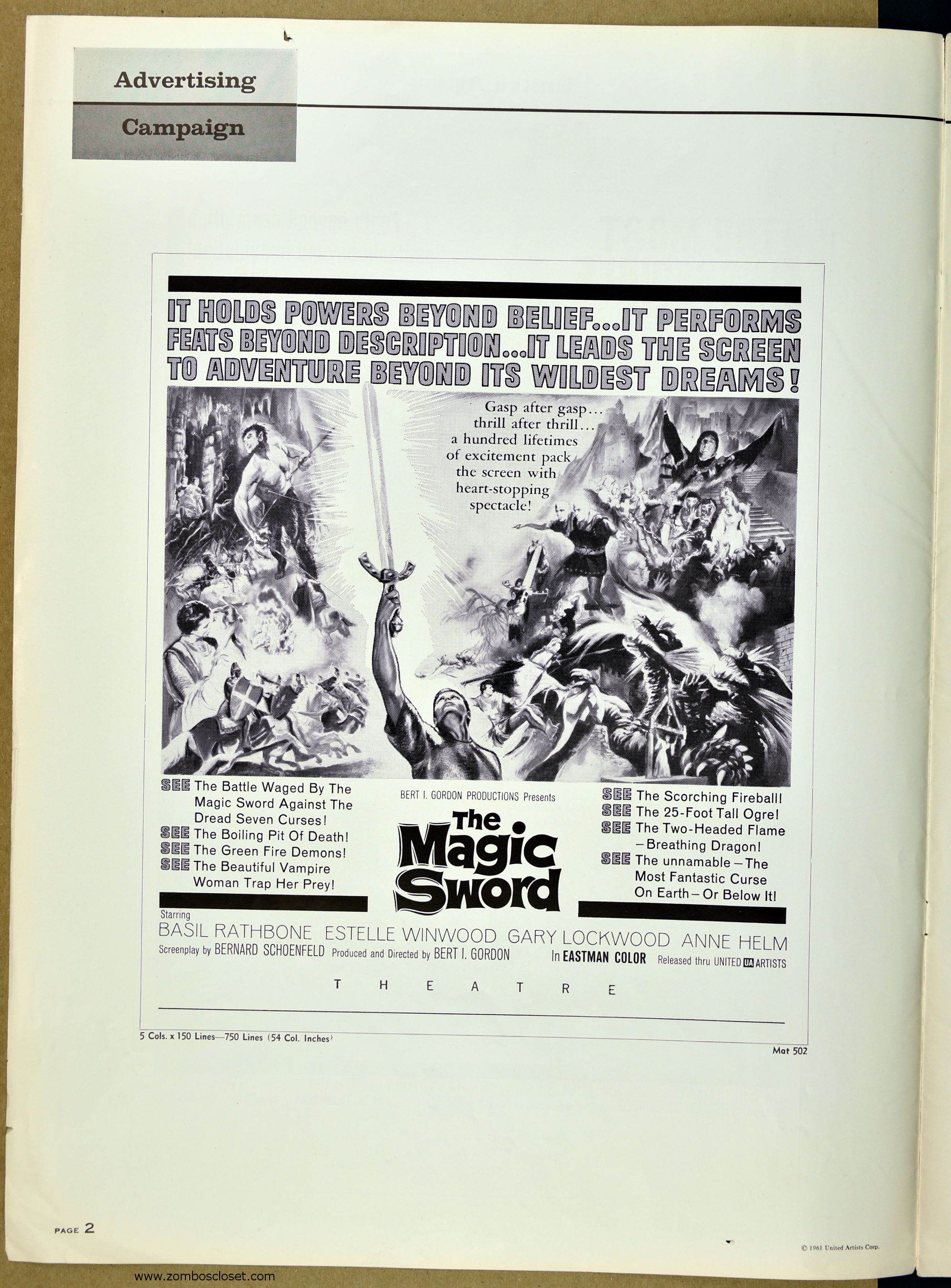 Arguably Burt I. Gordon's best movie, The Magic Sword delivered an effective fantasy that certainly left an impression on me when I first saw it in the 1960s. Worth a crusade or two, the lobby standee, and that awesome giveaway flashlight sword, are two treasures I'd love to cast a spell on for my collection.