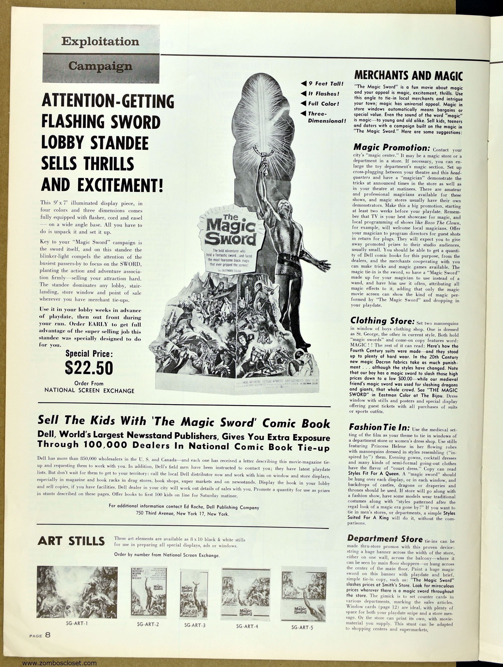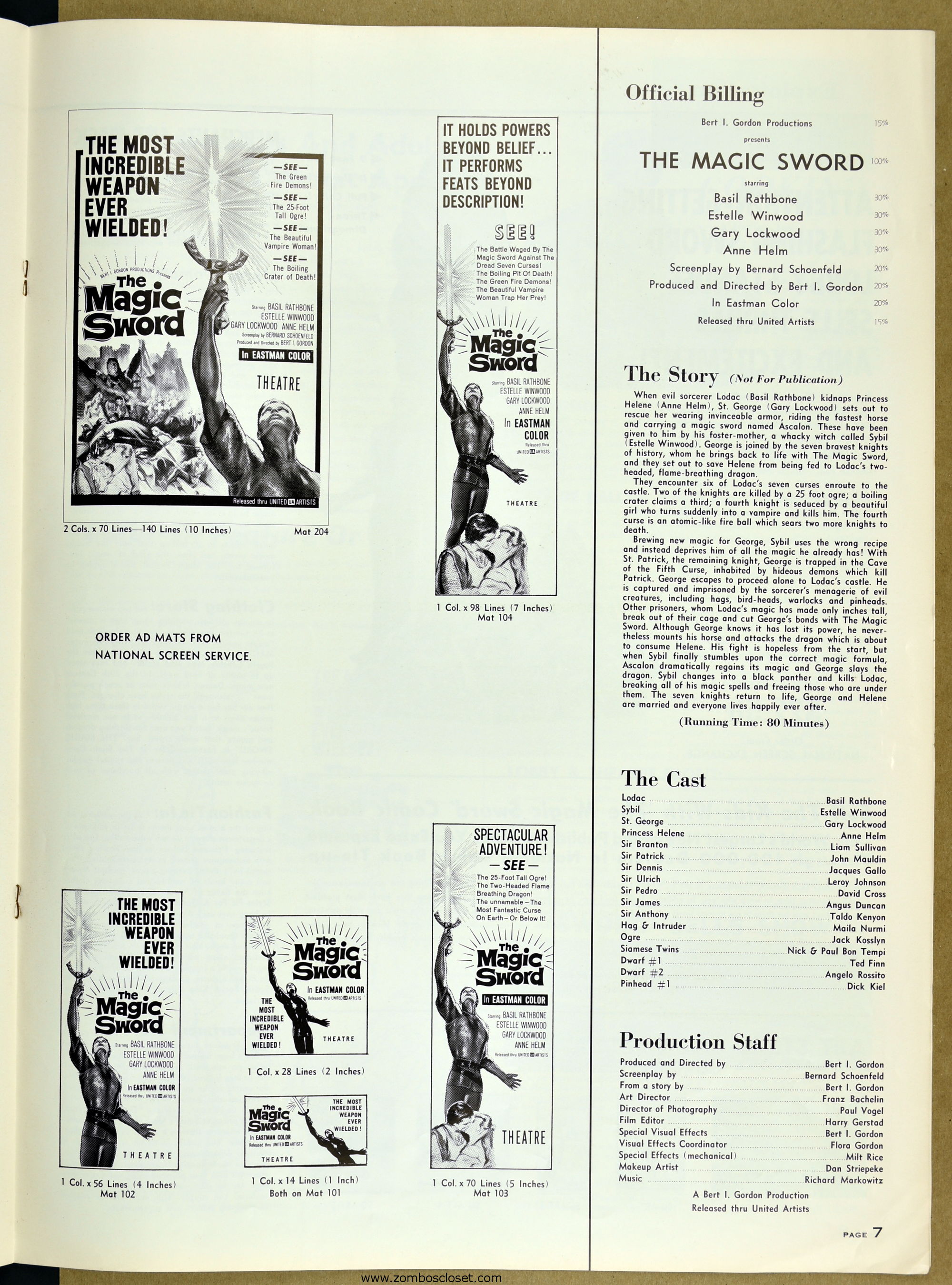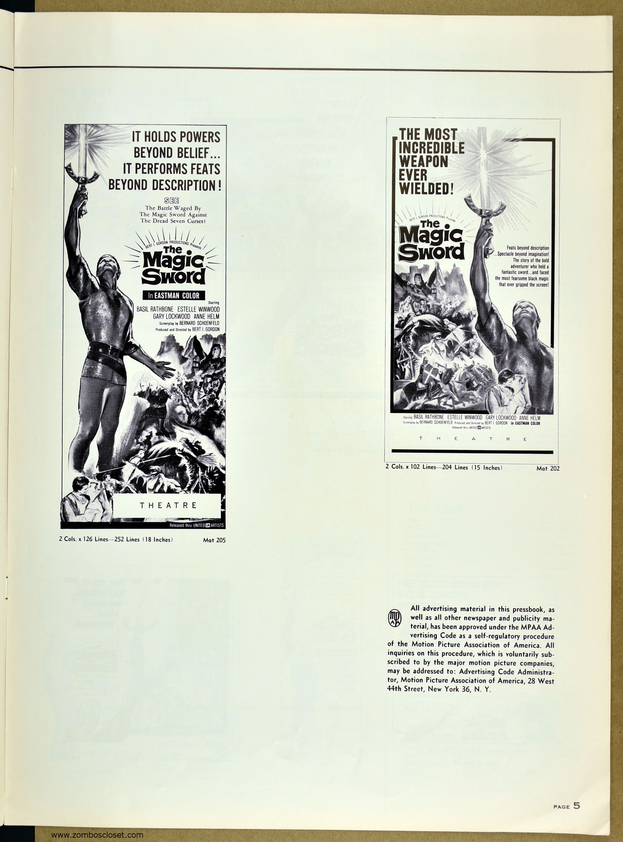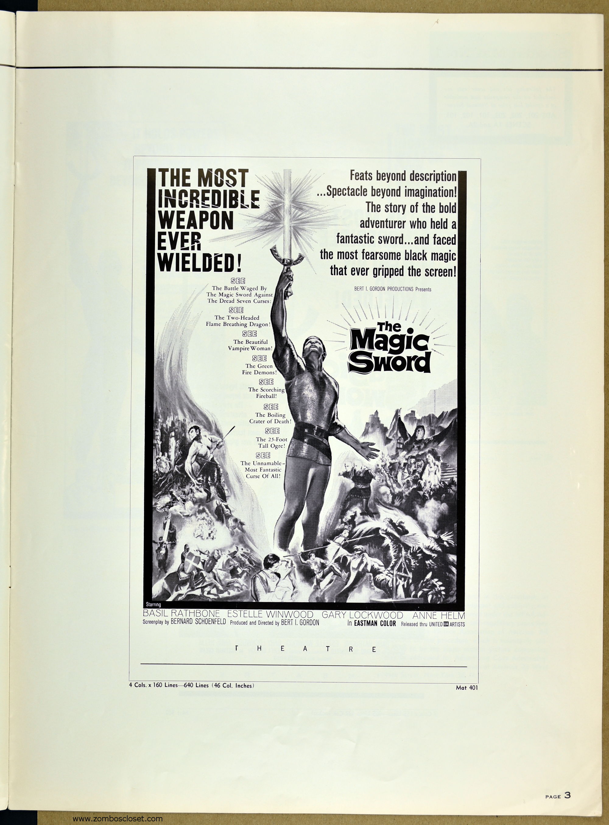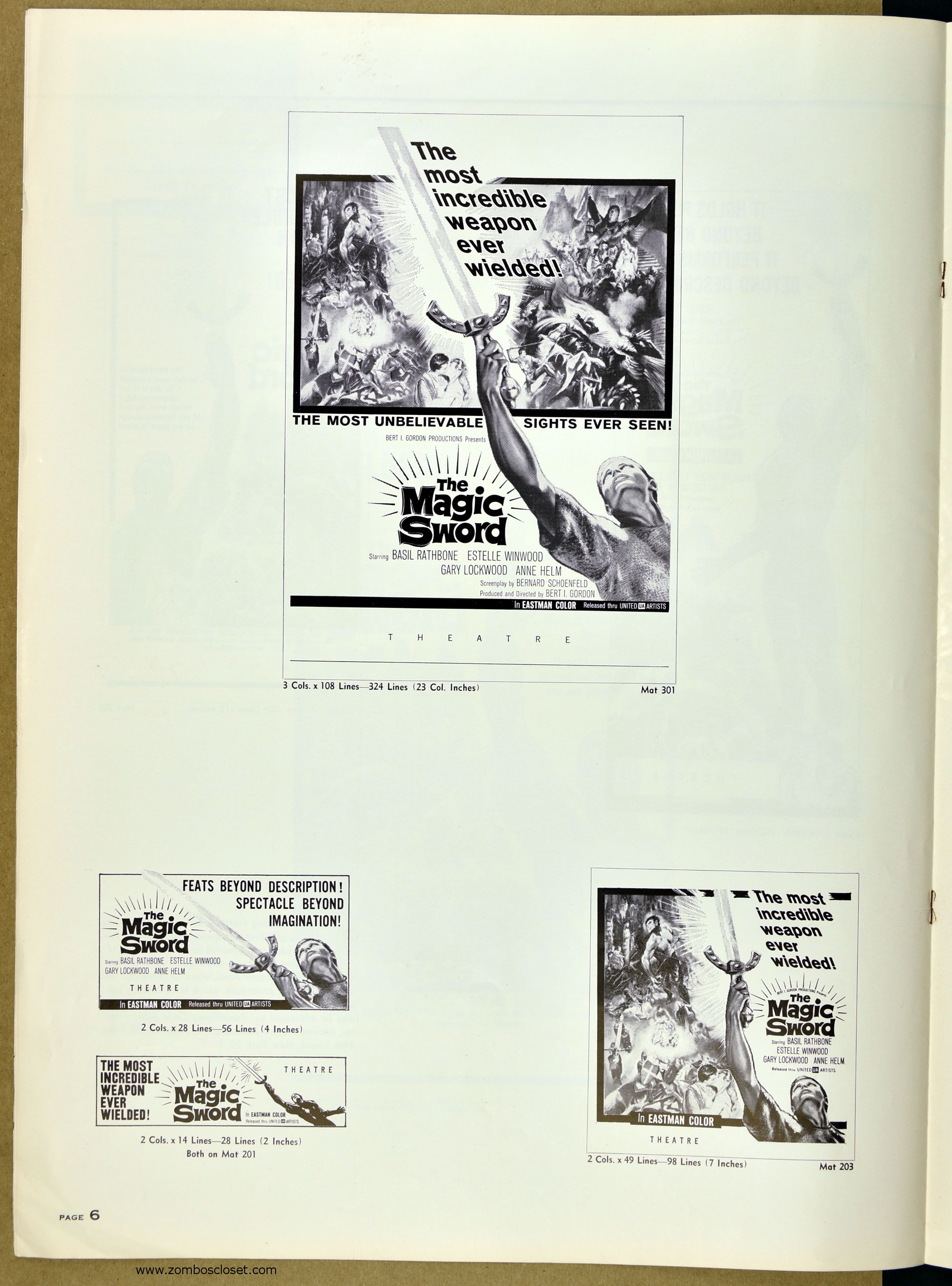 Arguably Burt I. Gordon's best movie, The Magic Sword delivered an effective fantasy that certainly left an impression on me when I first saw it in the 1960s. Worth a crusade or two, the lobby standee, and that awesome giveaway flashlight sword, are two treasures I'd love to cast a spell on for my collection.