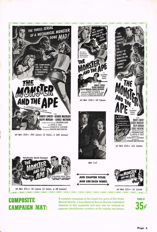 This serial contains two horror staples: an ape and a robot. I love it. Forget the story, I just want to see the ape and the robot beat each other up. Hey! Wait a minute…what if you put a zombie up against an ape? I think I just got the new spook show theme for the 21st Century!