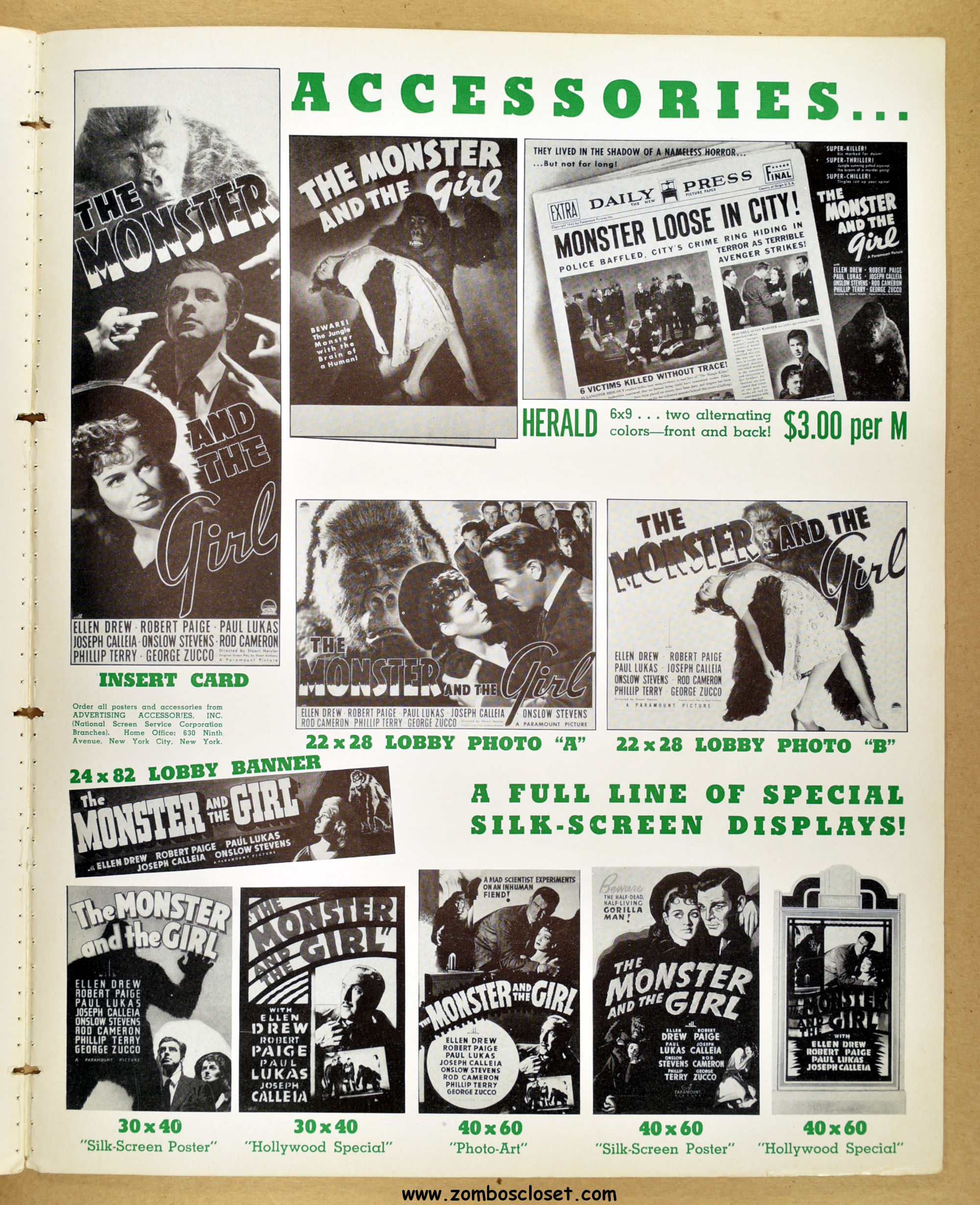 The Monster and the Girl (1941) Pressbook