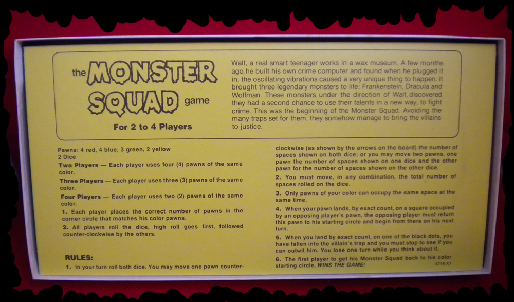 Here’s the Milton Bradley game based on the Monster Squad Saturday morning series, airing 1976 to 1977, for fans who yearned, like I did, for one of those utility belts they wore. (Click each picture to open in browser, then click again to enlarge. Use your browser’s back button to return.)