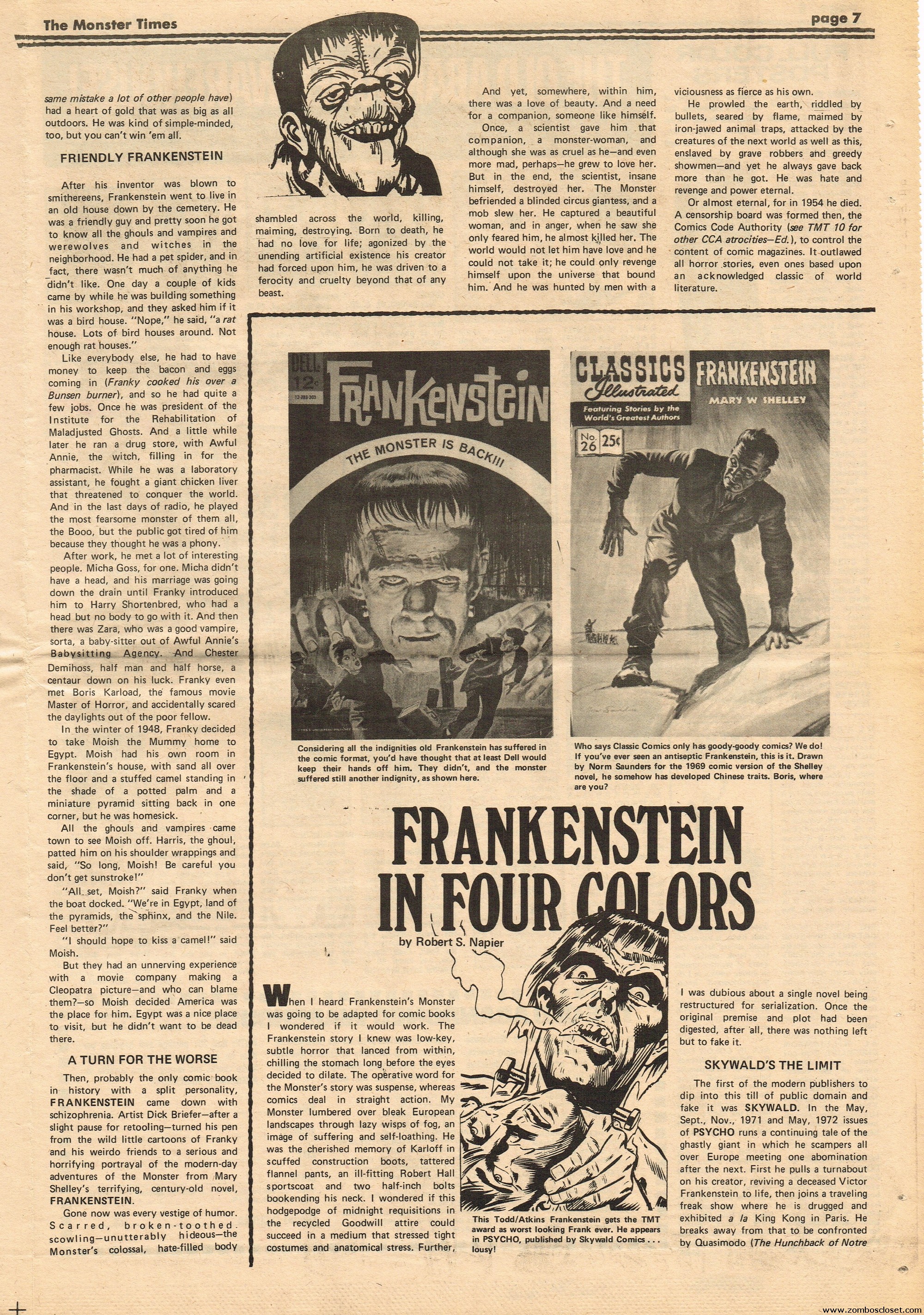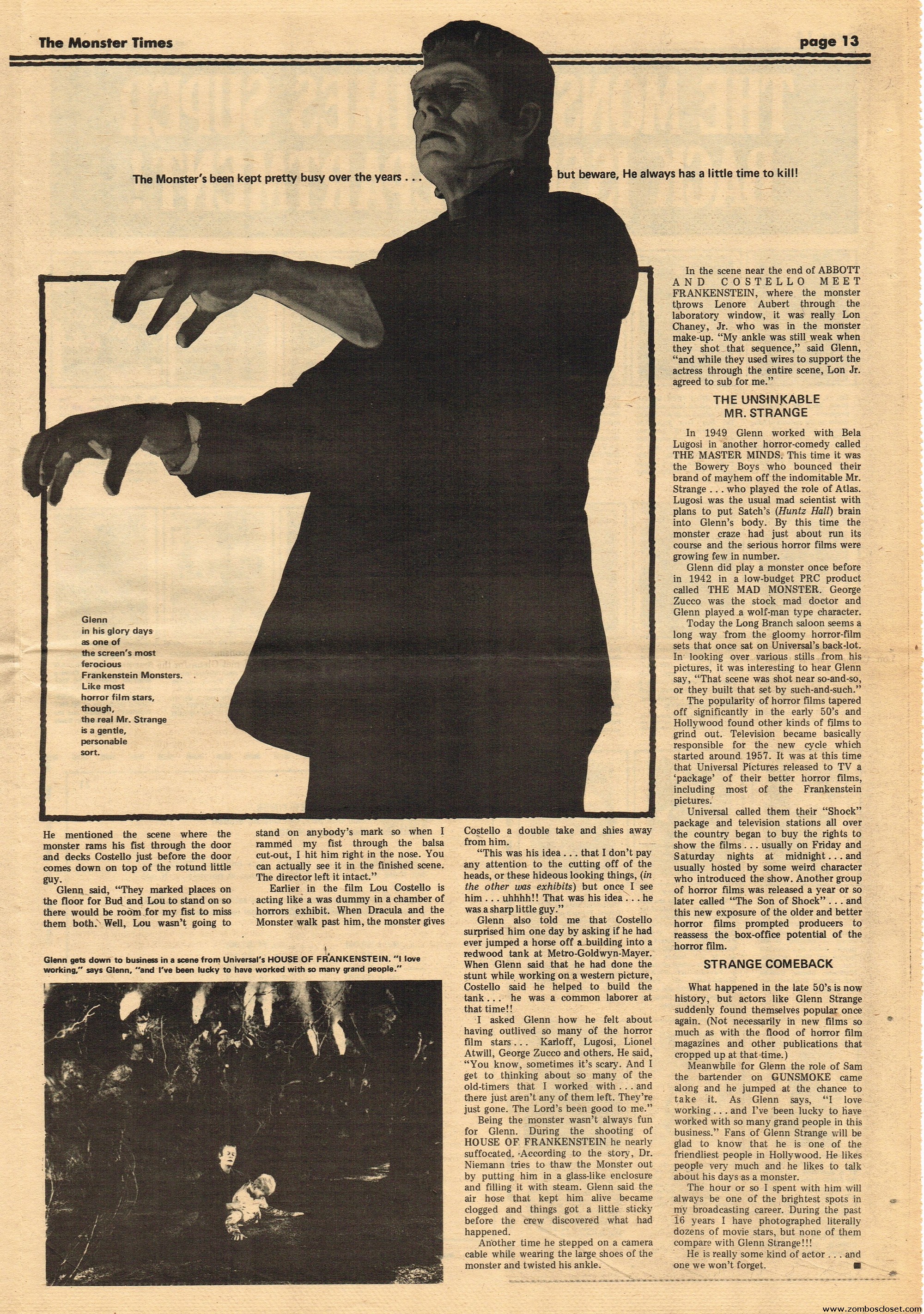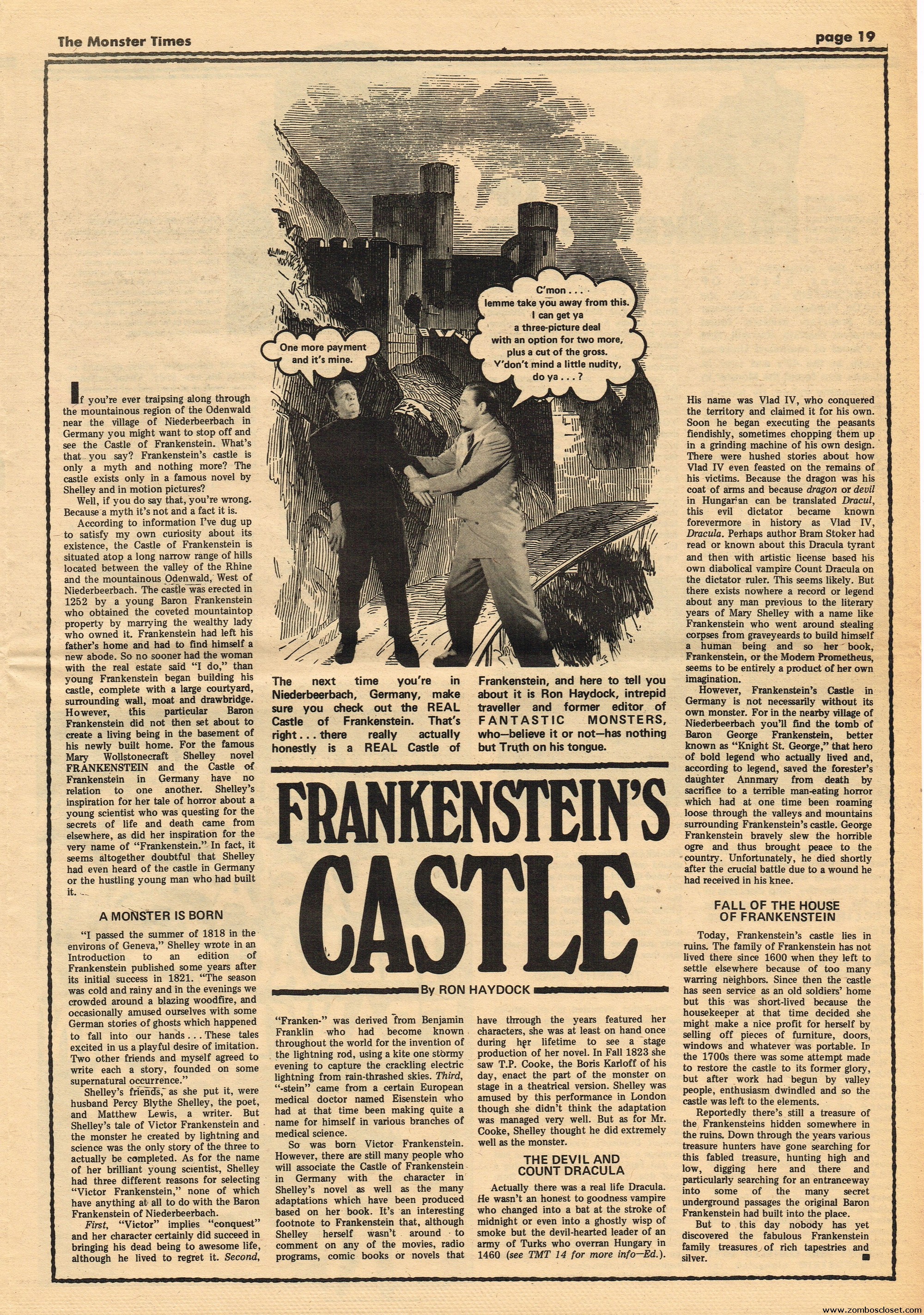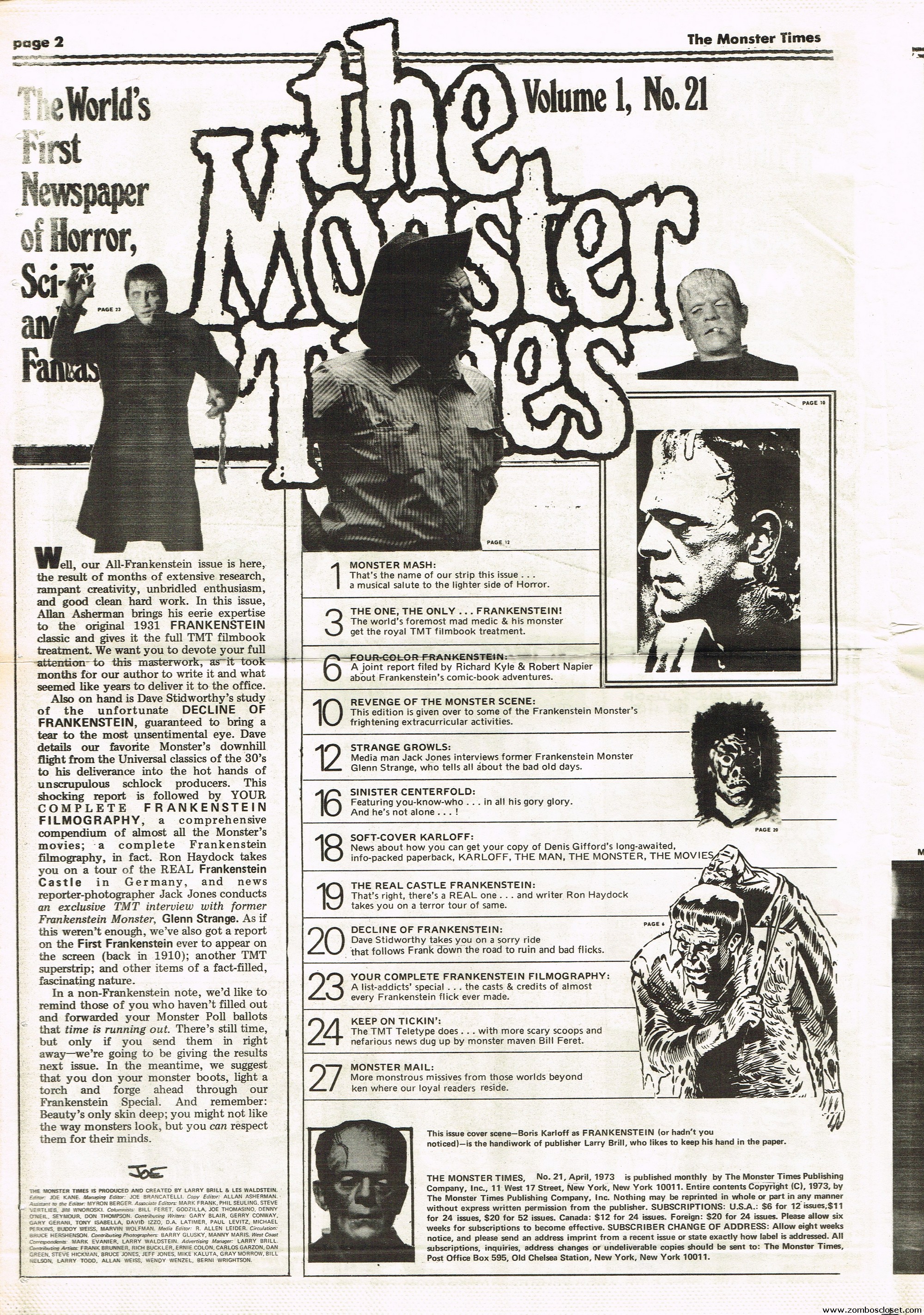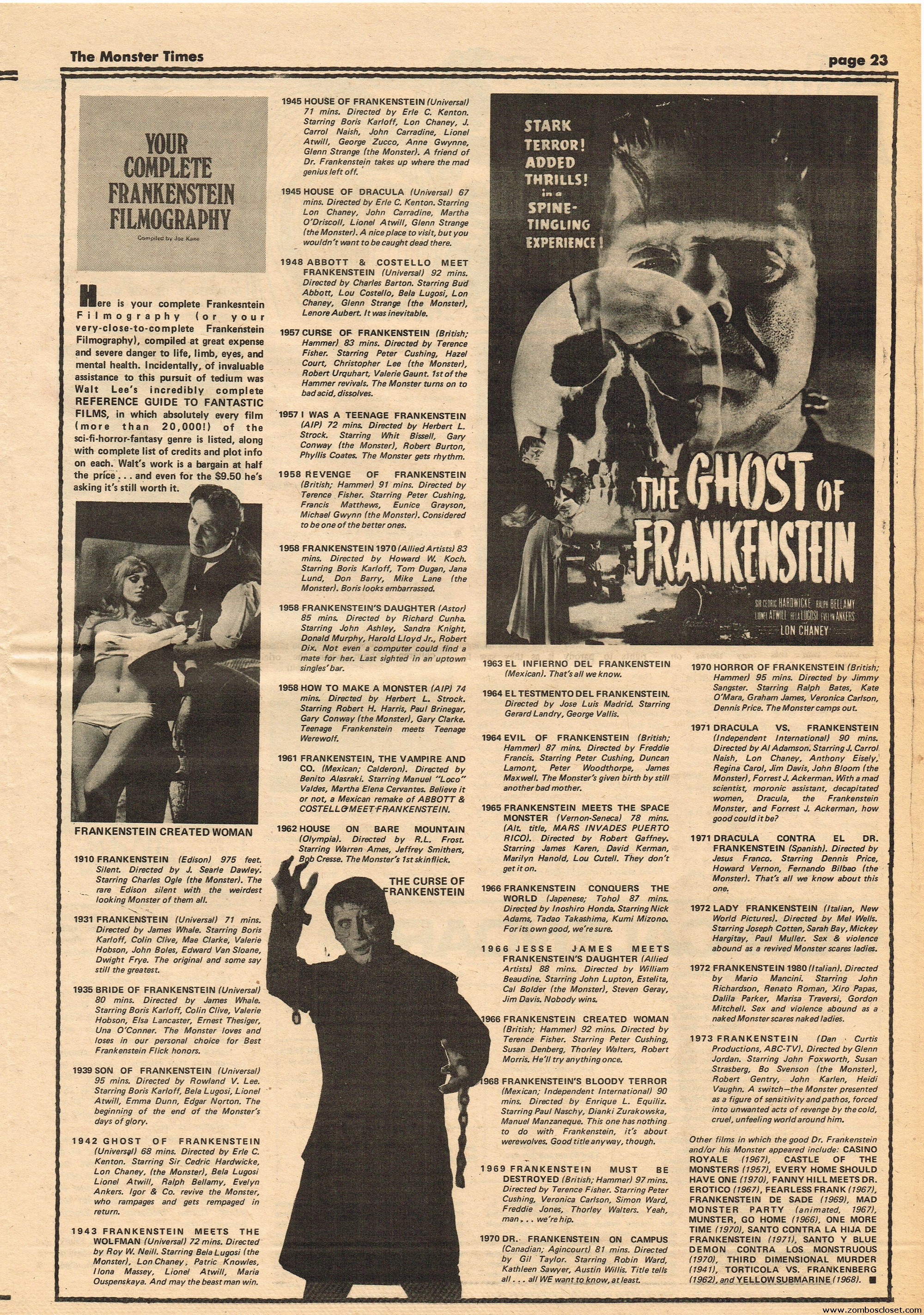 An all-Frankenstein (really they meant The Monster, for you purists) issue of The Monster Times, for number 21, makes for stellar reading. A Glenn Strange interview, Frankenstein in the Comics, Frankenstein’s Castle, The Decline of Frankenstein (bite your electrode!), Frankenstein’s Bloody Terror, and the usual TMT stuff to keep you busy. Whew!