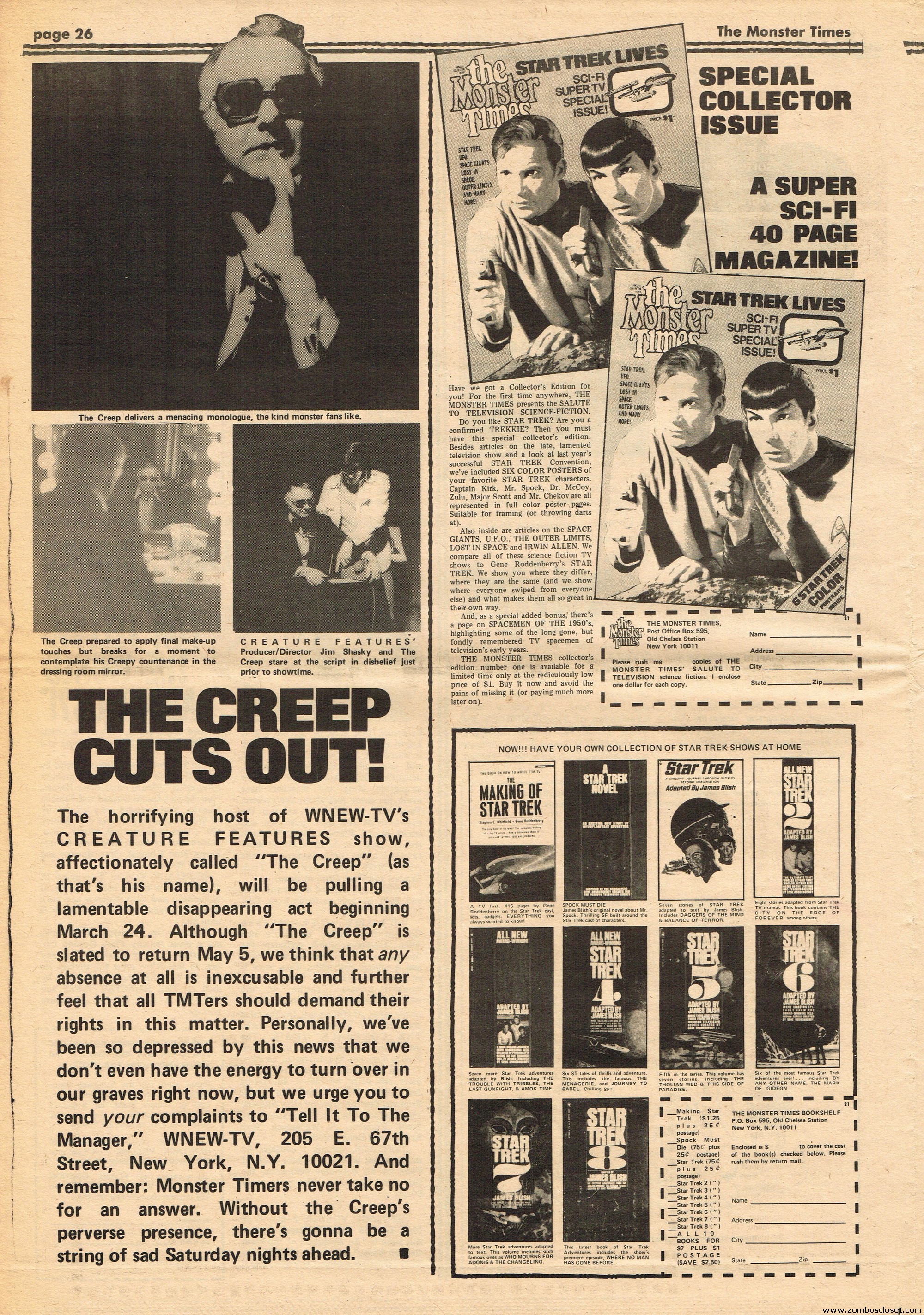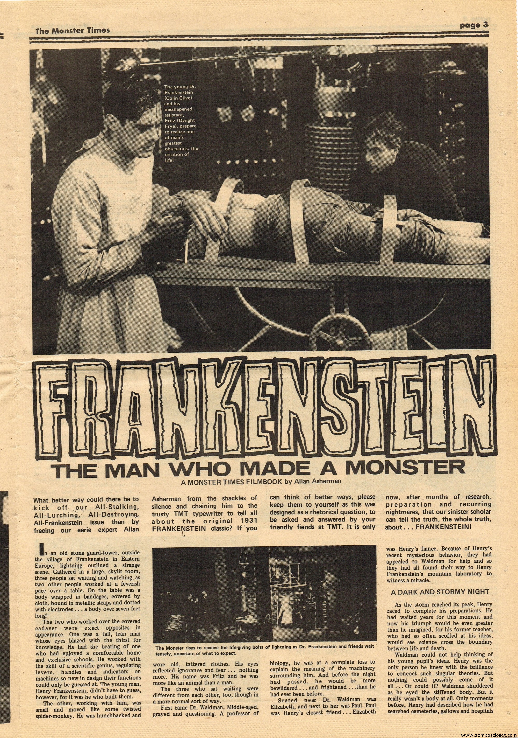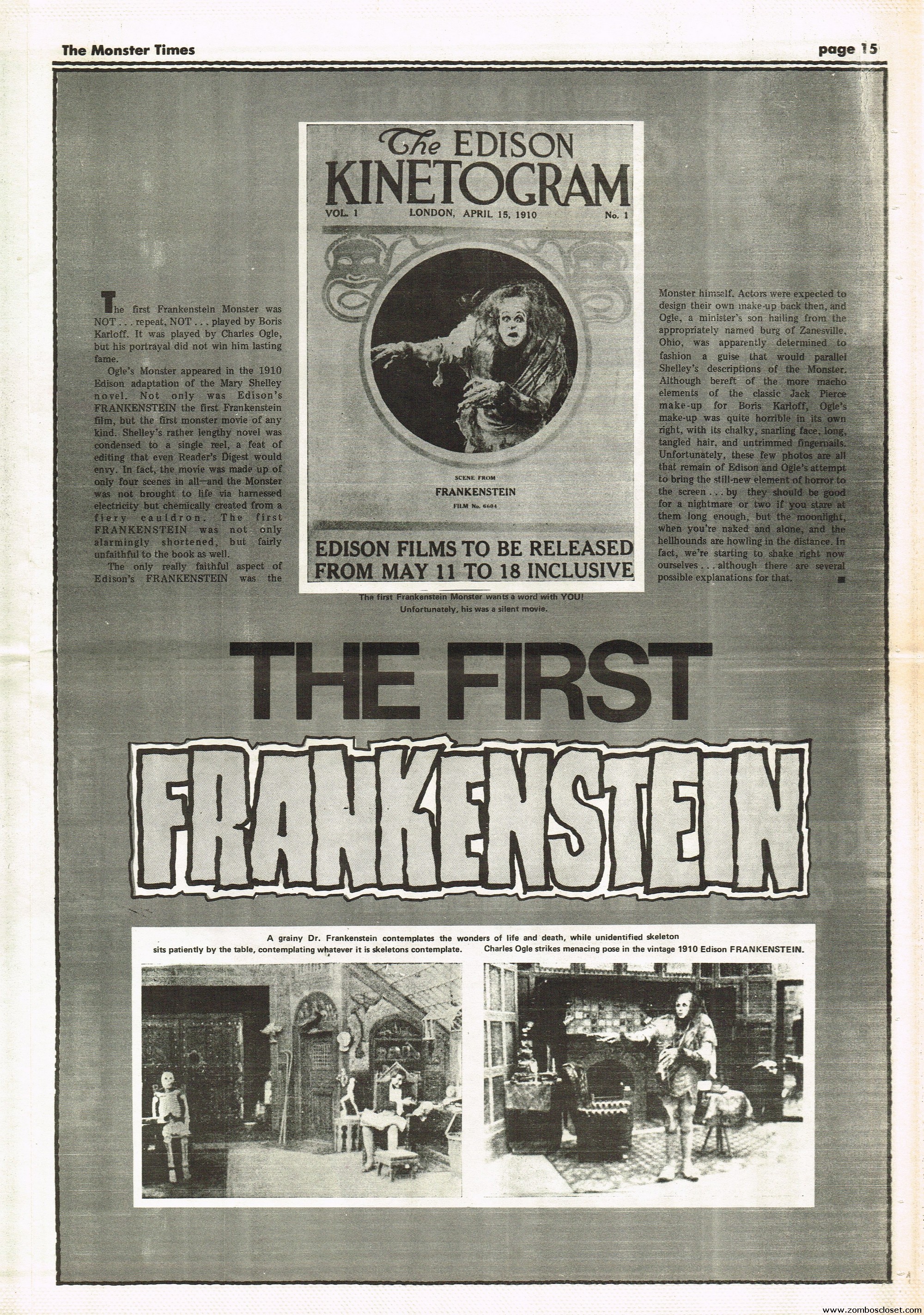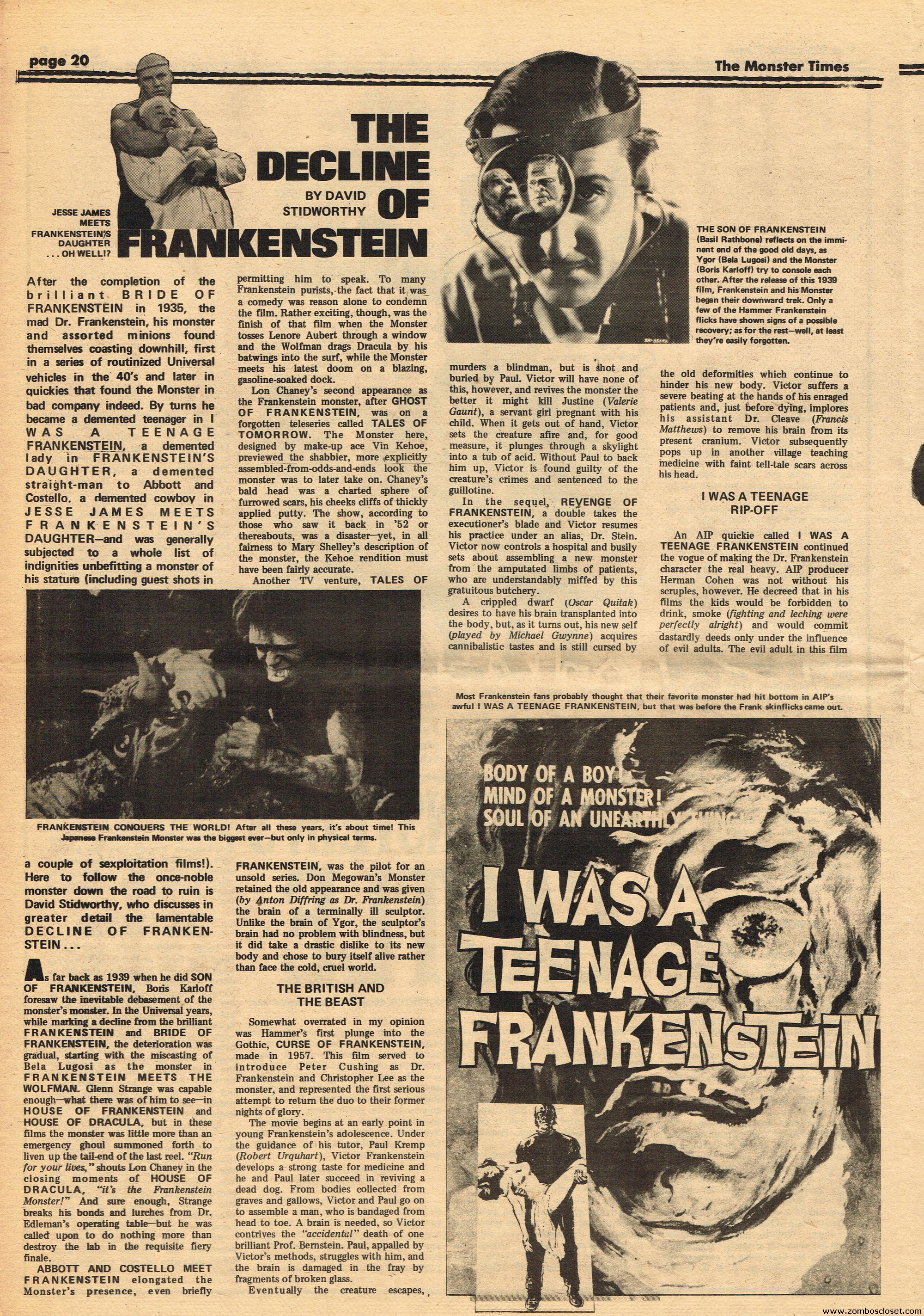 An all-Frankenstein (really they meant The Monster, for you purists) issue of The Monster Times, for number 21, makes for stellar reading. A Glenn Strange interview, Frankenstein in the Comics, Frankenstein’s Castle, The Decline of Frankenstein (bite your electrode!), Frankenstein’s Bloody Terror, and the usual TMT stuff to keep you busy. Whew!