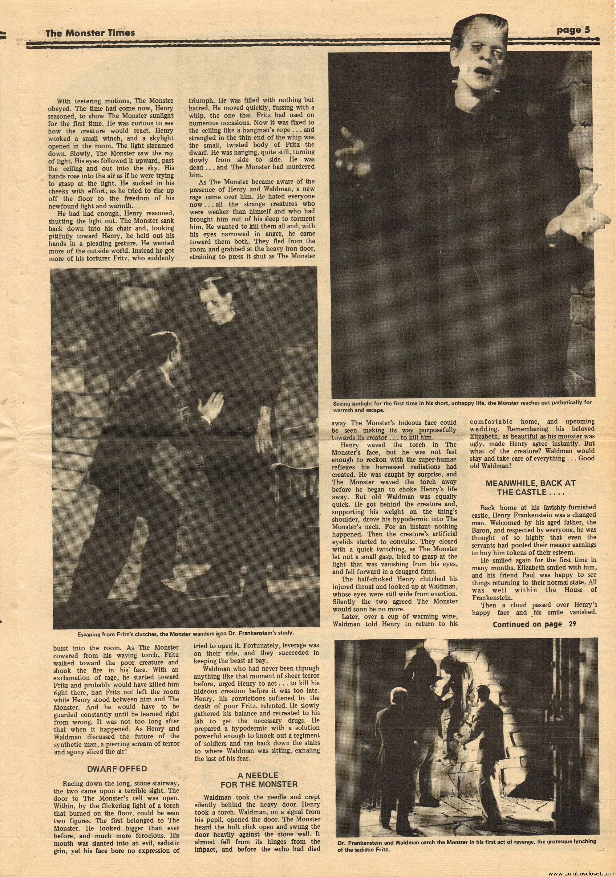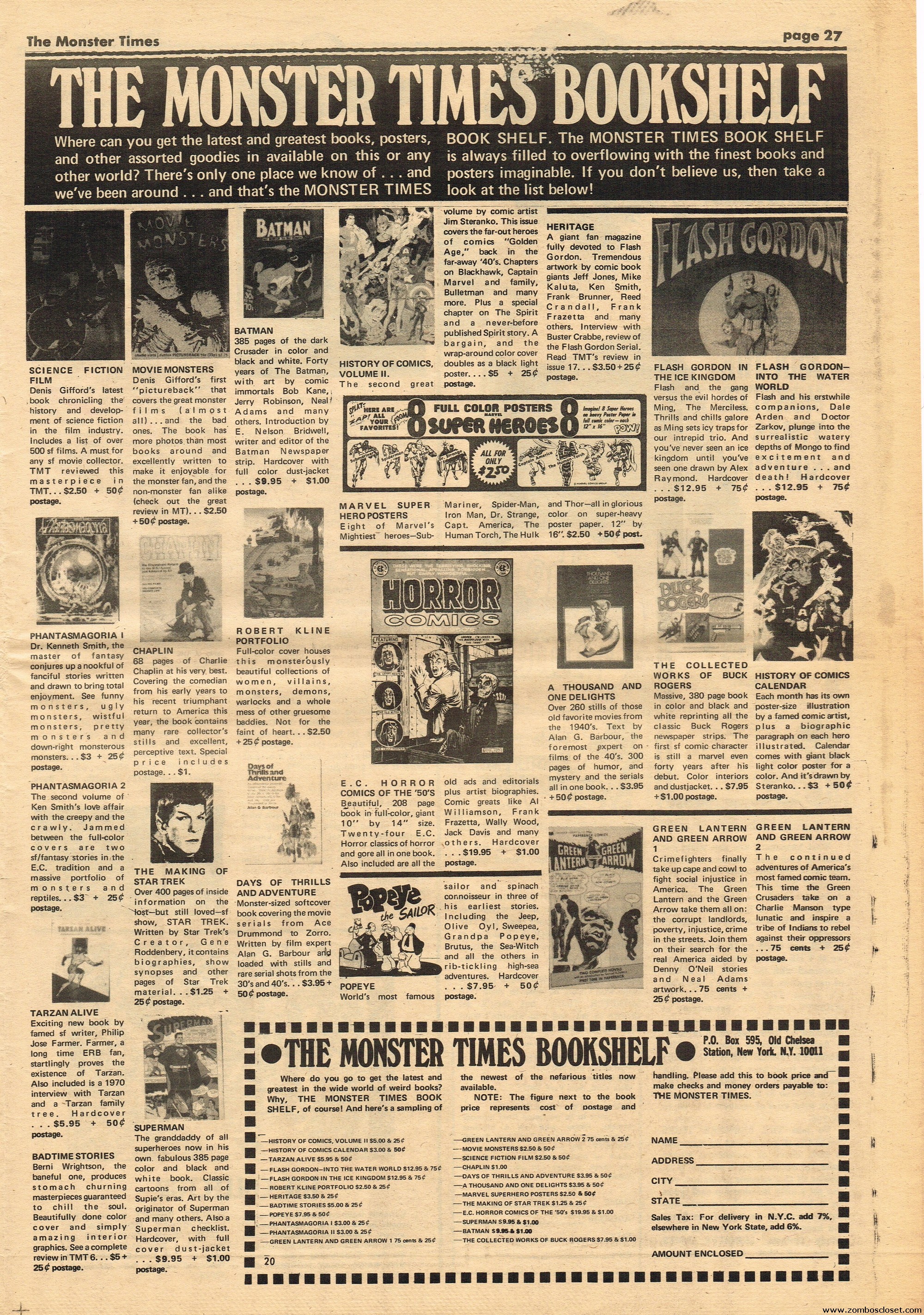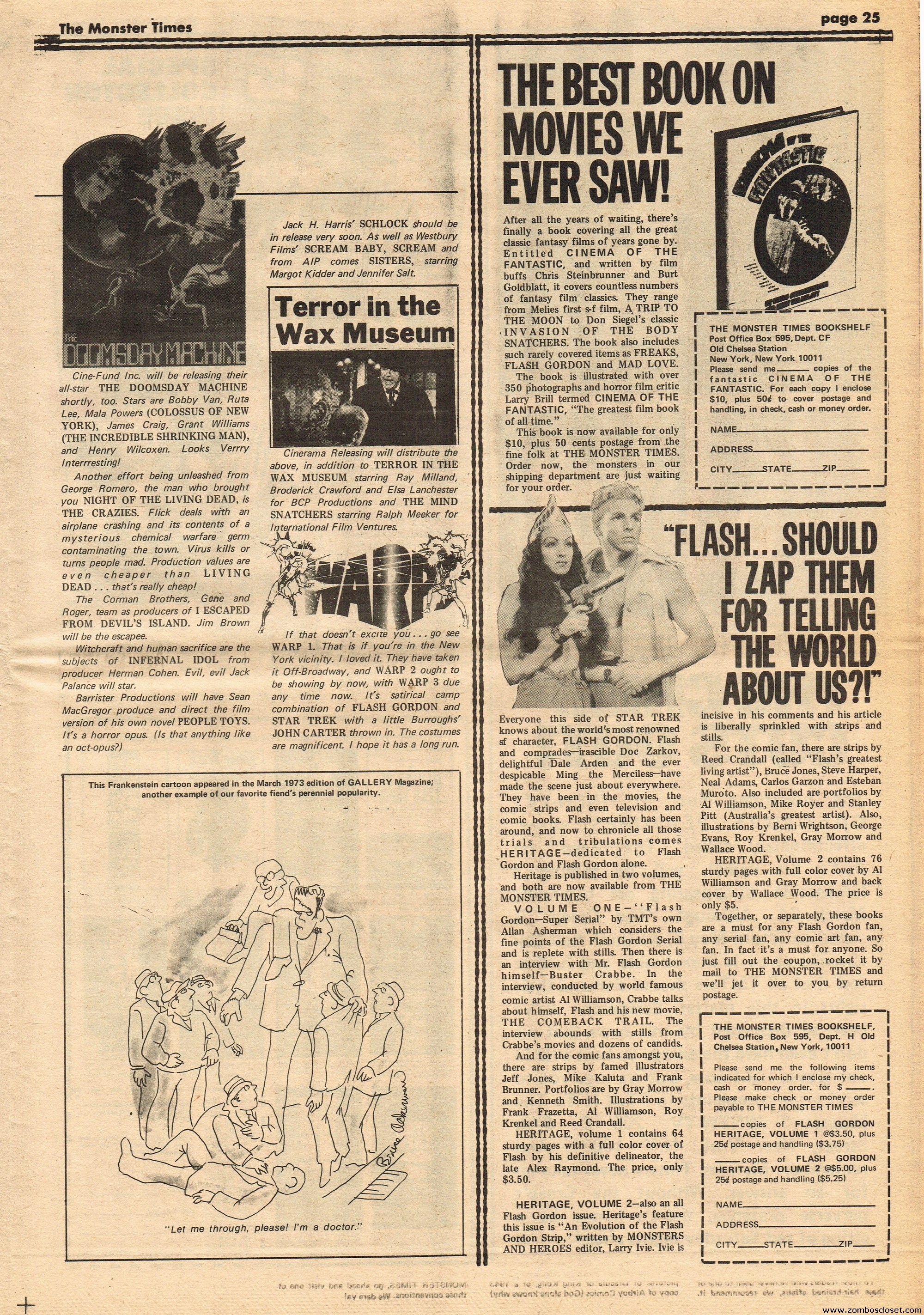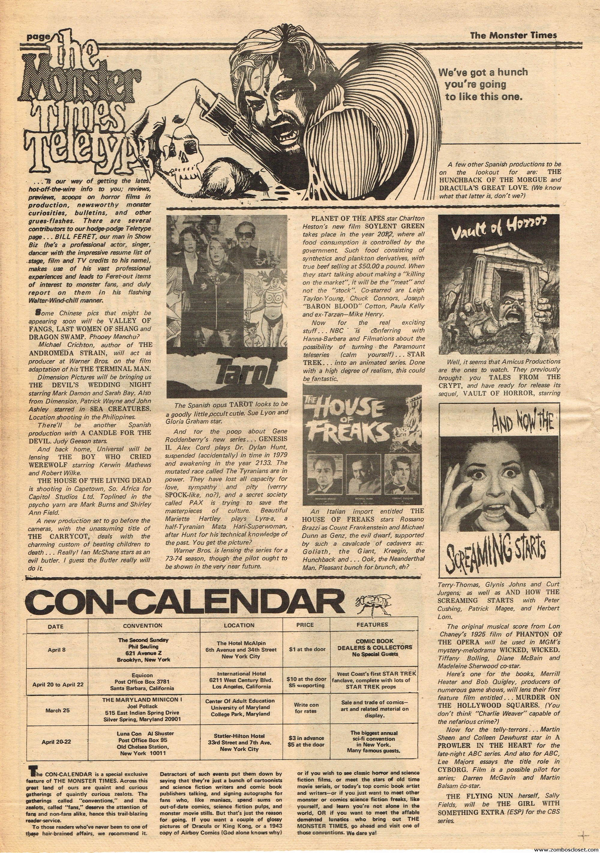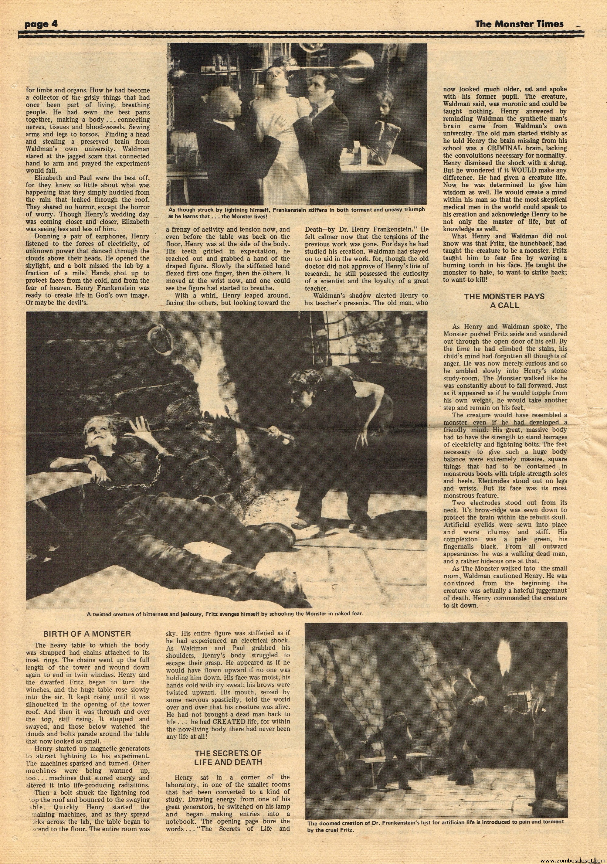 An all-Frankenstein (really they meant The Monster, for you purists) issue of The Monster Times, for number 21, makes for stellar reading. A Glenn Strange interview, Frankenstein in the Comics, Frankenstein’s Castle, The Decline of Frankenstein (bite your electrode!), Frankenstein’s Bloody Terror, and the usual TMT stuff to keep you busy. Whew!