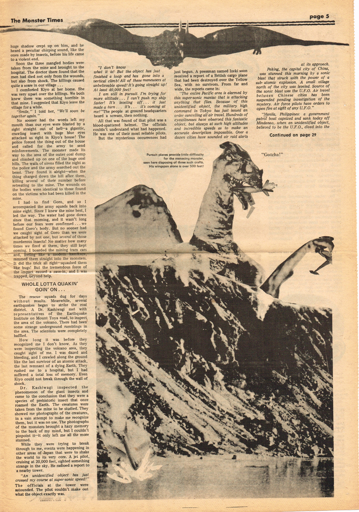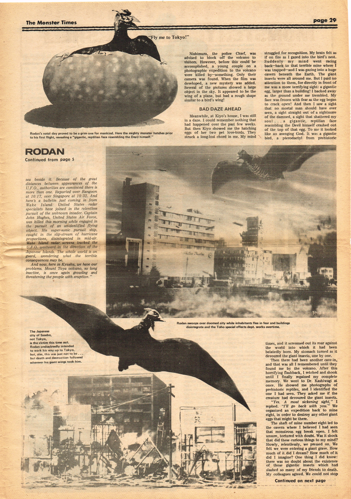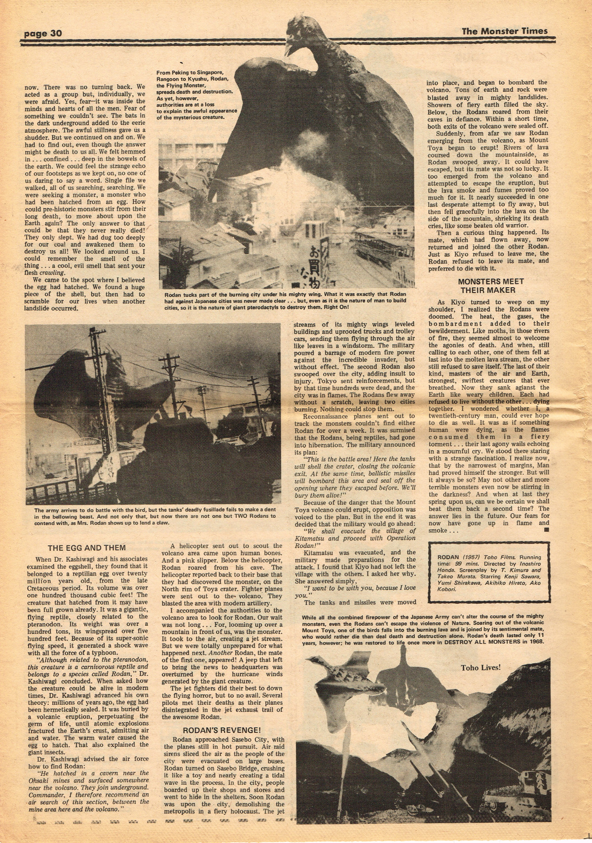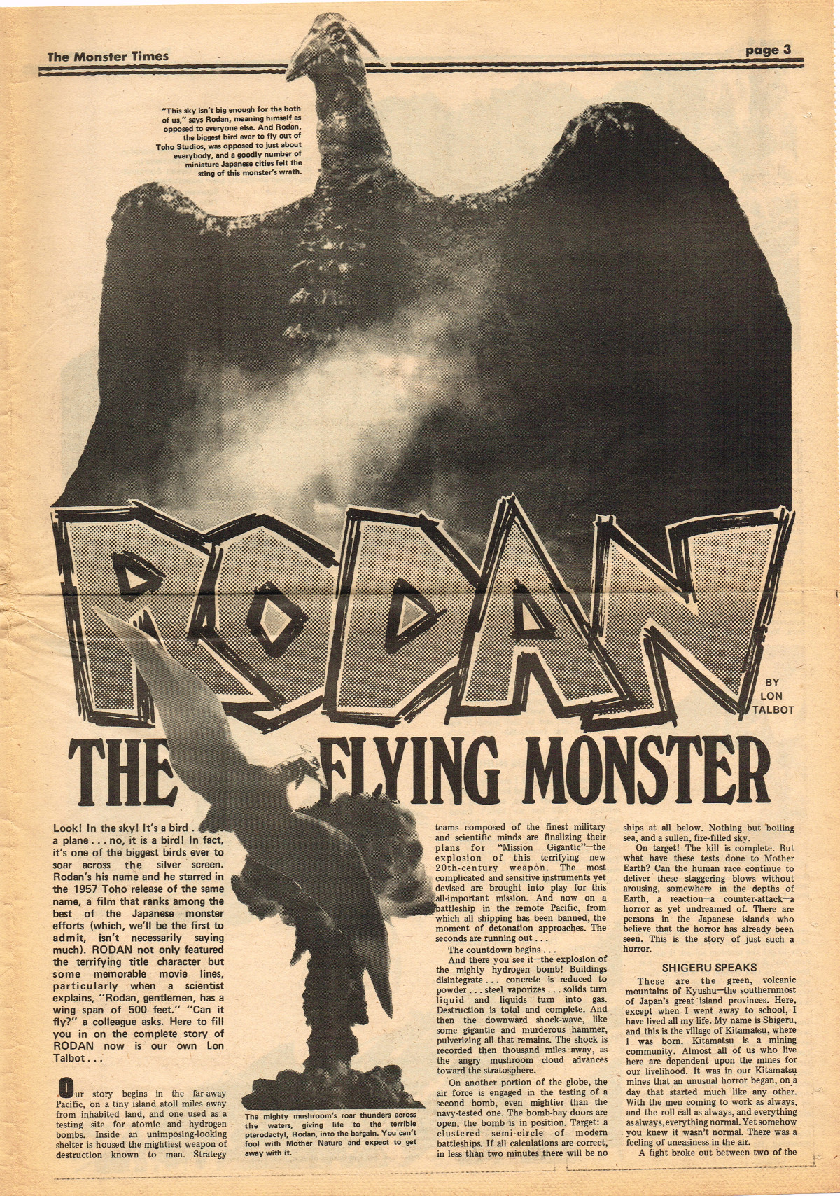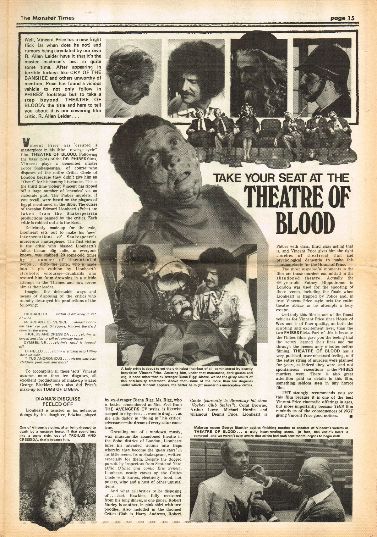 Jumping ahead this time to issue 24 of The Monster Times. Of course publishing is no longer bi-weekly but monthly, and the cover price is now 60 cents. Steranko's History of the Comics Volume Two is reviewed, Rodan spreads his wings, and monster towels clean up for $1.50 each. Caesar takes a stand with the Battle for the Planet of the Apes and the plot sickens in Blood Feast with a "bad movie roasting." Of particular note (aside from the cool monster towels, that is) are coverage of Basil Wolverton's weird-tastic art, the nifty Create Your Own Monster Kits ad on page 31, and Lon Chaney Jr's life and times howls. (Read issue 24 of The Monster Times)