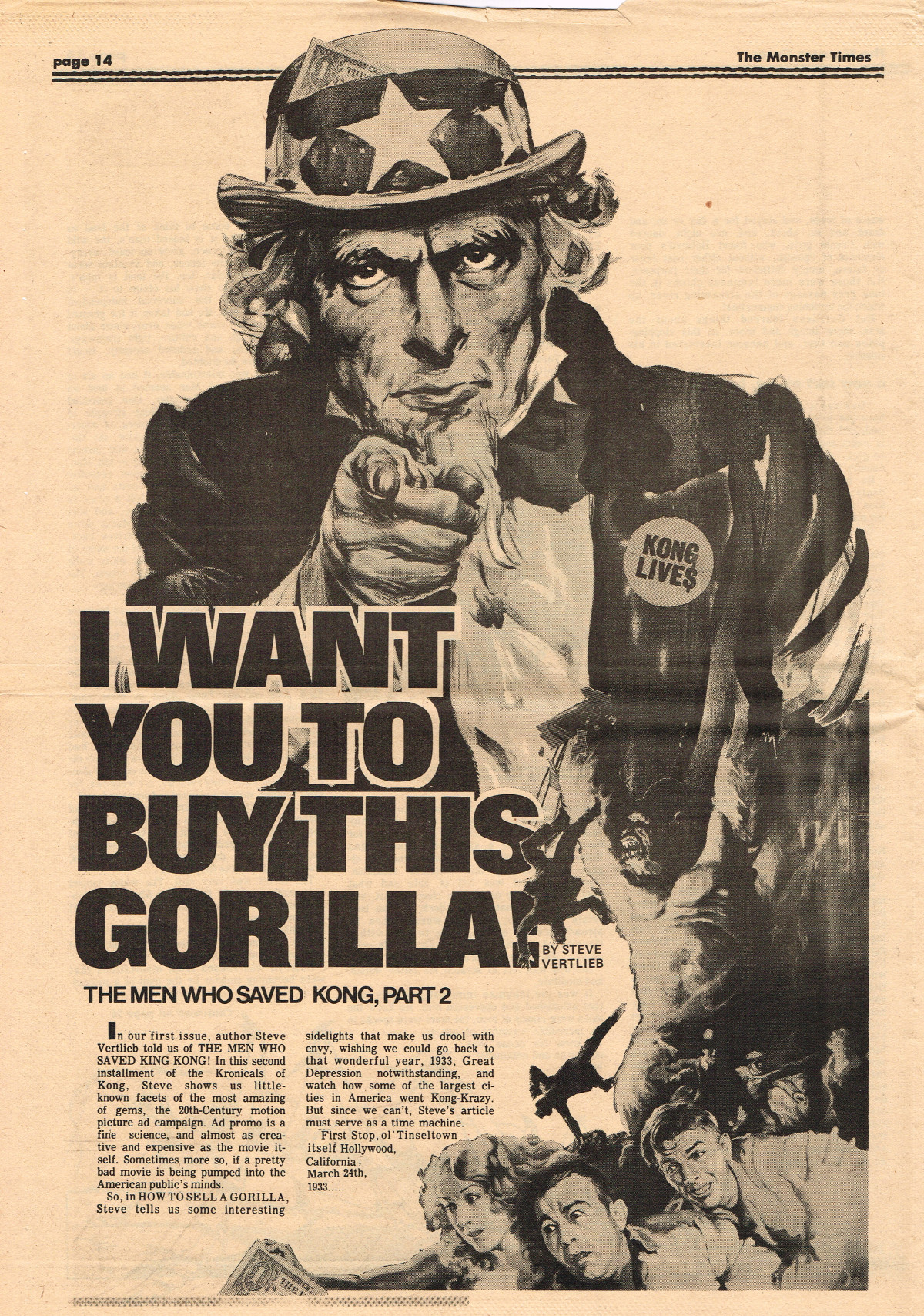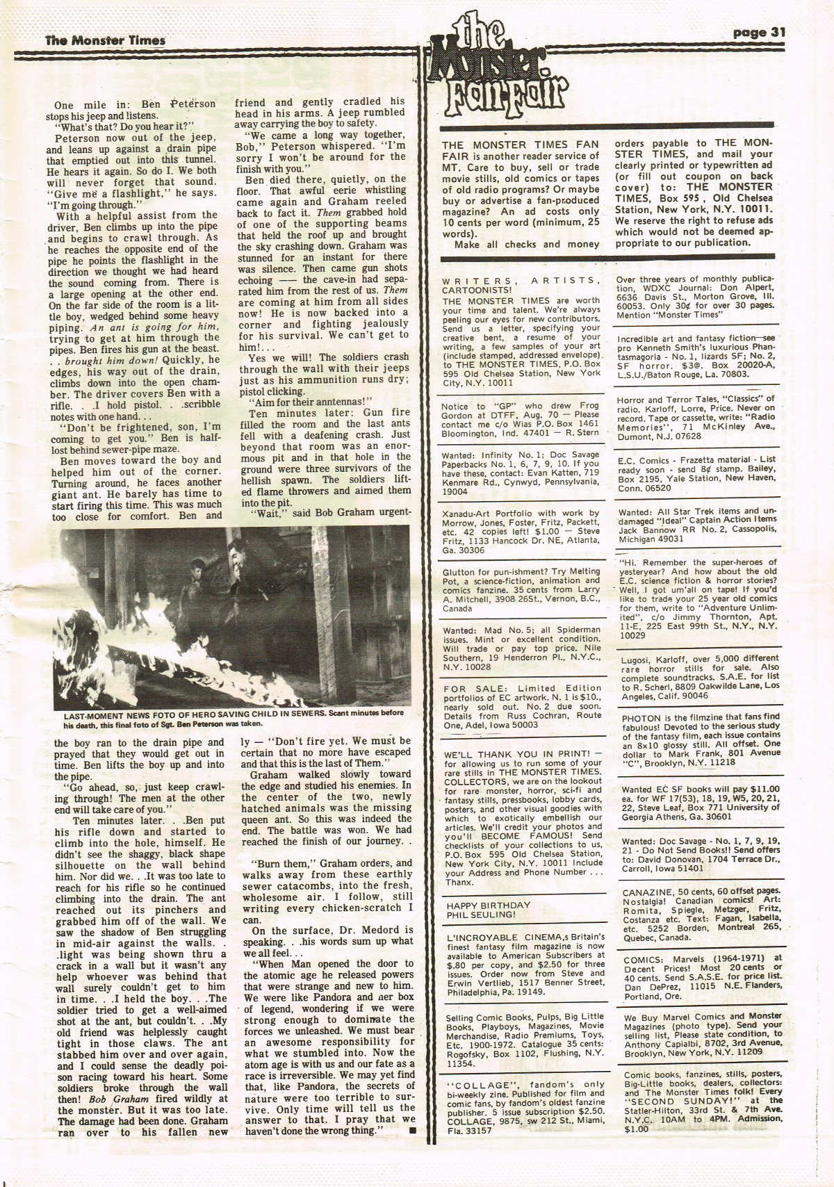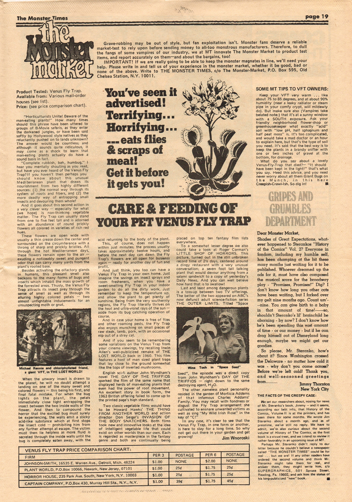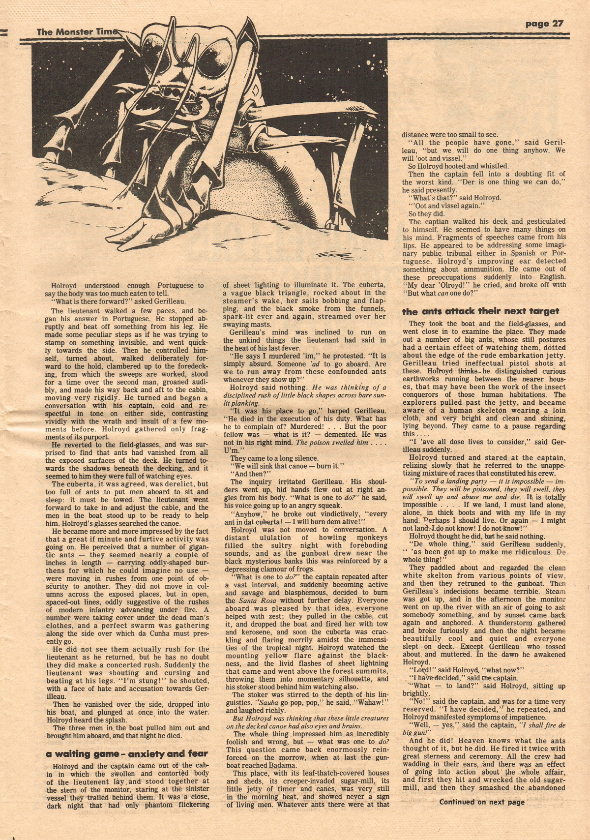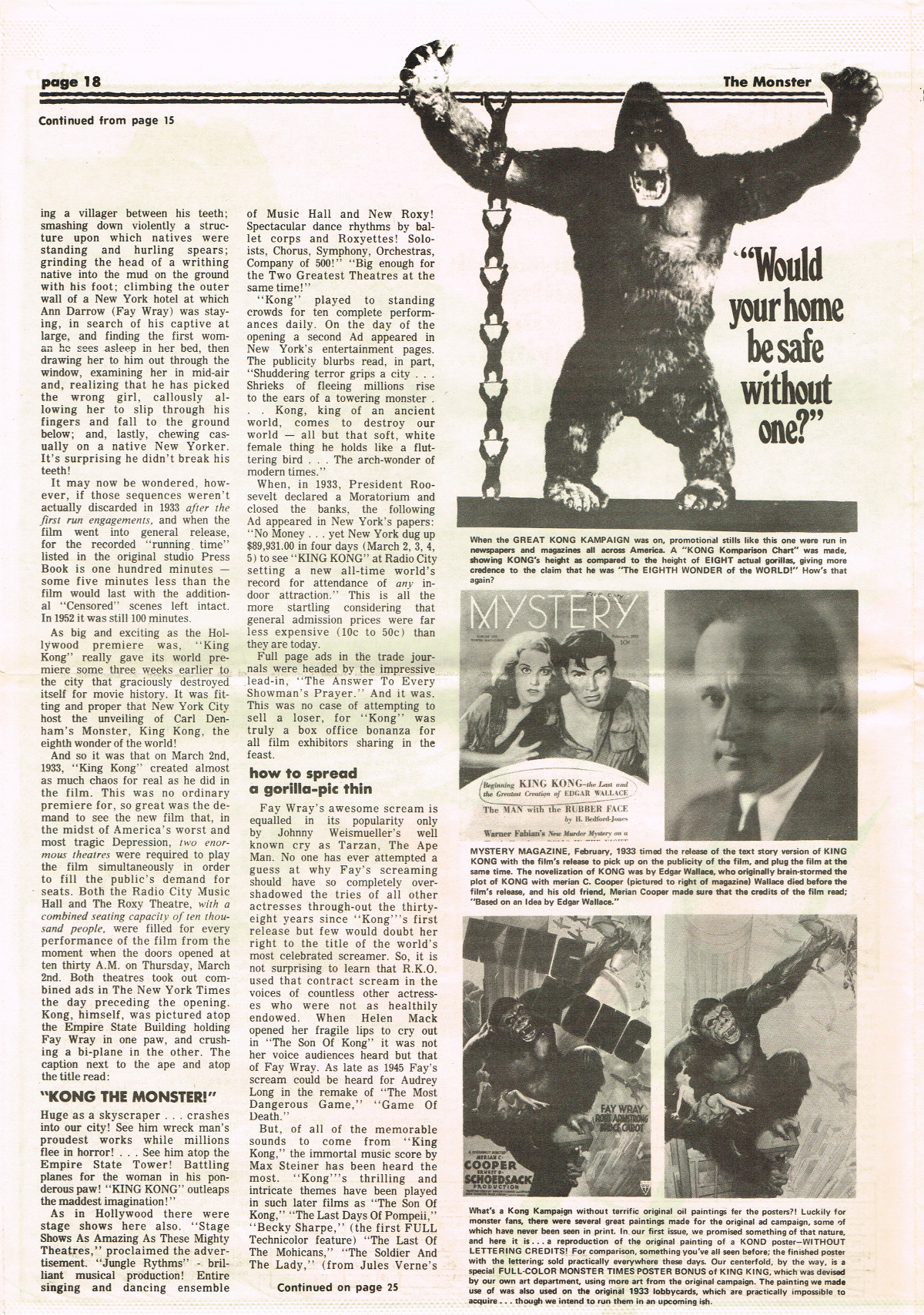 With issue 3 of The Monster Times (March 1972), bugs in movies and buggy superheroes in comic books get the magnifying glass treatment. So does King Kong with part 2 of The Men Who Saved Kong. Them gets a lengthy article. It's not a review but more like a storyline of the movie, including the dialog and events, all very literary–and boring if you've seen the movie. H.G. Wells Empire of the Ants also gets this treatment; the book, not the movie. Dare see the movie only if you want your brain to turn to jelly as Joan Collins screams in terror from the awful special effects. On another note, of particular interest is Dean Latimer's lambasting of A Marvelous Evening with Stan Lee, which took place at Carnegie Hall, 4 dollars and fifty cents a ticket. "The audience left in stunned silence, after often yawning louder than the fabulously fraught festivities."