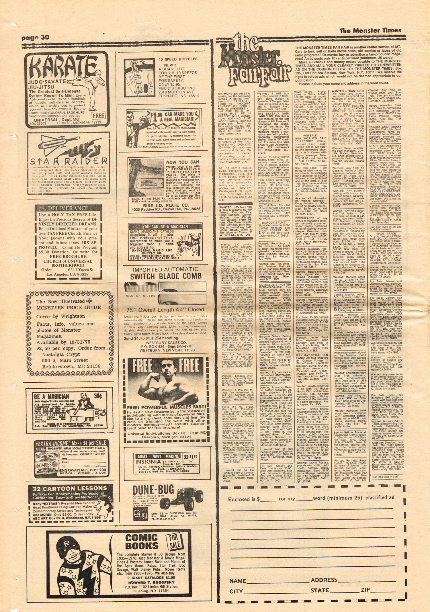Comic reader version: Download The Monster Times Issue 45 (and read more at the magazine morgue!)