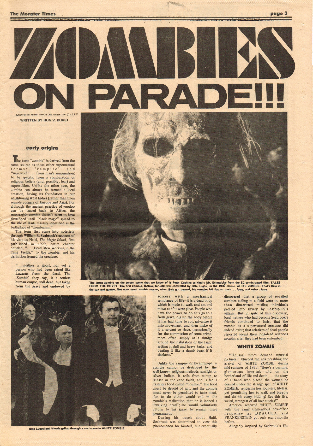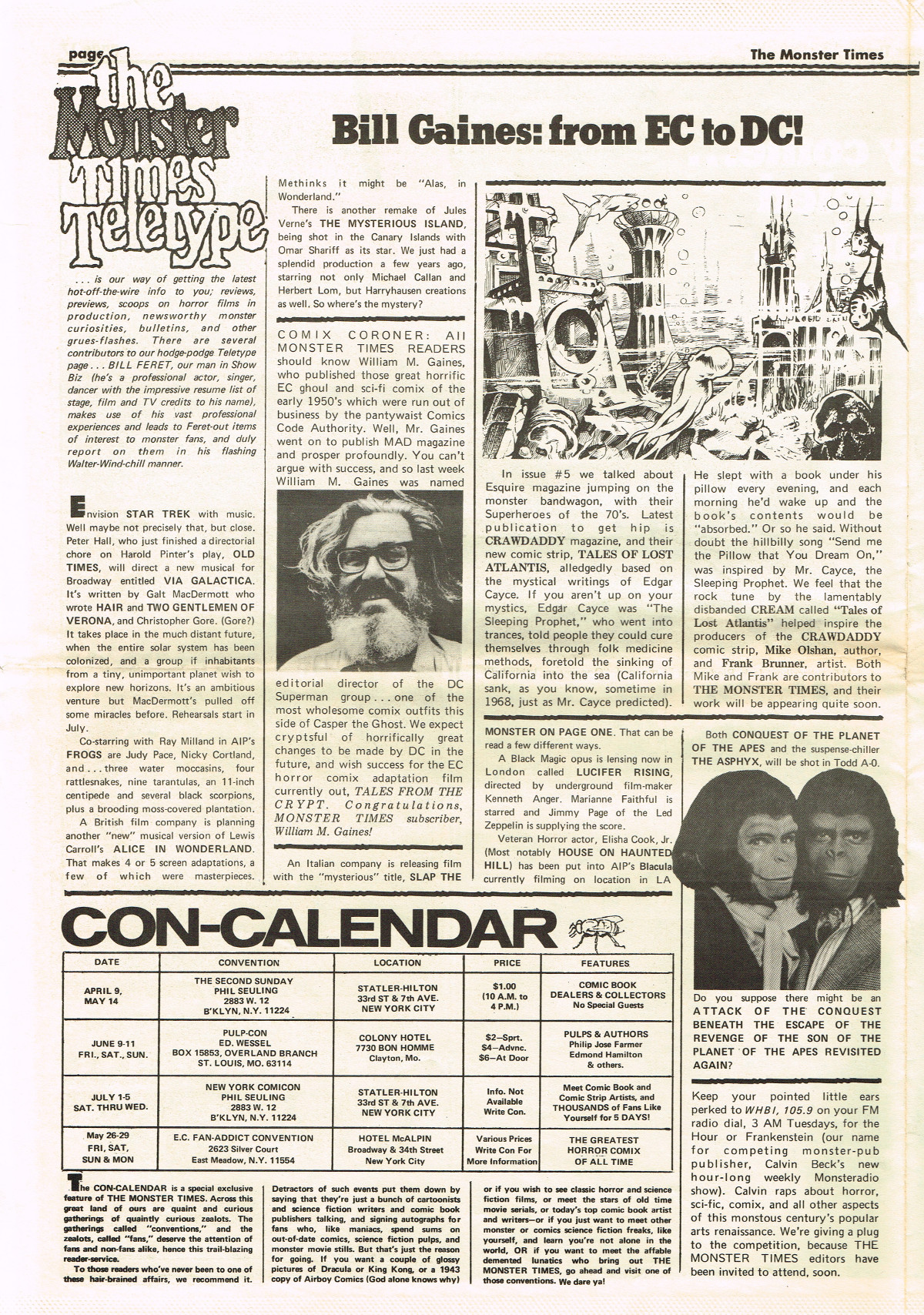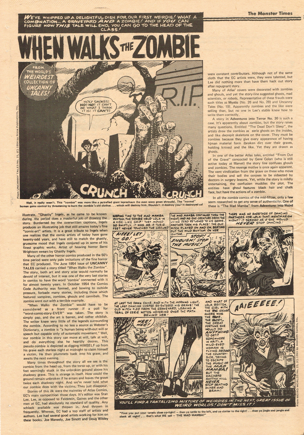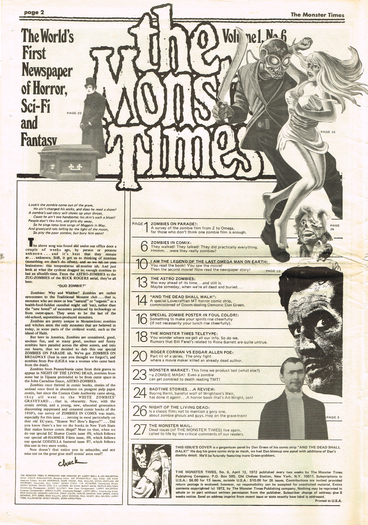 This all-zombie issue is to die for. Excellent coverage on White Zombie and 1950s horror comics. Of special interest is the commentary on Night of the Living Dead. "Night of the Living Dead is a classic film…but nobody seems to realize it yet." And this issue is dated April, 1972. (Read issue 6.)