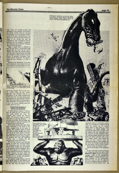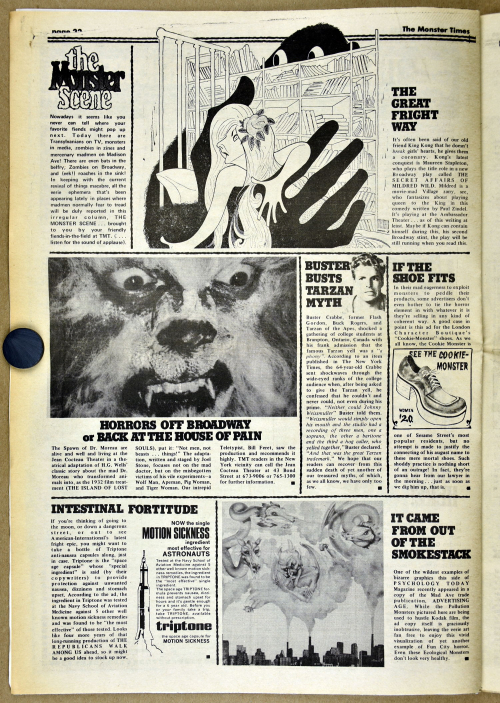 The Monster of Piedras Blancas gets some love in issue 18 of The Monster Times; at least from the article's author, David Stidworthy (yeah, like that's a real name): the rest of TMT awarded a Schlock Award Winner to it. Christopher Lee returns as Count Dracula in Dracula A.D. 1972 and talks about the Count that made him famous, Tony Isabella searches for Willis O'Brian's Missing Monster. For comic buffs, Art Miller discusses Nedor comic's infatuation with monsters When Monsters Ruled the Comics.