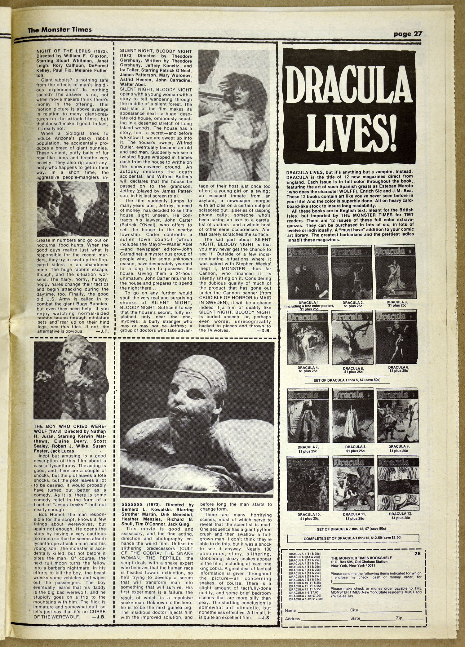 Comic book reader version: Download The Monster Times 28 (and there's more in the magazine morgue)