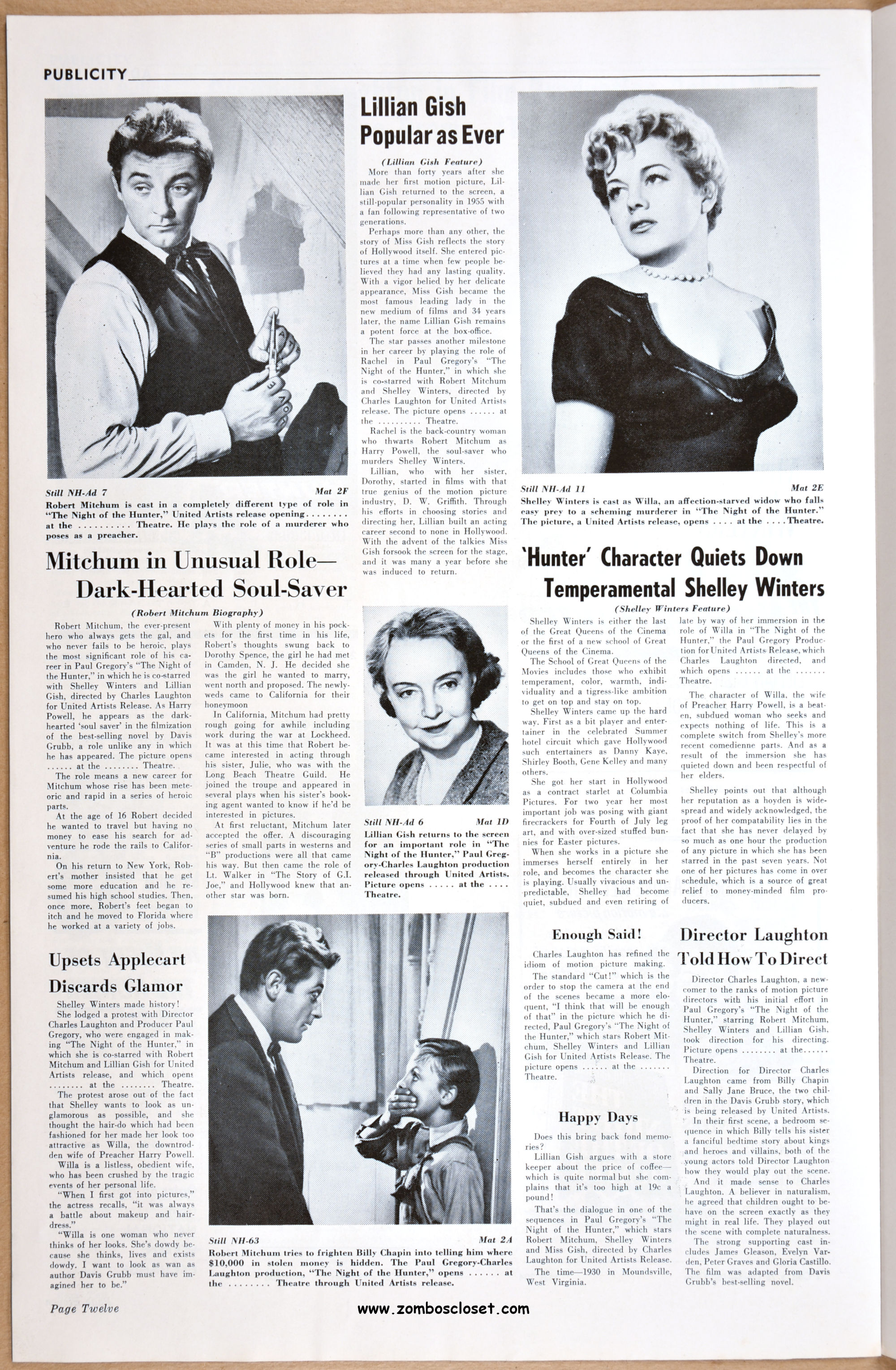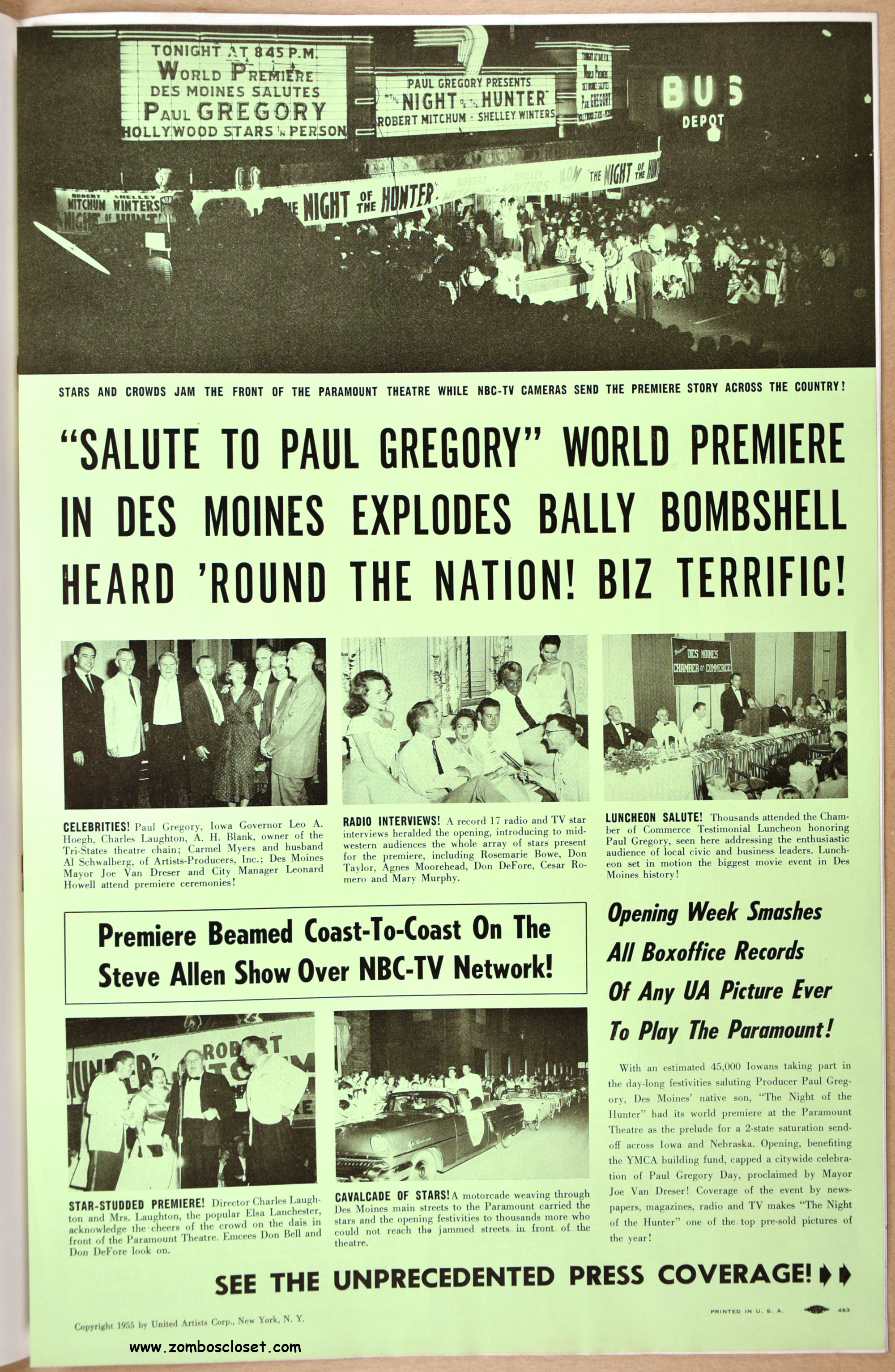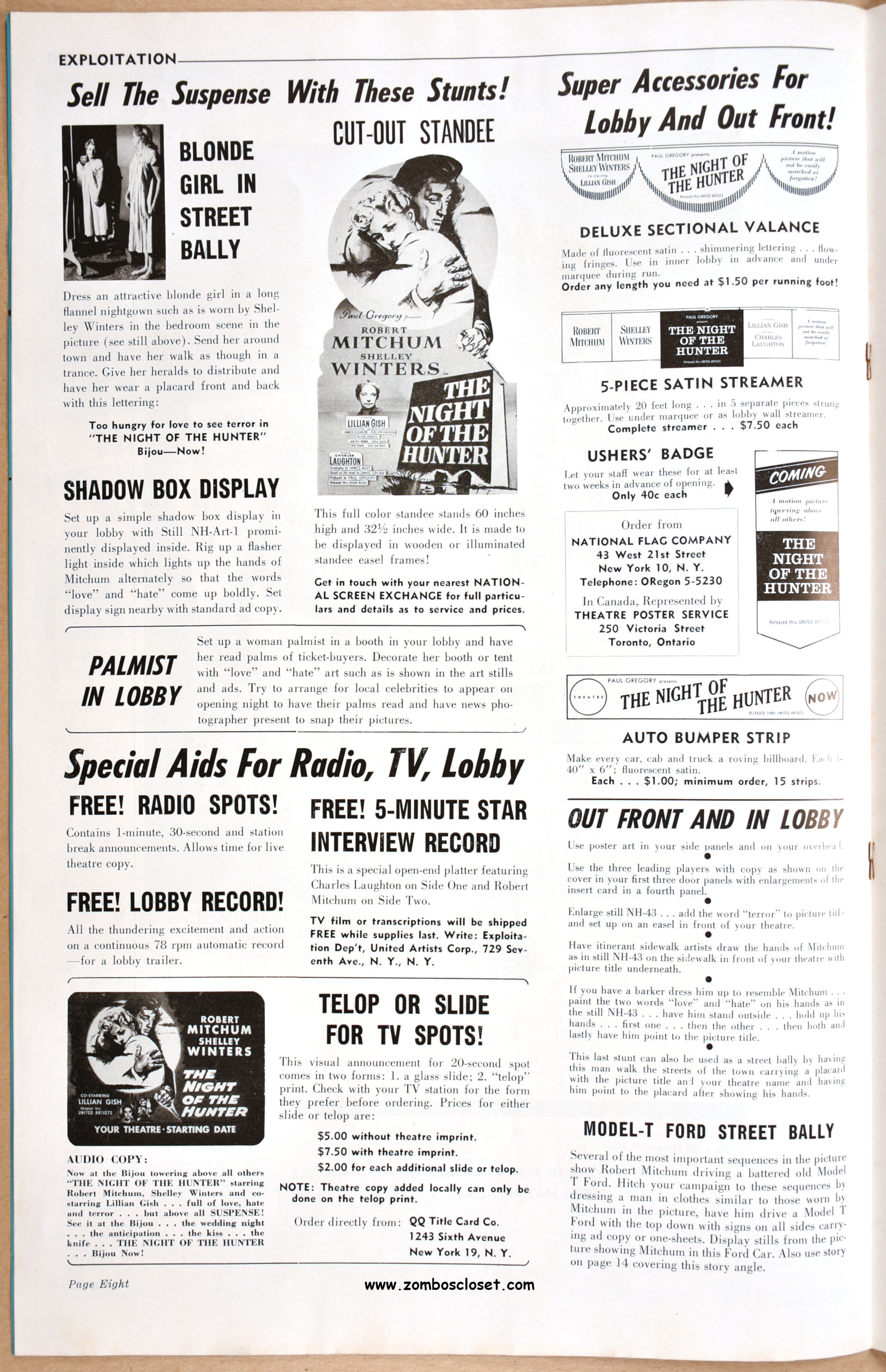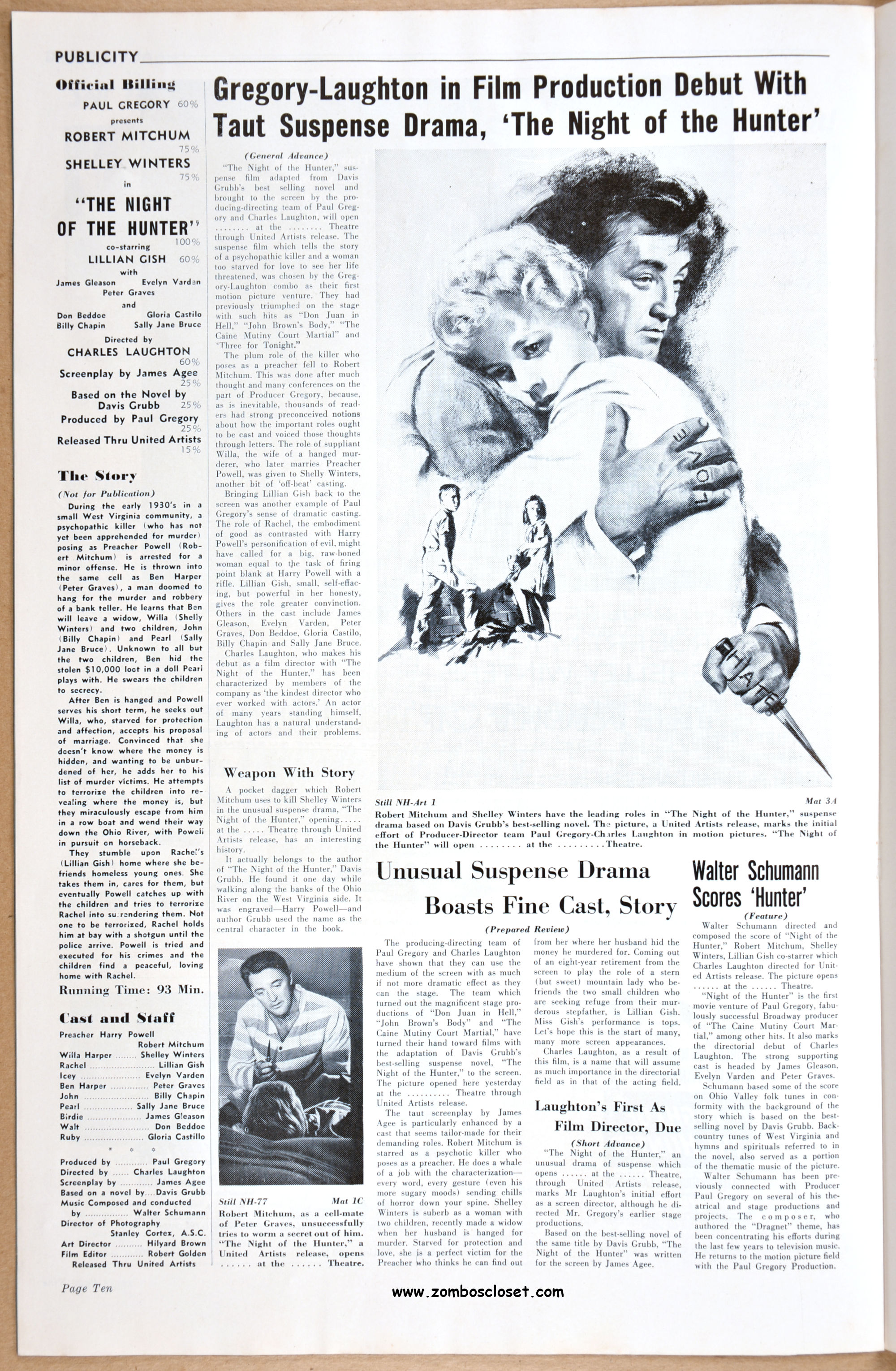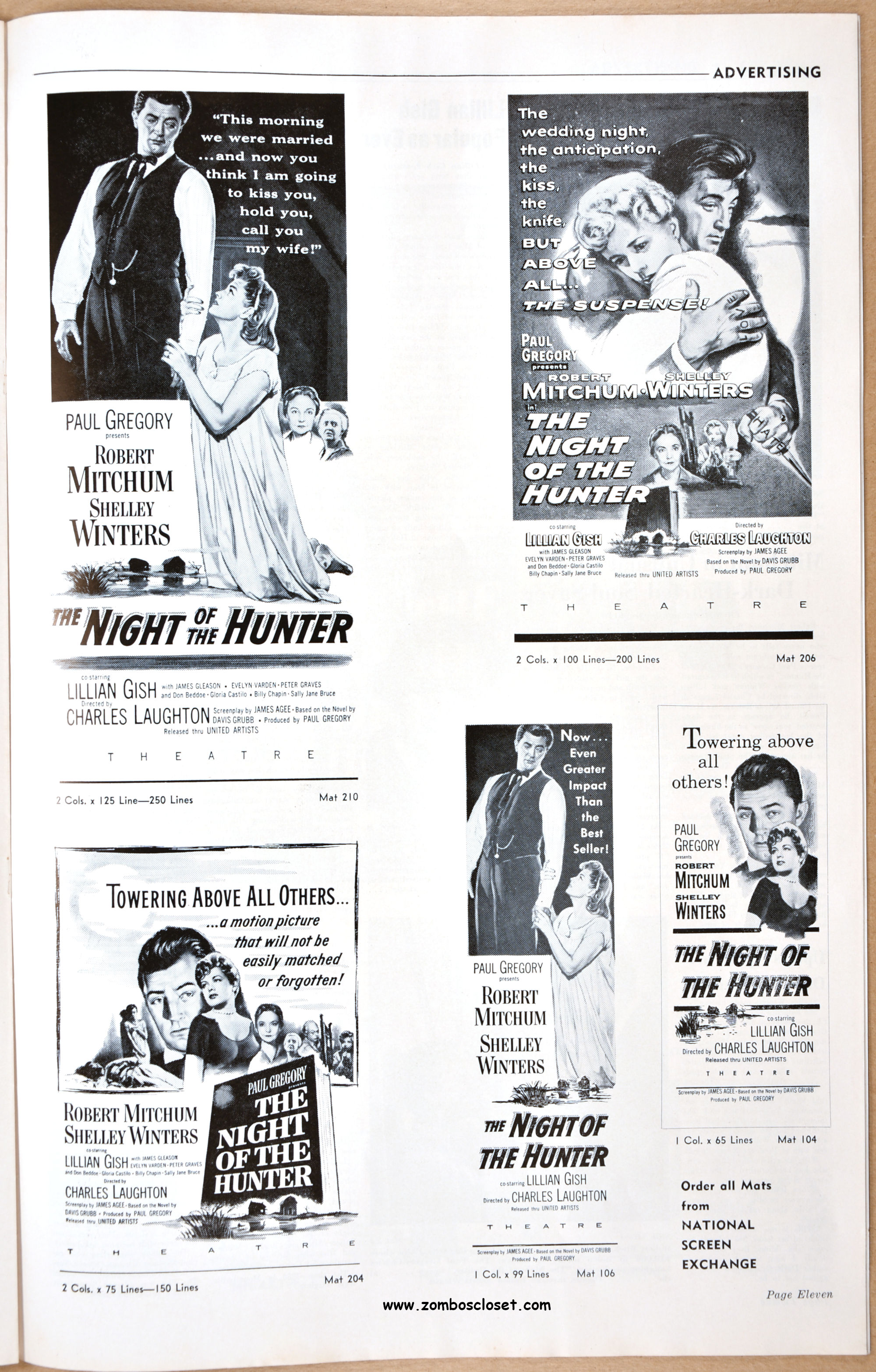 See more pressbooks and heralds From Zombos’ Closet. Comic book reader version: Download The Night of the Hunter Pressbook