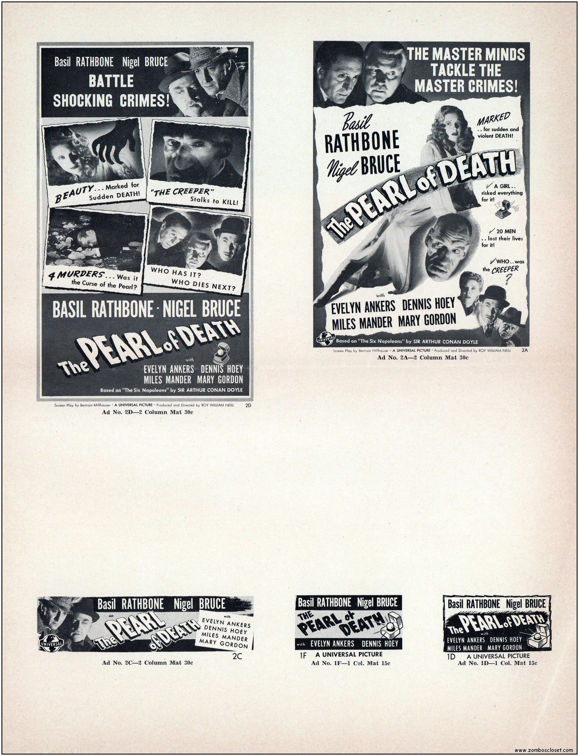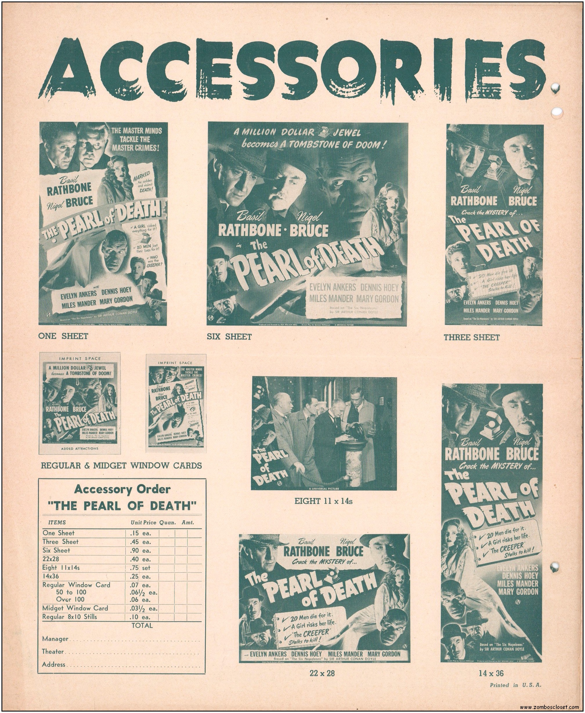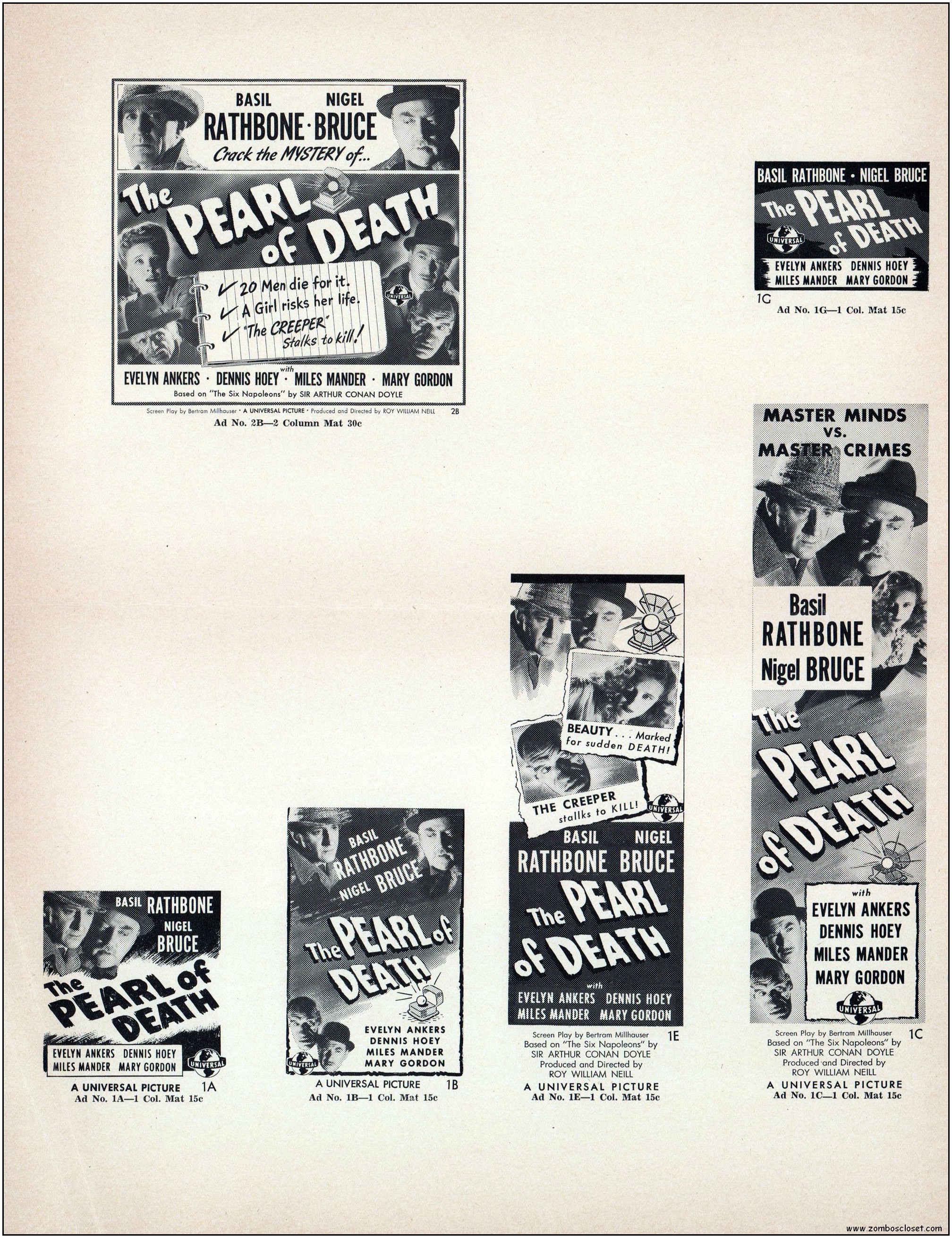 This, The Pearl of Death, pressbook comes courtesy of director Joe Dante (Trailers from Hell, Gremlins, The ‘Burbs, The Howling, and more). Interesting story: I received an email from Charlie Largent asking if I’d like a bunch of pressbooks from Mr. Dante. Me, I’m thinking I’m being punked or scammed, but it turned out to be true. We worked out the logistics and, well, here we are. I’m always happy to hear from anyone who likes what I post, but when it comes from people like Joe Dante and Charlie Largent, it makes it especially pleasant. And I could never turn down an offer of pressbooks. Never.