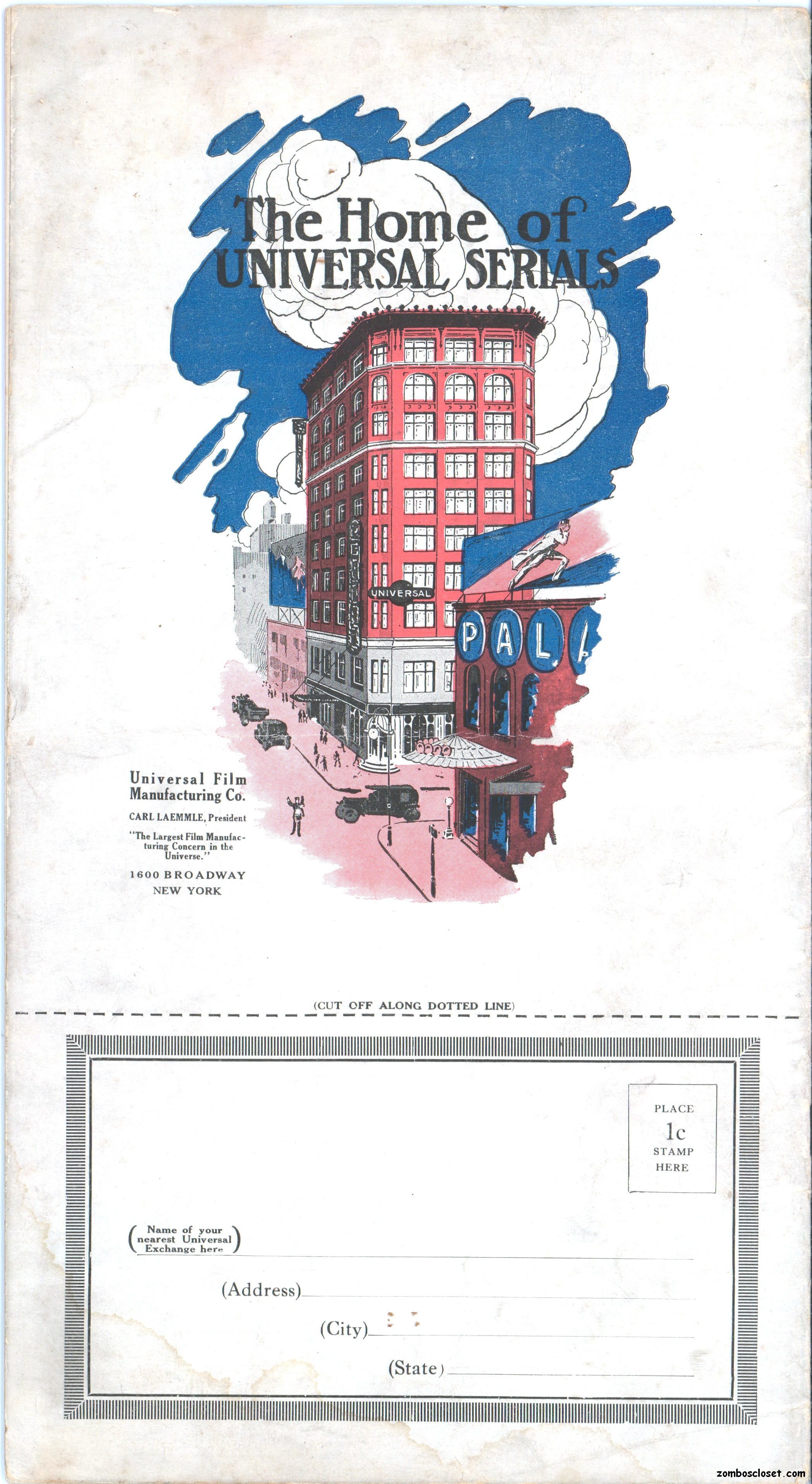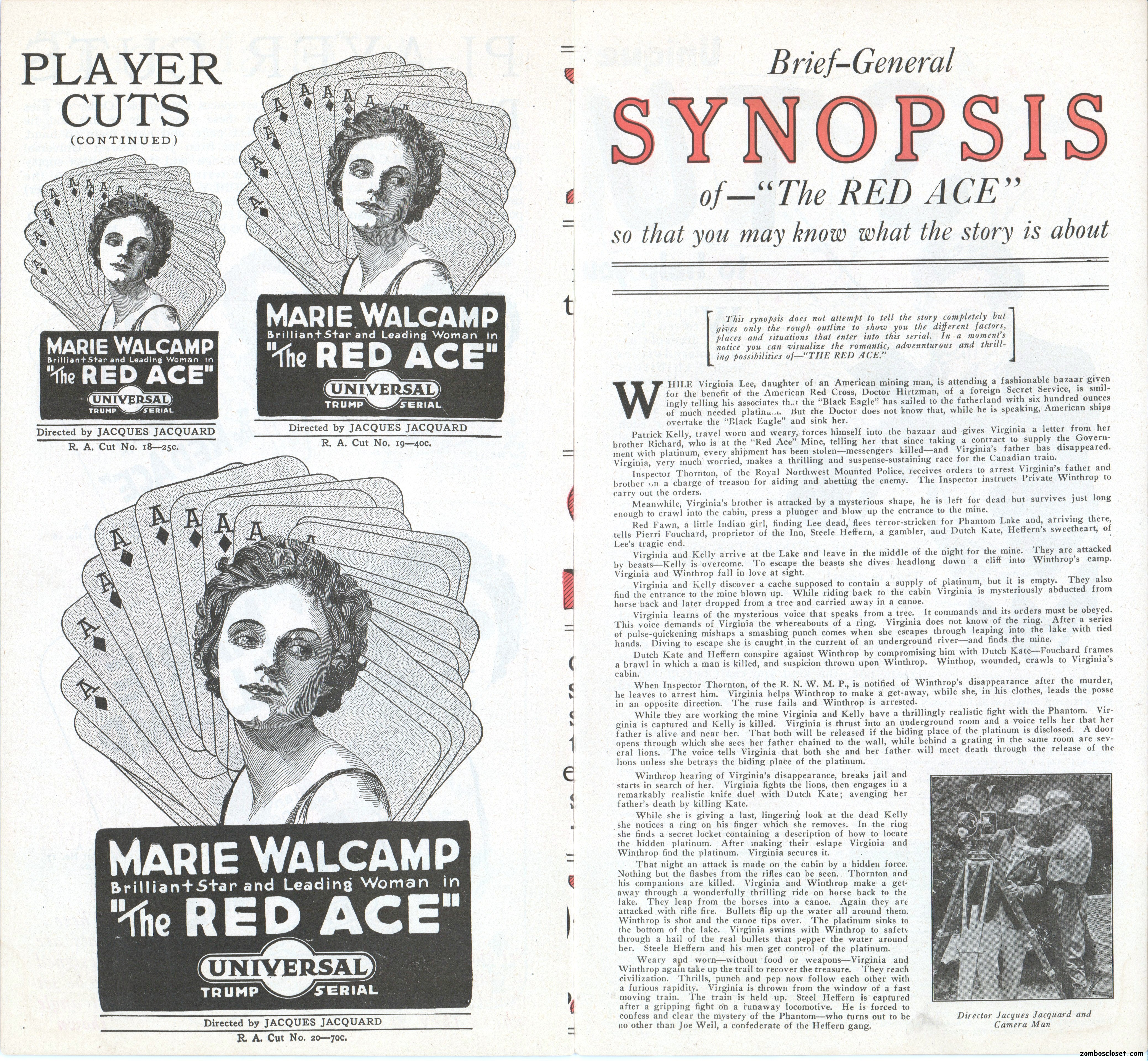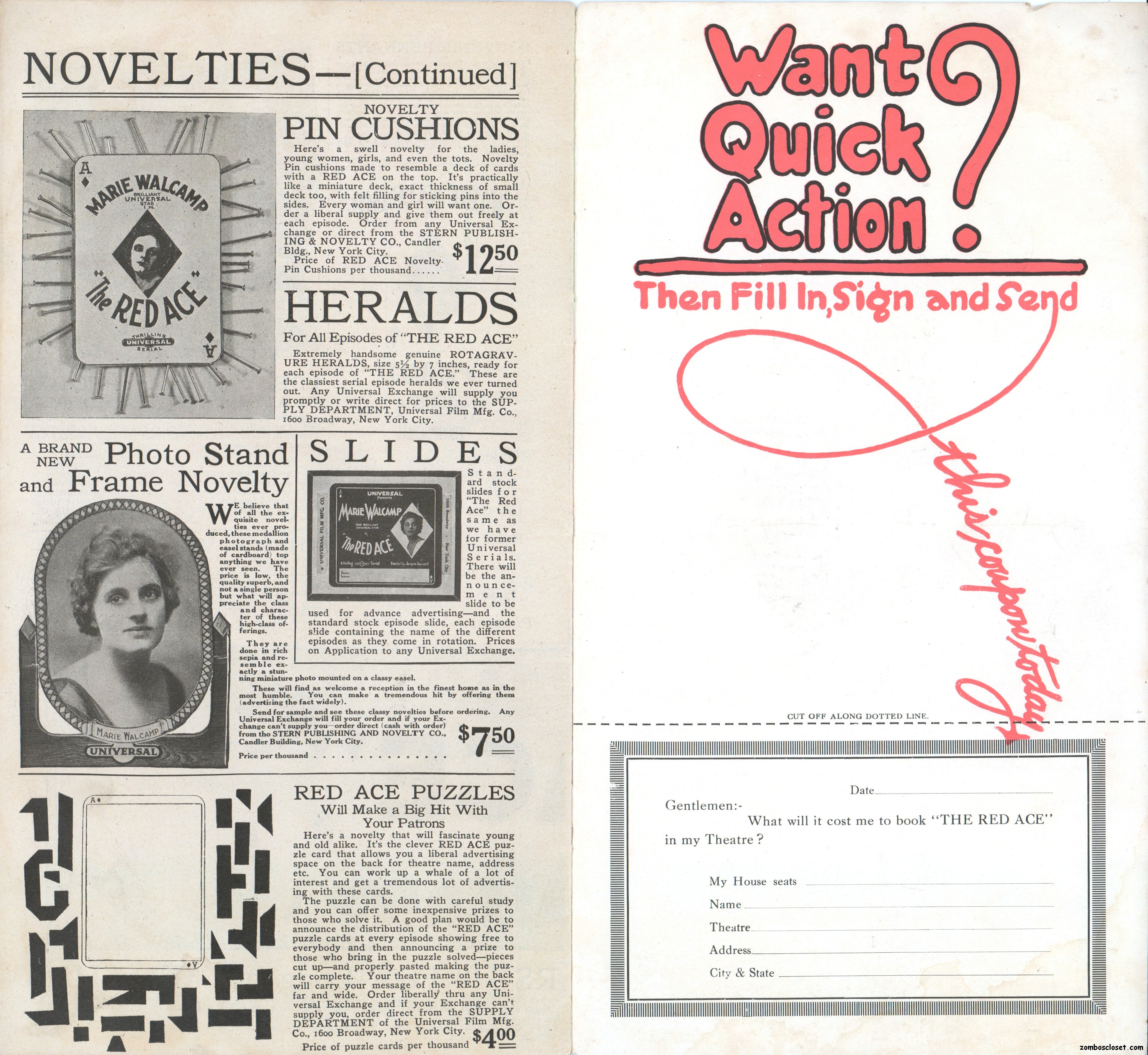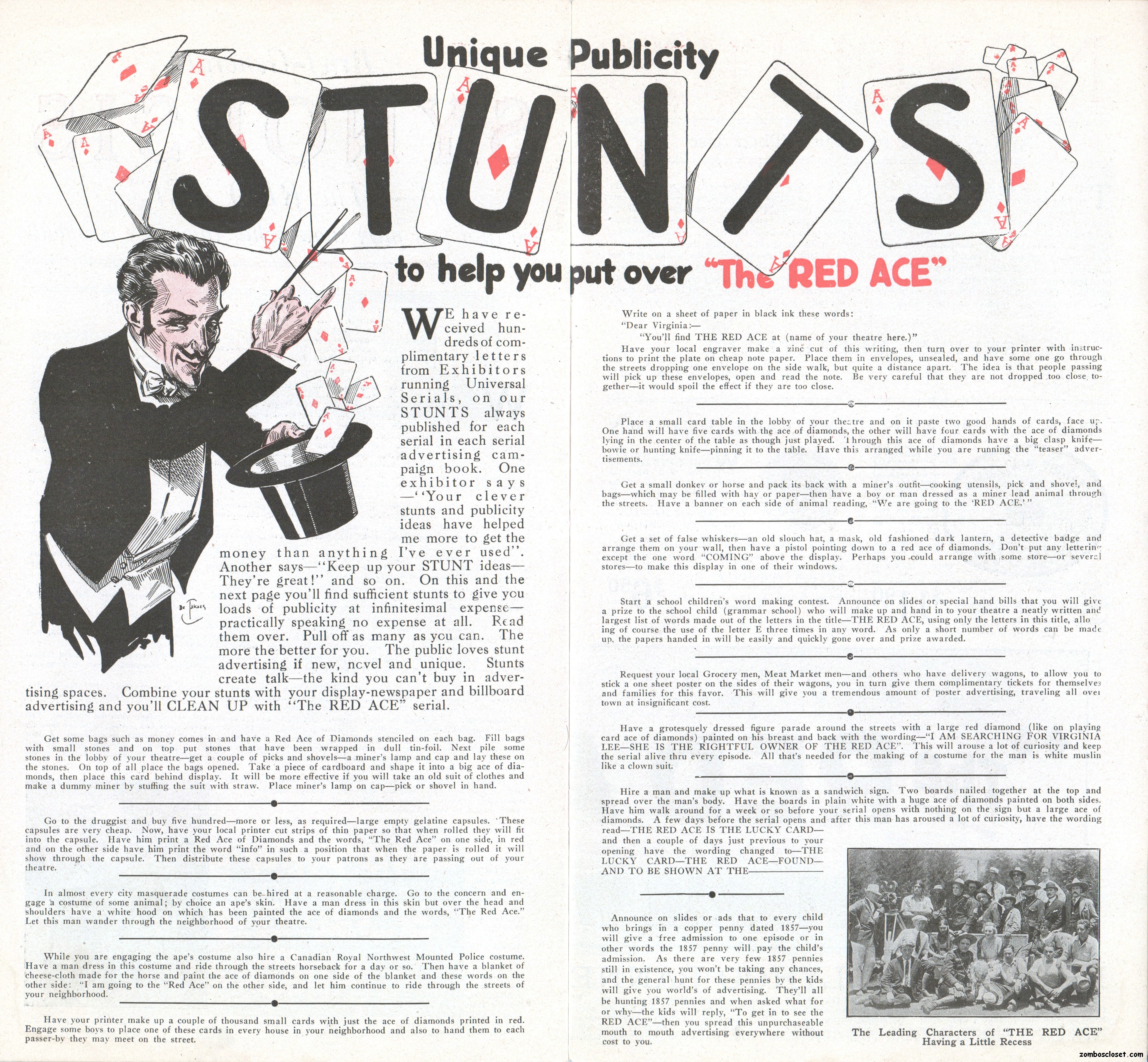 The Red Ace pressbook, which is the oldest one in my collection so far (from 1917), is one of the most beautifully conceived pressbooks I’ve seen, with wonderful use of color, graphics, and text fonts. Size-wise, it’s rather small at 12.5 x 7 inches, but it packs quite a visual wallop; and, certainly, that old world, flourishy, charm in its design is nostalgic.