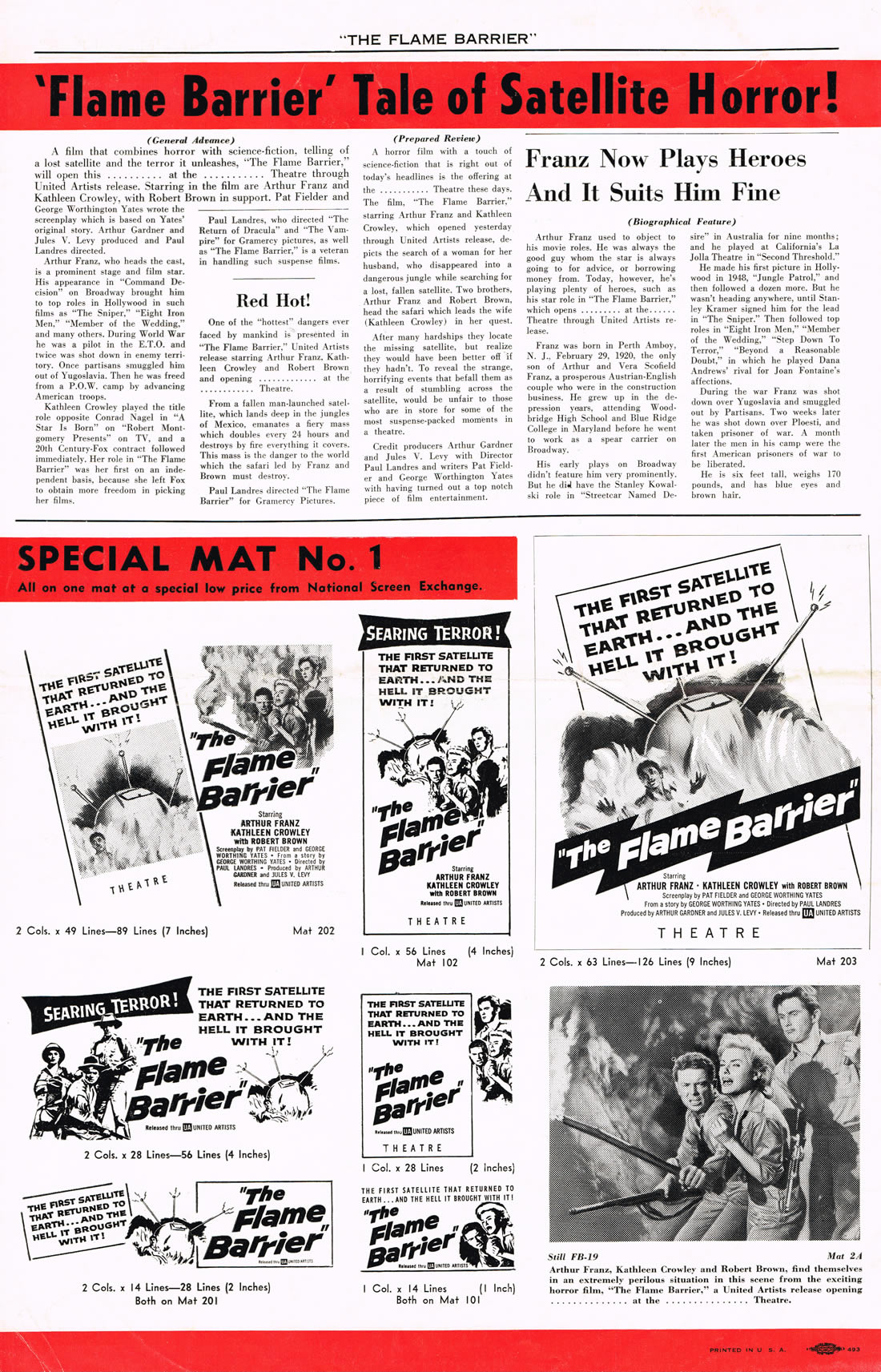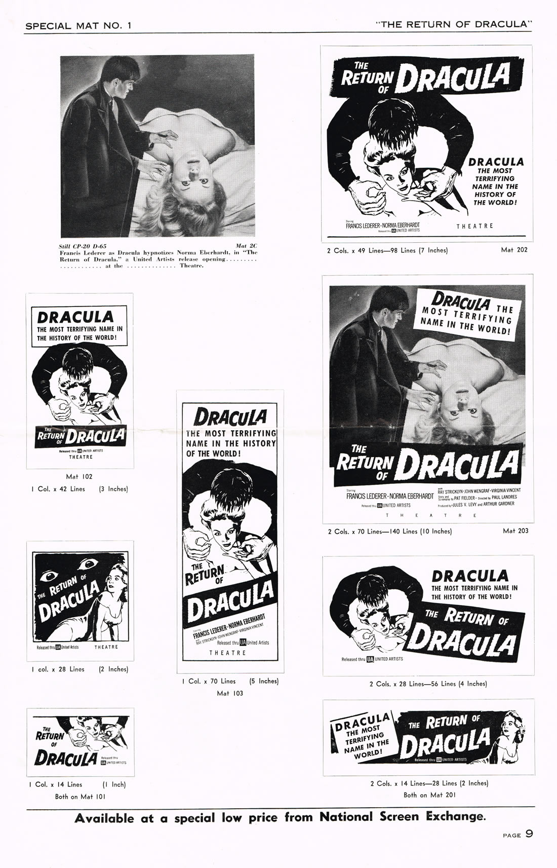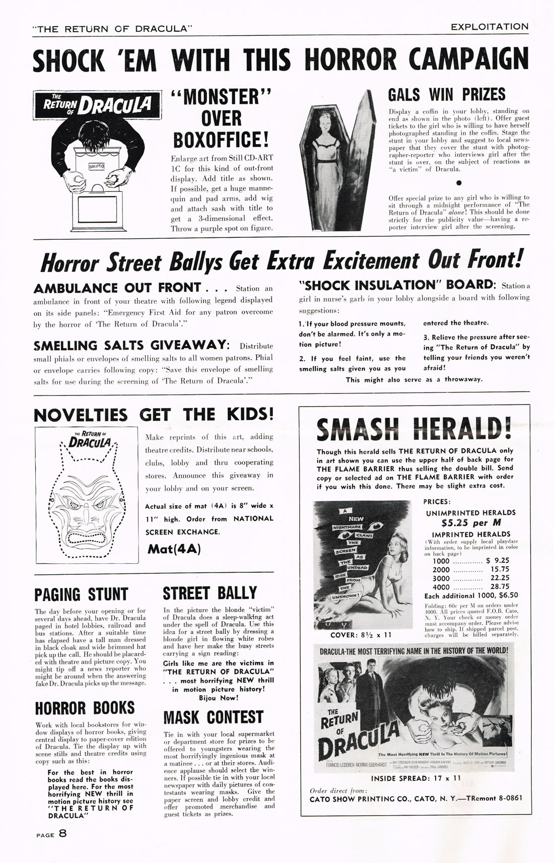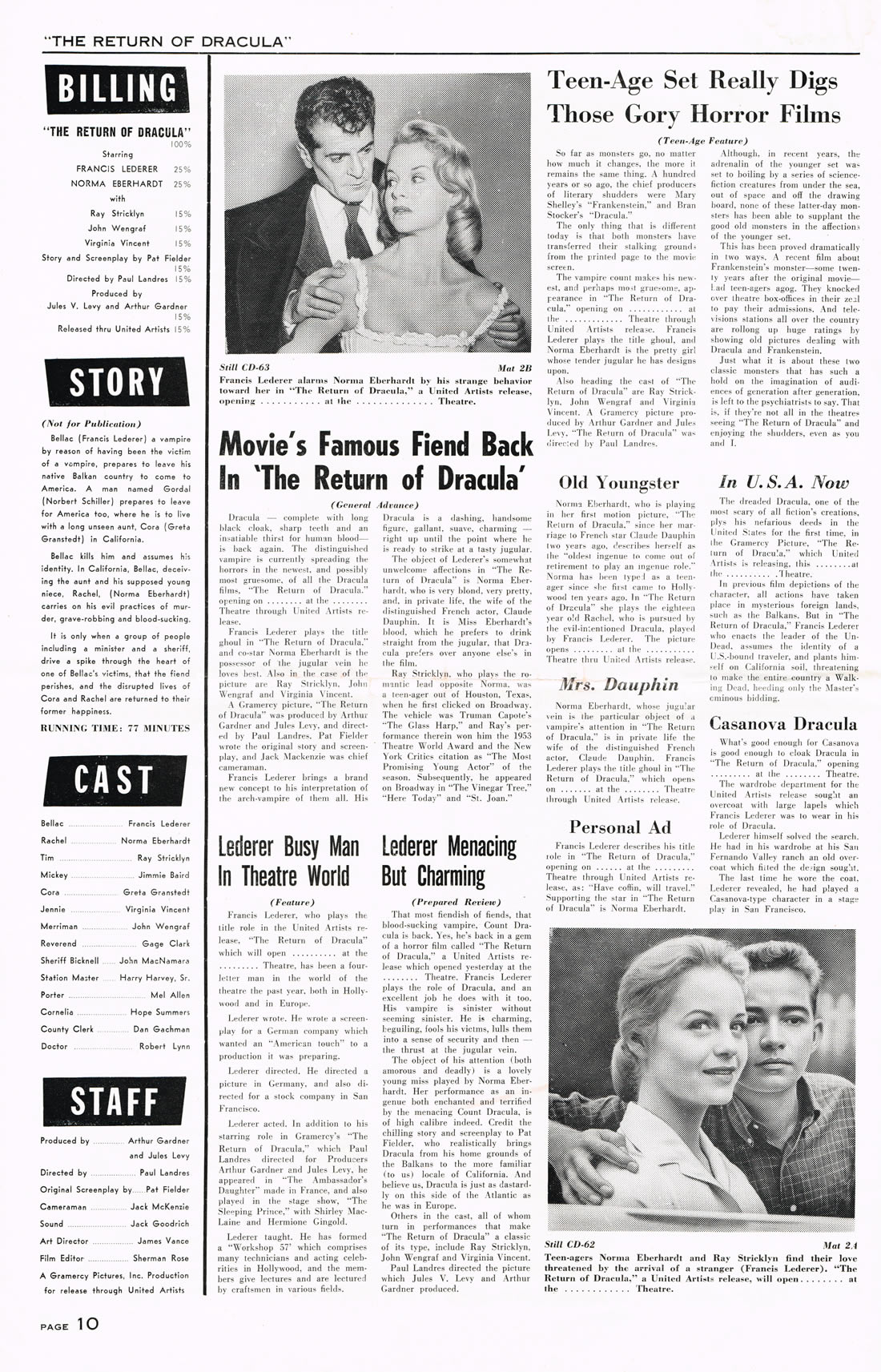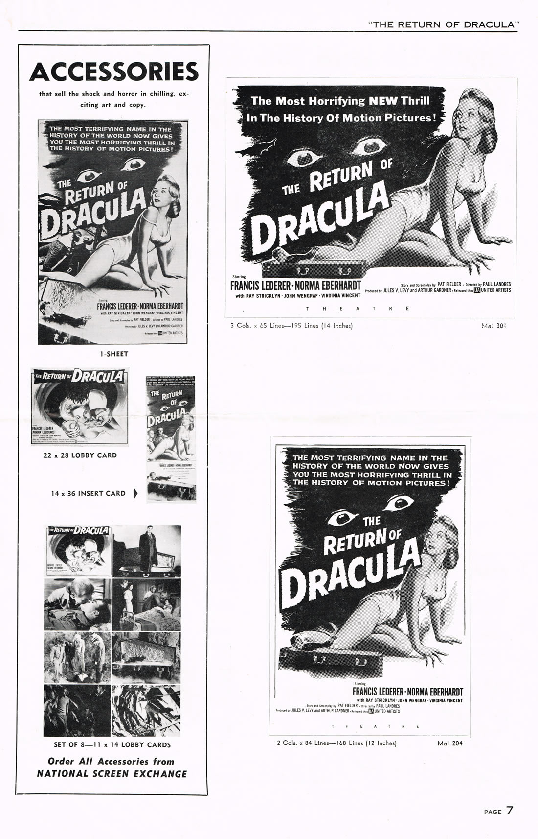 Here is an exuberant double bill pressbook for The Return of Dracula and The Flame Barrier. Notice how most of the box office promotion is geared toward Dracula and the vampire theme. The Return took a beating from Hammer's Horror of Dracula the same year (1958), but Francis Lederer and this United Artists release is not bad.