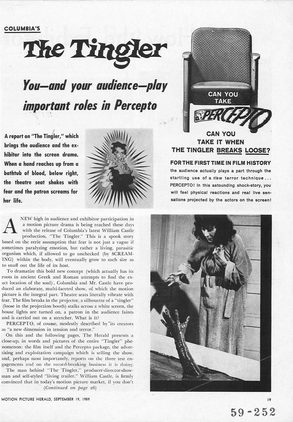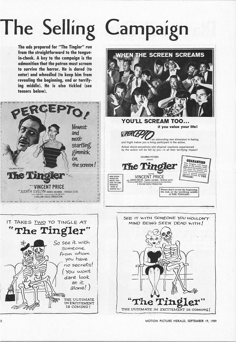 The Tingler Publicity Material Leave a Comment / Pressbooks (Horror, Sci Fi, Fantasy) / By JM Cozzoli Professor Kinema once again opens his files to share the following publicity material from 1959, for Columbia’s The Tingler…! Like this:Like Loading... Share this post Facebook Twitter Pinterest Linkedin