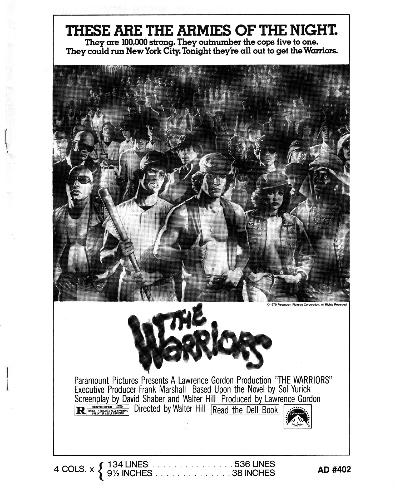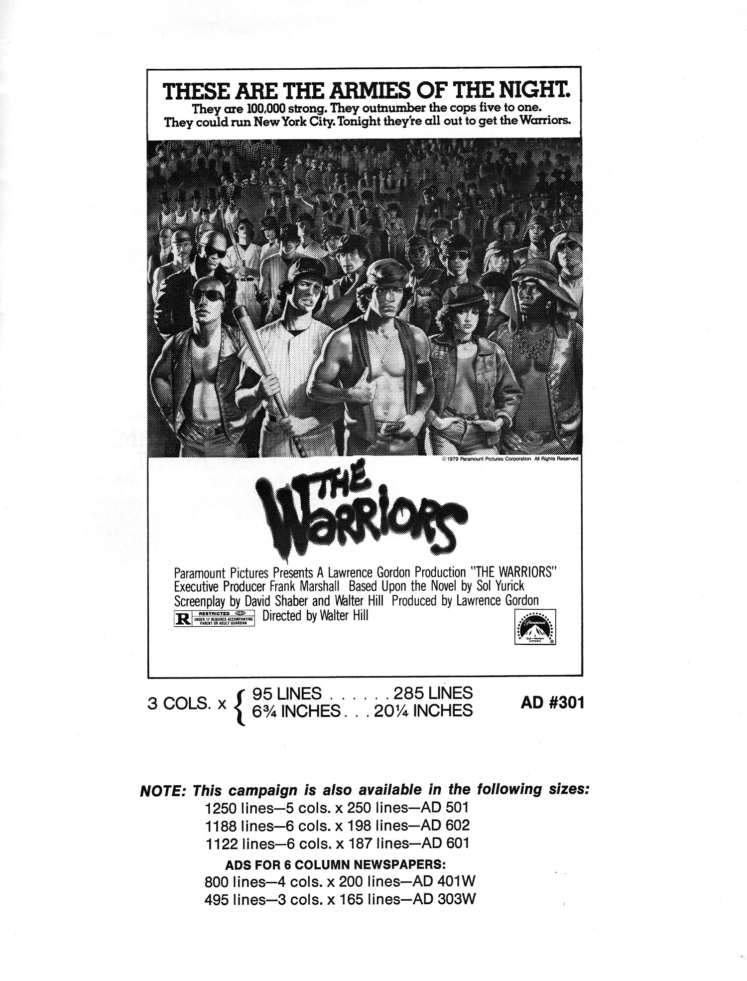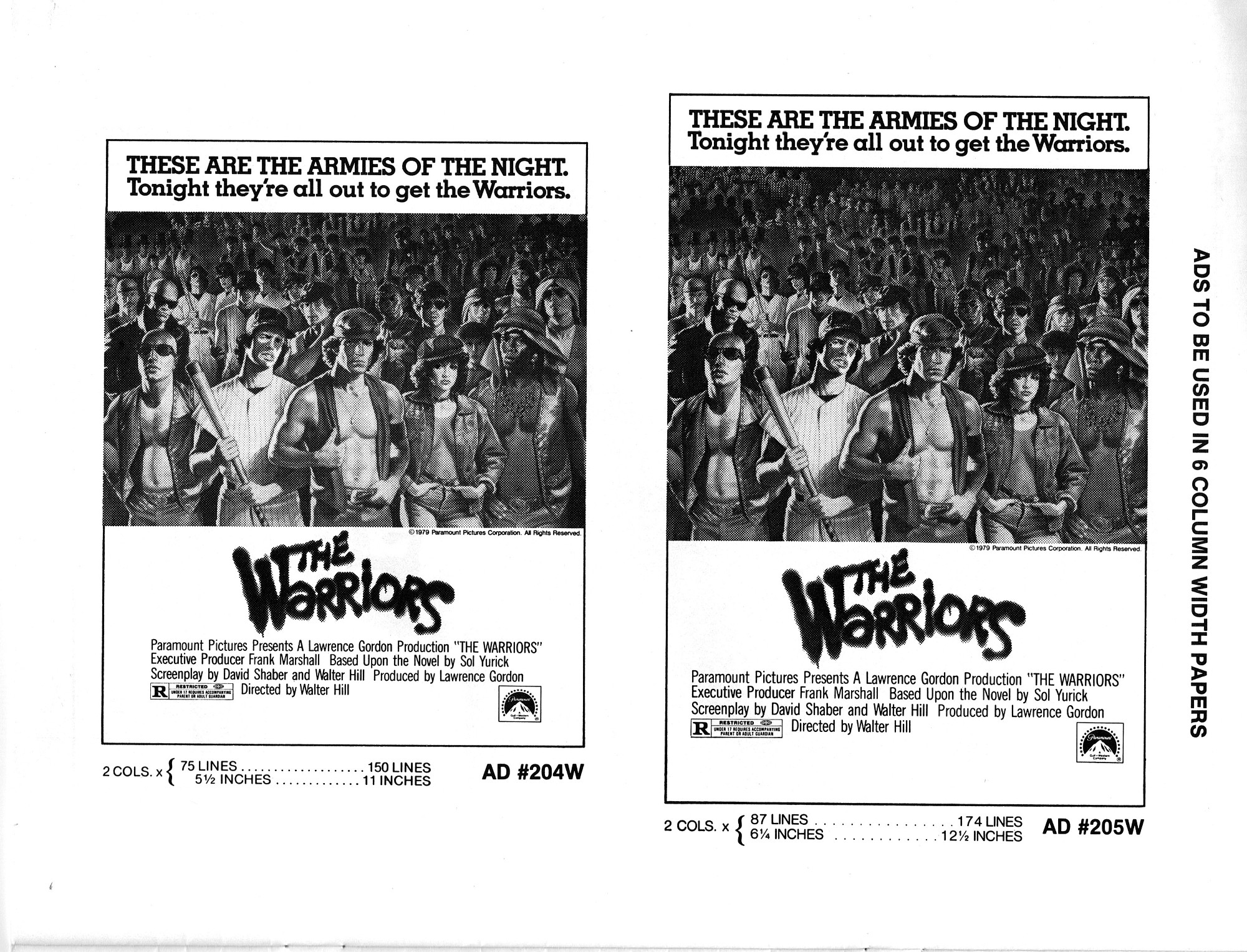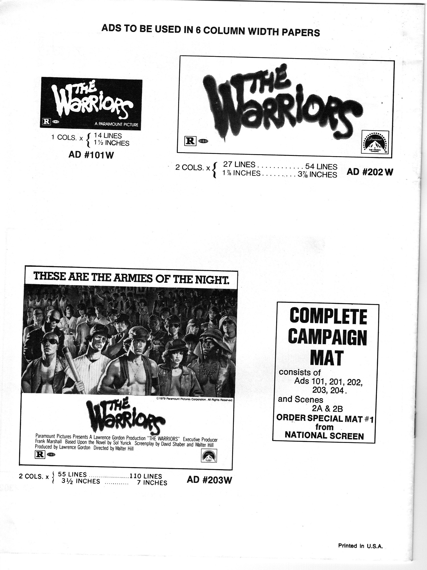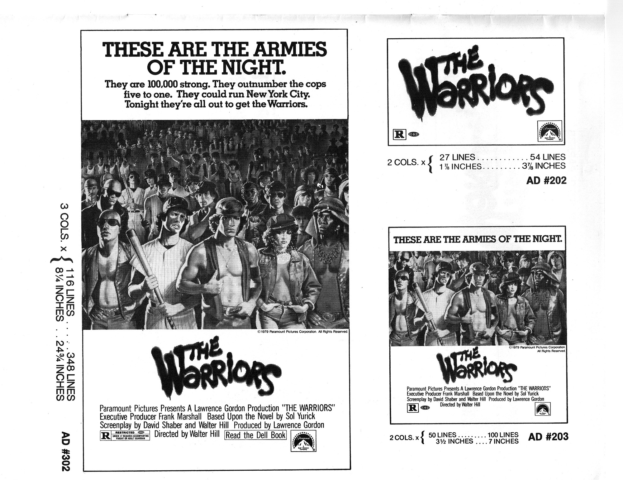 A powerful cult movie that simmers with 1970s angst. Here's the Handbook of Production Information on it: Download Warriors Presskit. And here's the comic book reader version of the pressbook: Download The Warriors Pressbook. Note the variety of ad mats for newspaper promotion.