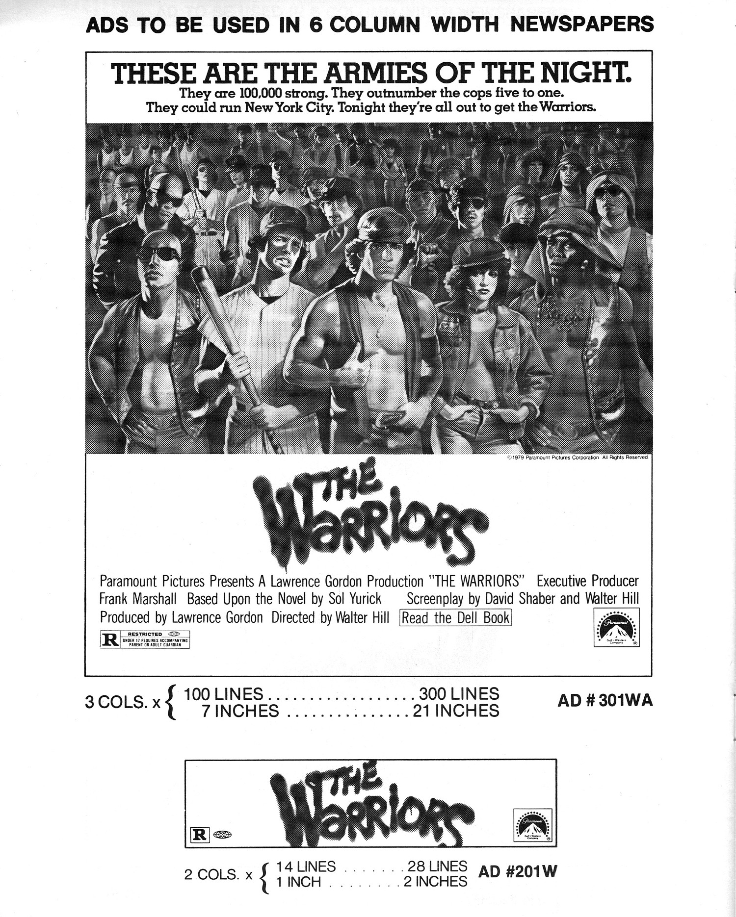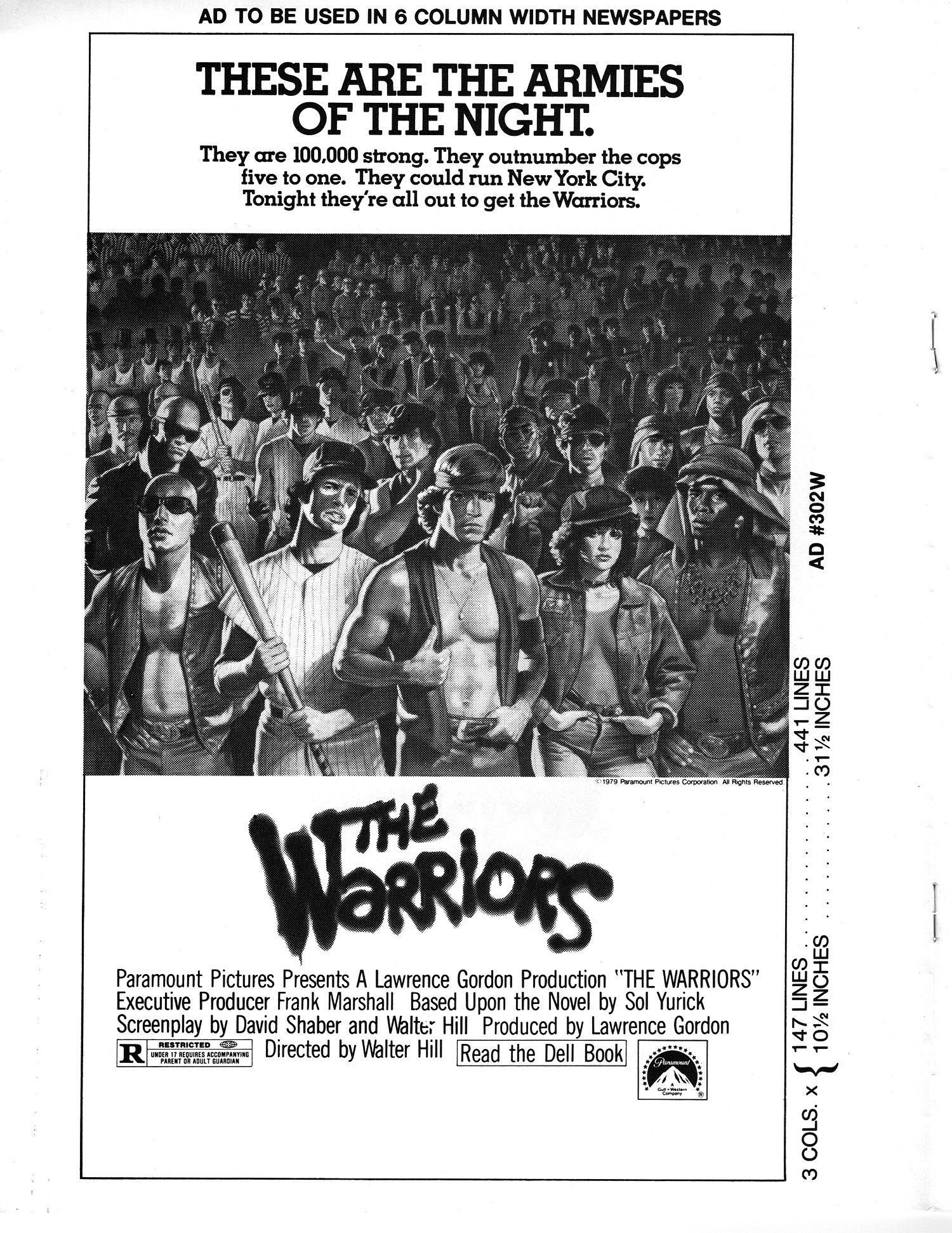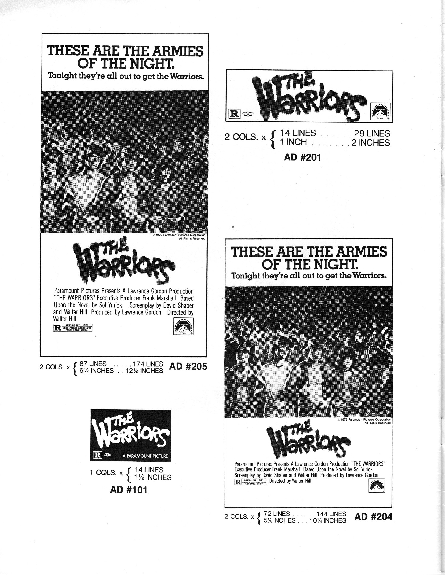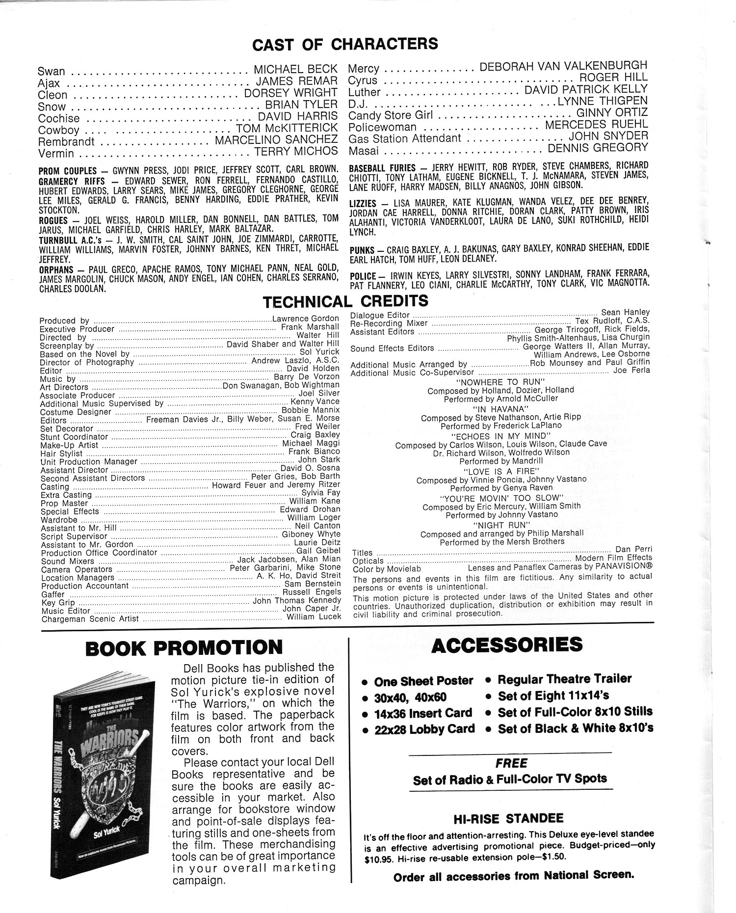 A powerful cult movie that simmers with 1970s angst. Here's the Handbook of Production Information on it: Download Warriors Presskit. And here's the comic book reader version of the pressbook: Download The Warriors Pressbook. Note the variety of ad mats for newspaper promotion.