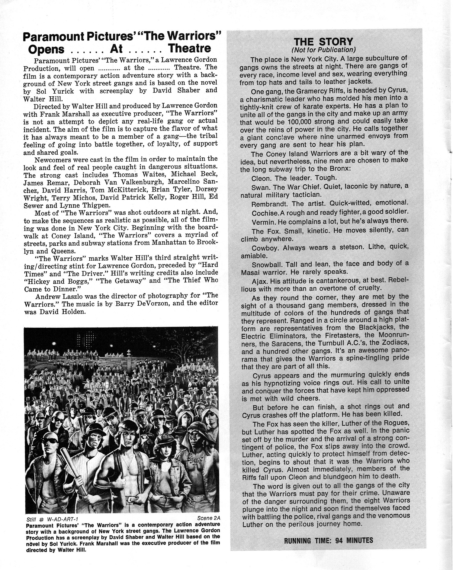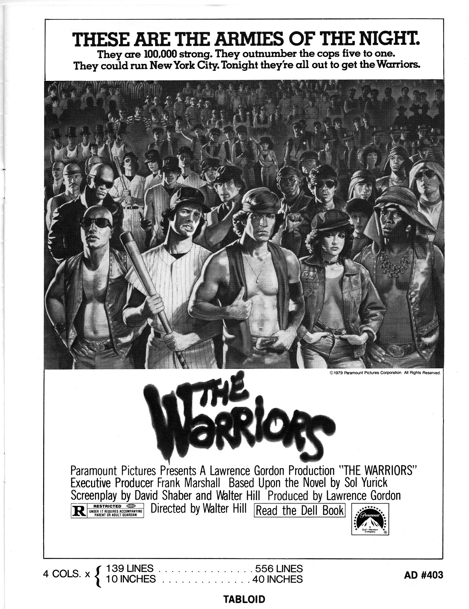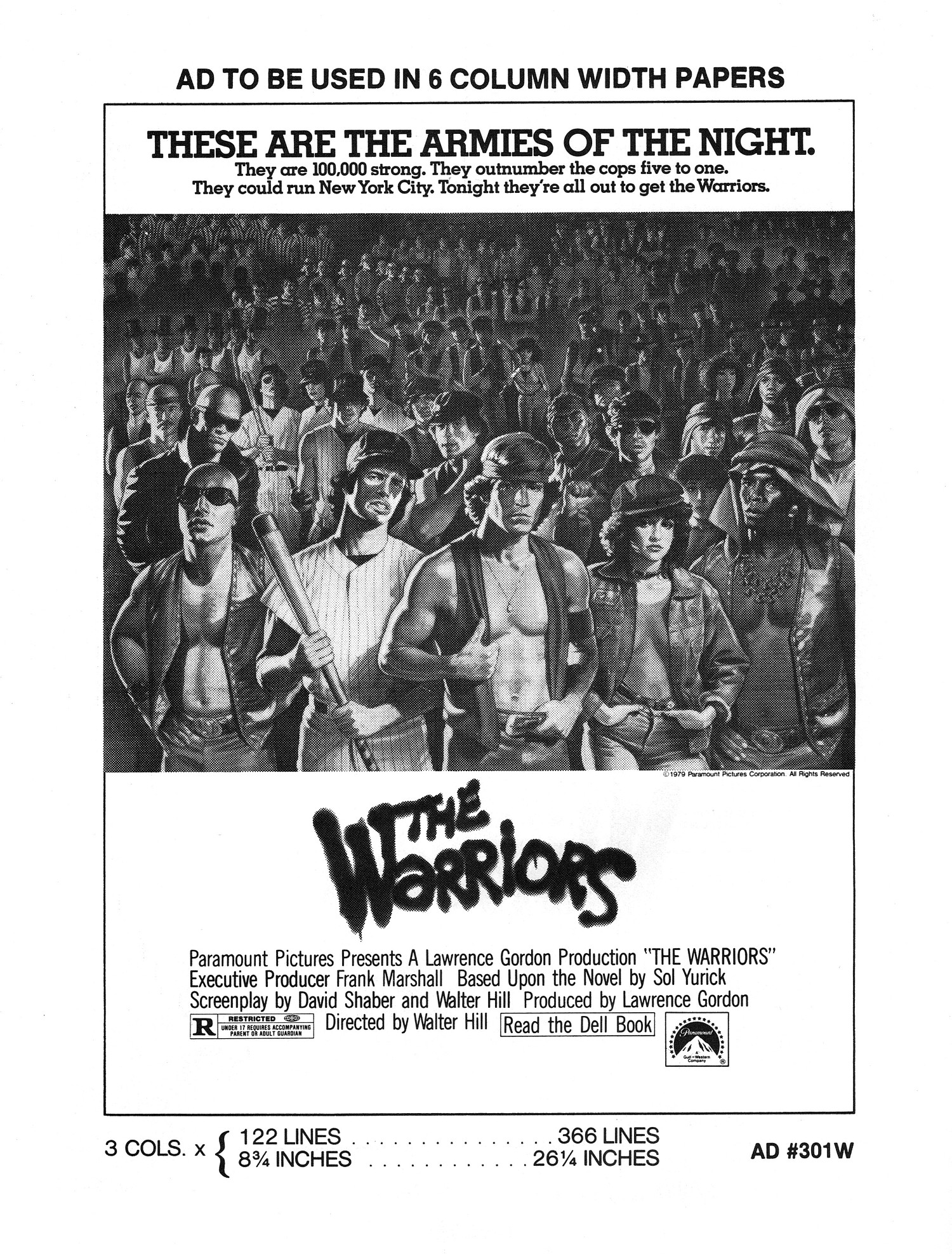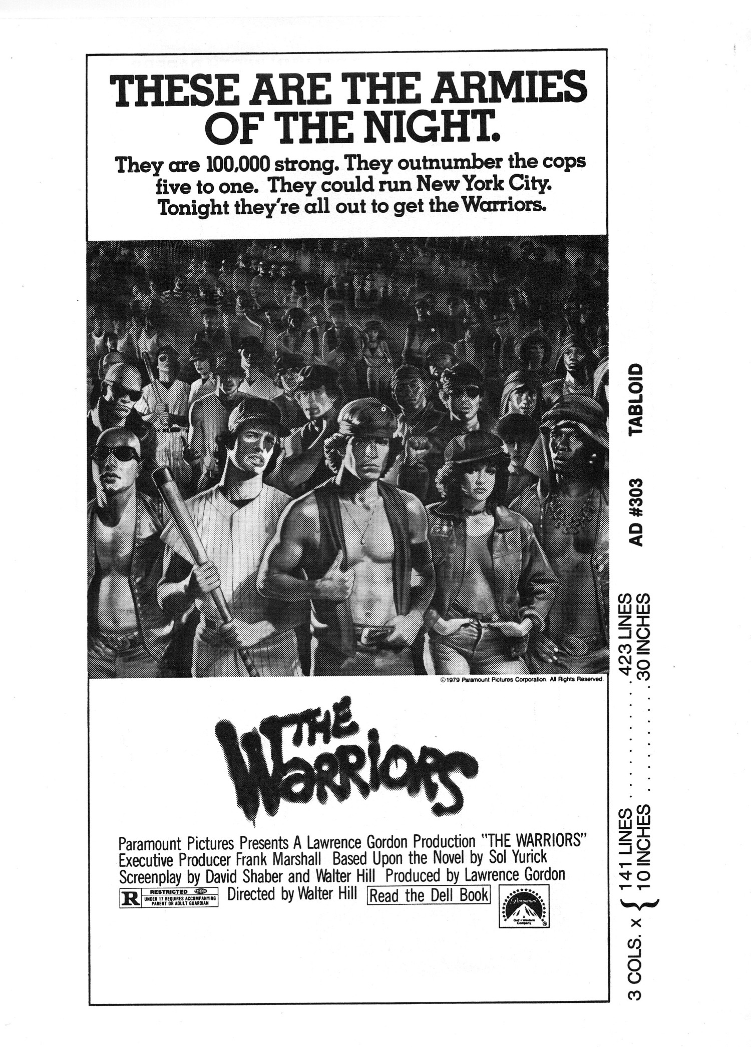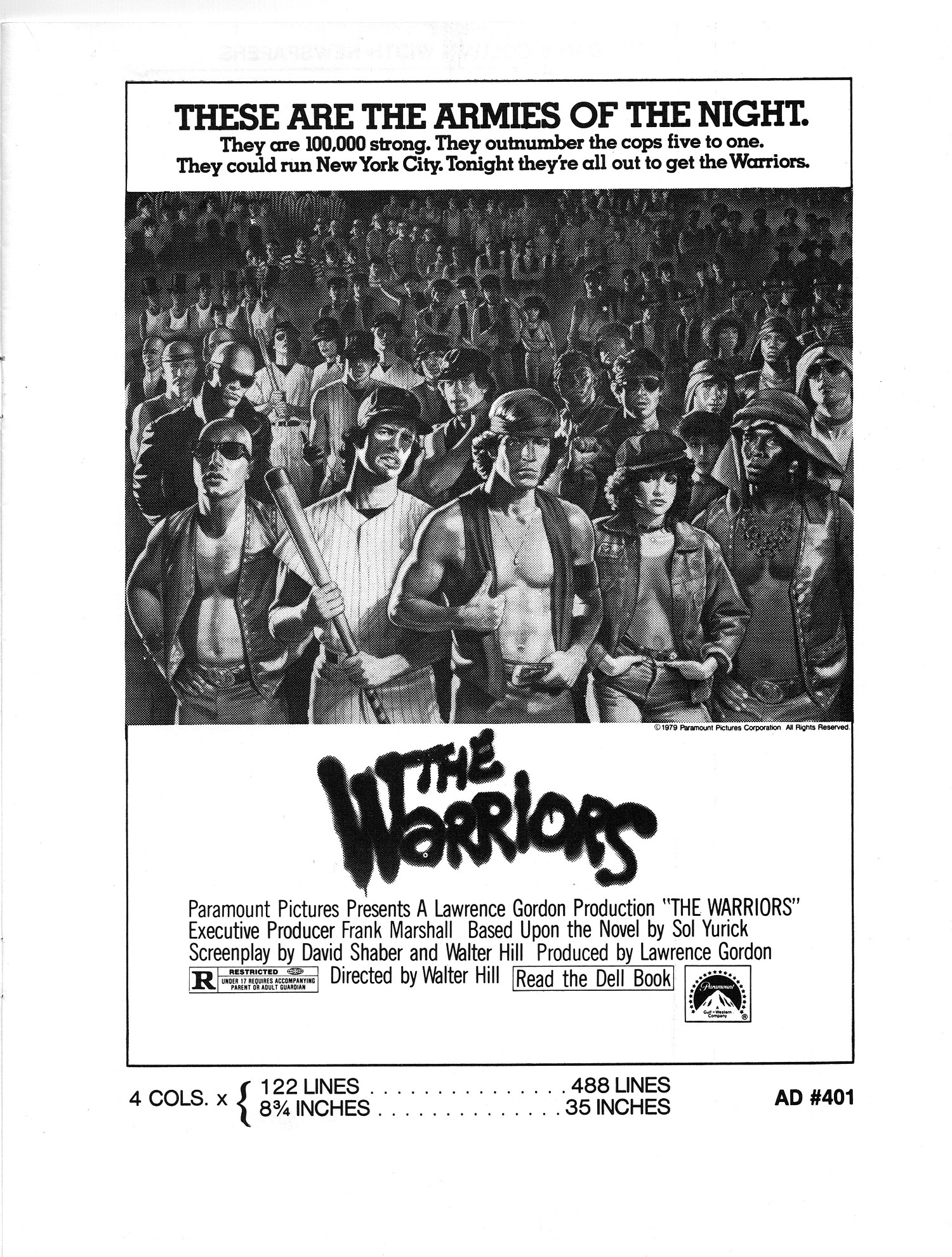 A powerful cult movie that simmers with 1970s angst. Here's the Handbook of Production Information on it: Download Warriors Presskit. And here's the comic book reader version of the pressbook: Download The Warriors Pressbook. Note the variety of ad mats for newspaper promotion.