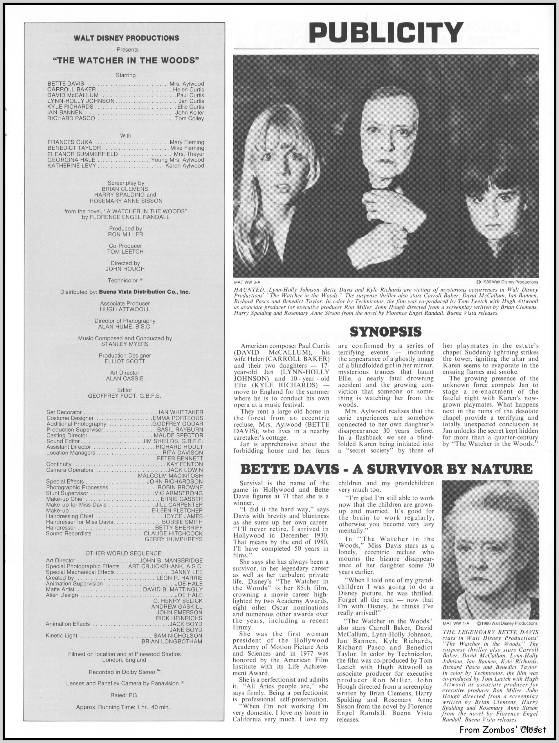 Download pressbook images: The Watcher in the Woods Pressbook or click the images to enlarge (but use a BIG screen).