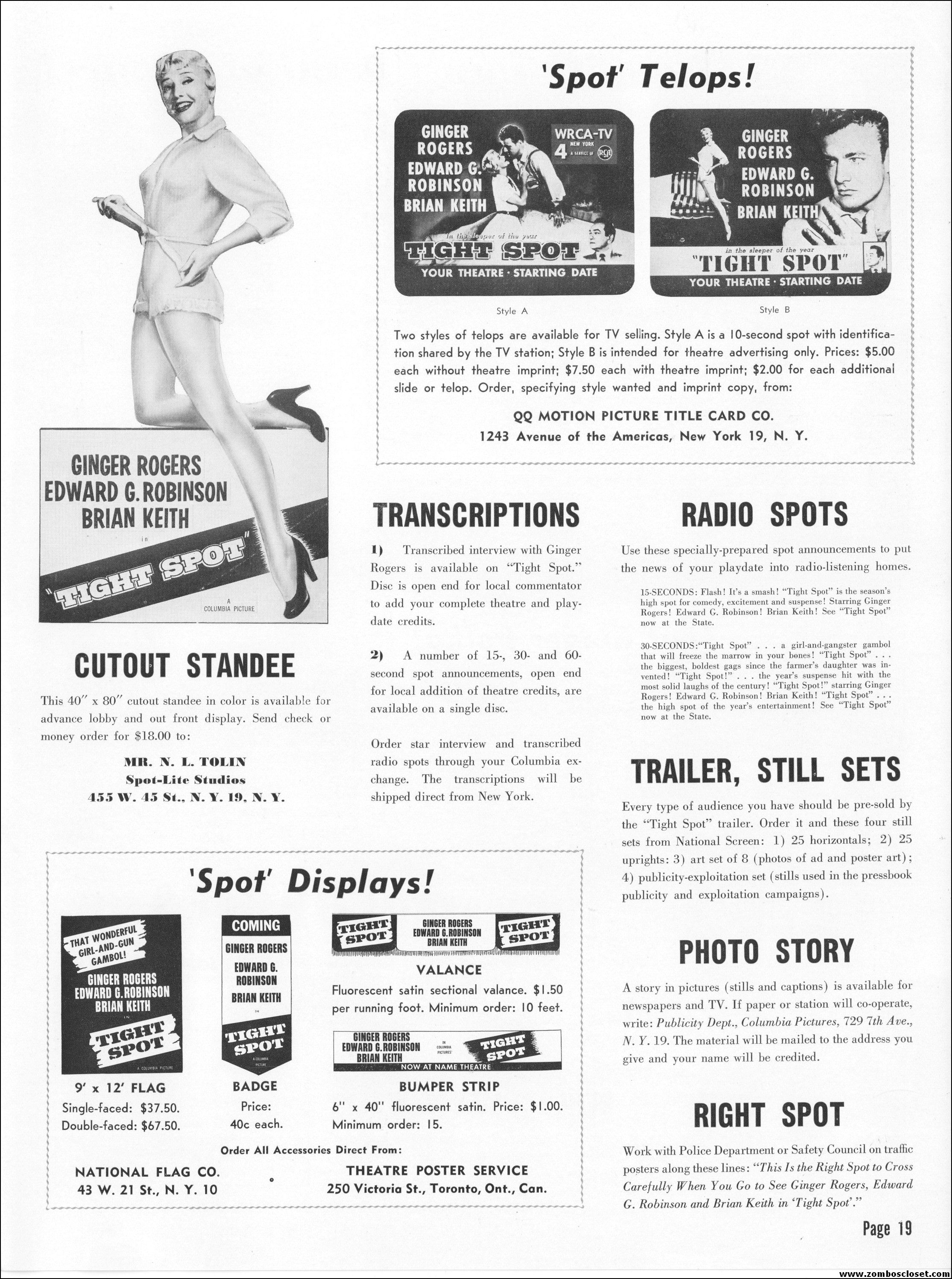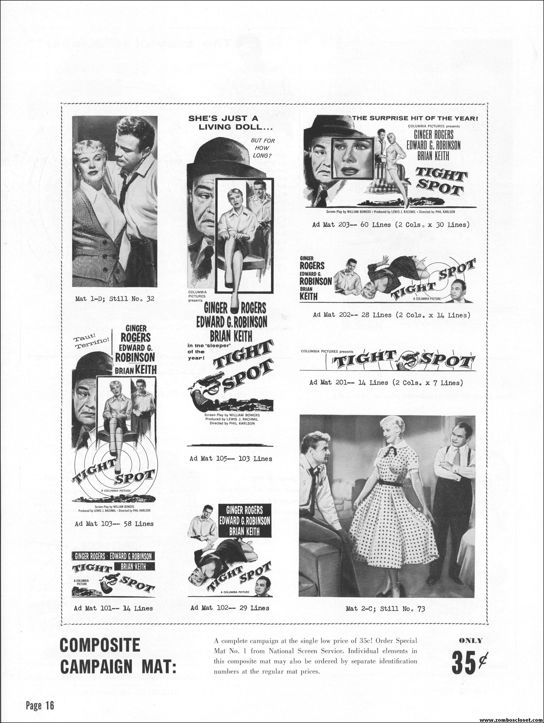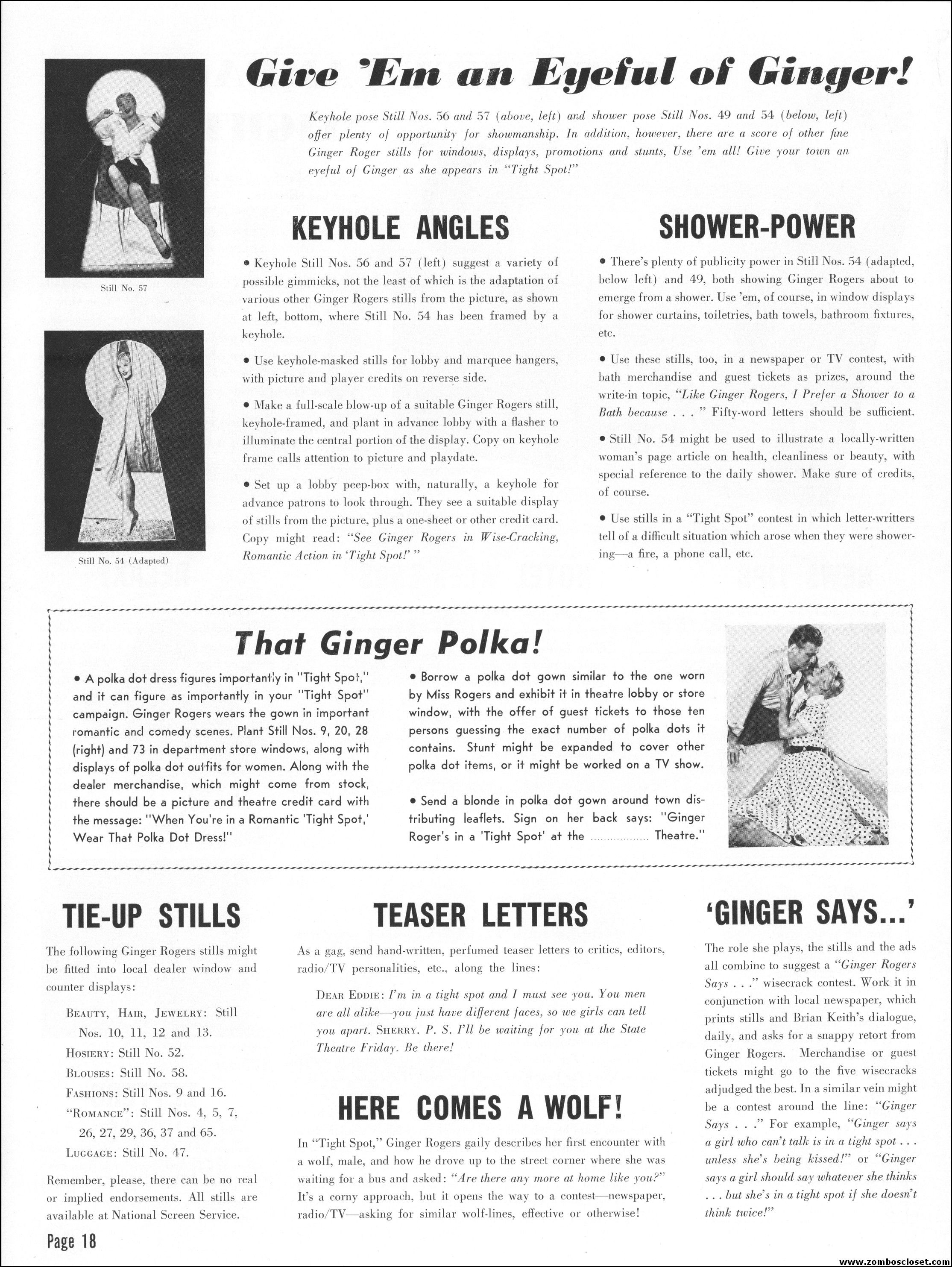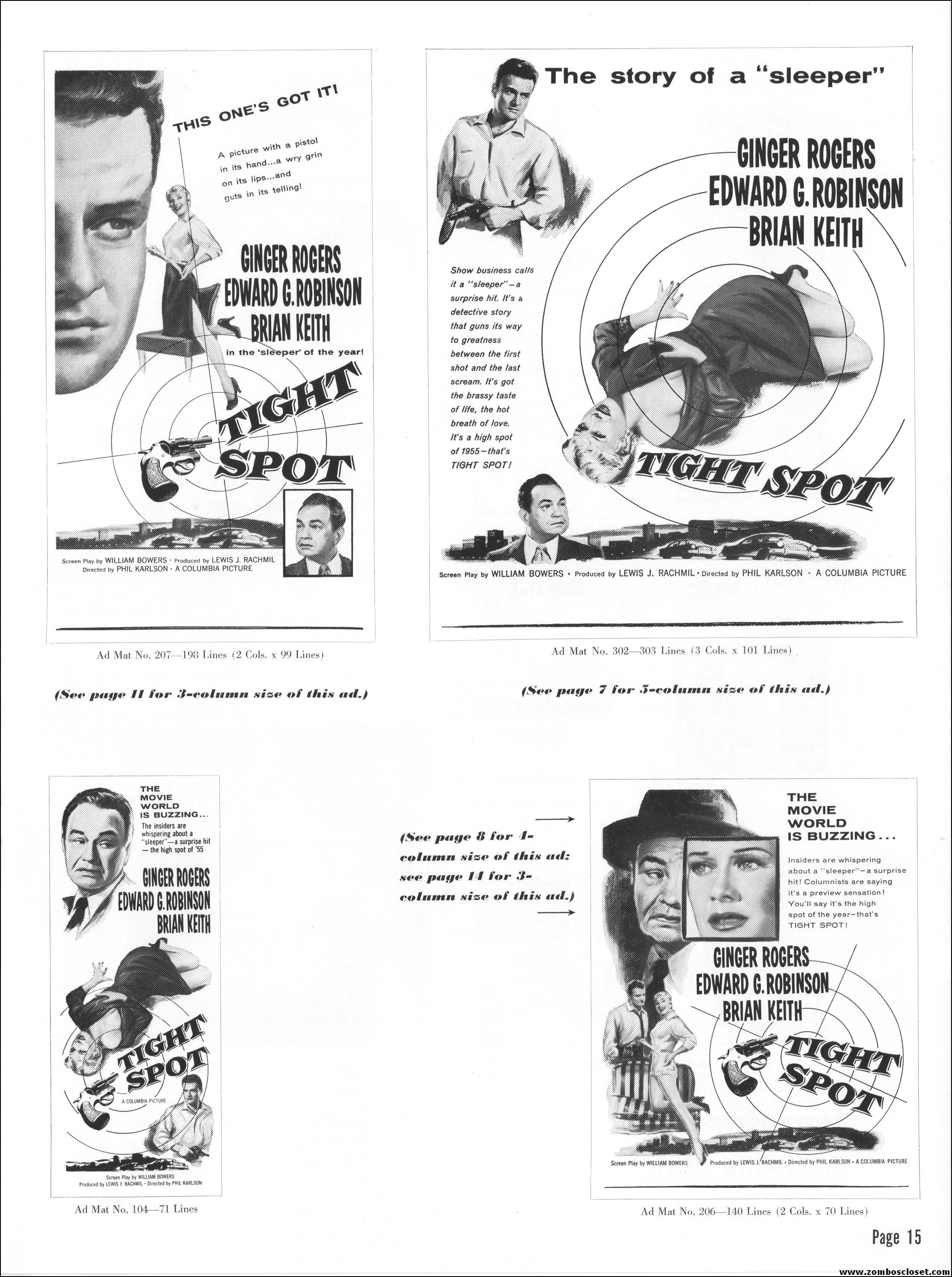 Like a little ginger cheesecake with your film noir? Here’s Ginger Rogers in Tight Spot, a movie with some kick as she’s manhandled by the cops and the criminals. Brian Keith plays the big lug who falls for her tight legs and snippy personality. Edward G. Robinson looks short in every scene but acts big as usual. The cast is gold, the dialog a bit too sappy, but this one’s a keeper even without the dancing.