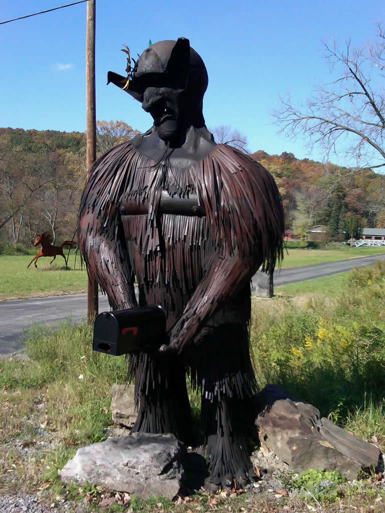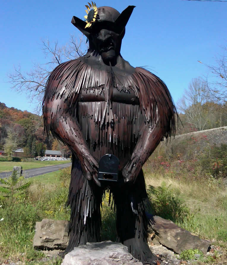 Maybe Max and me should have checked out who'd weld sheet metal together into the shape of a lumbering devil standing about 10 feet tall, with a large daisy stuck in its head, all just to hold a mailbox. But times there are, when weird stuff like this, found on a long and winding side road in PA, should stay mysterious.