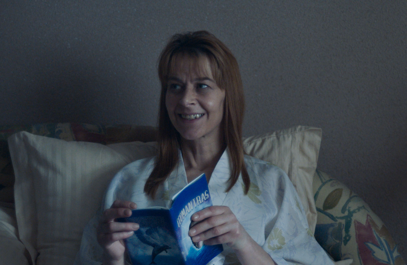 A door forced open later leads to a loopy time wrap from past to present to past, making for a very jarring entrance into those two buddies' world consisting of an endless and mostly dead cityscape of ruins. From there, the final story embraces a more colorful world but one of emotional emptiness for the people living in it. A perplexing return of a formerly "dead" husband (Sam Louwyck) makes it a problem for the current one (Adrian Rawlins). There's well-placed dark humor here, especially with the letters the disconnected and disaffected son puts on his bedroom wall, as if he had to be reminded of what those letters spell out. A karaoke rendition makes for a very uncomfortable scene and is the only heated one allowed in the movie. A deeply disturbing but telling (and darkly funny) visit to a social worker makes this story the most perplexing but inherently understandable one of the bunch.