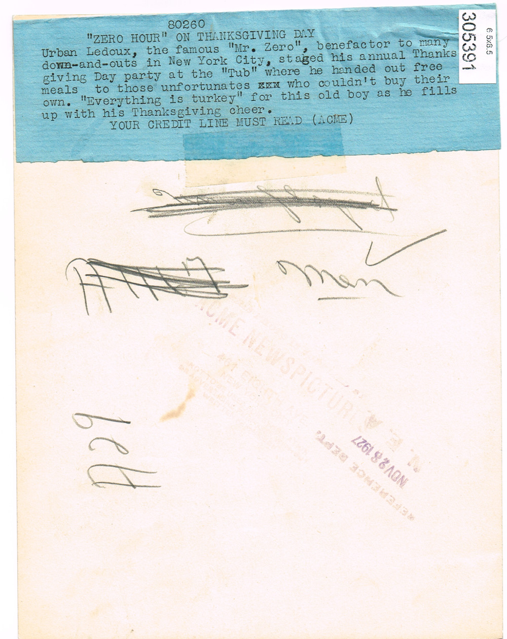 Thanksgiving Day, 1927 — If I told you there was this guy, Urbain Ledoux (I know, the papers liked Urban instead of Urbain), who gave up a business career to help the homeless and foster humanity among his fellows, who wanted to be a priest but got turned off by seeing very unpriestly misconduct, and who worked hard to awaken the slumbering conscience of the people to help those less fortunate and less news-sensationalized than the bombastic morons parading as intelligentsia today, you'd say I was crazy. I'm not, he was, and we all should be just as crazy as him.