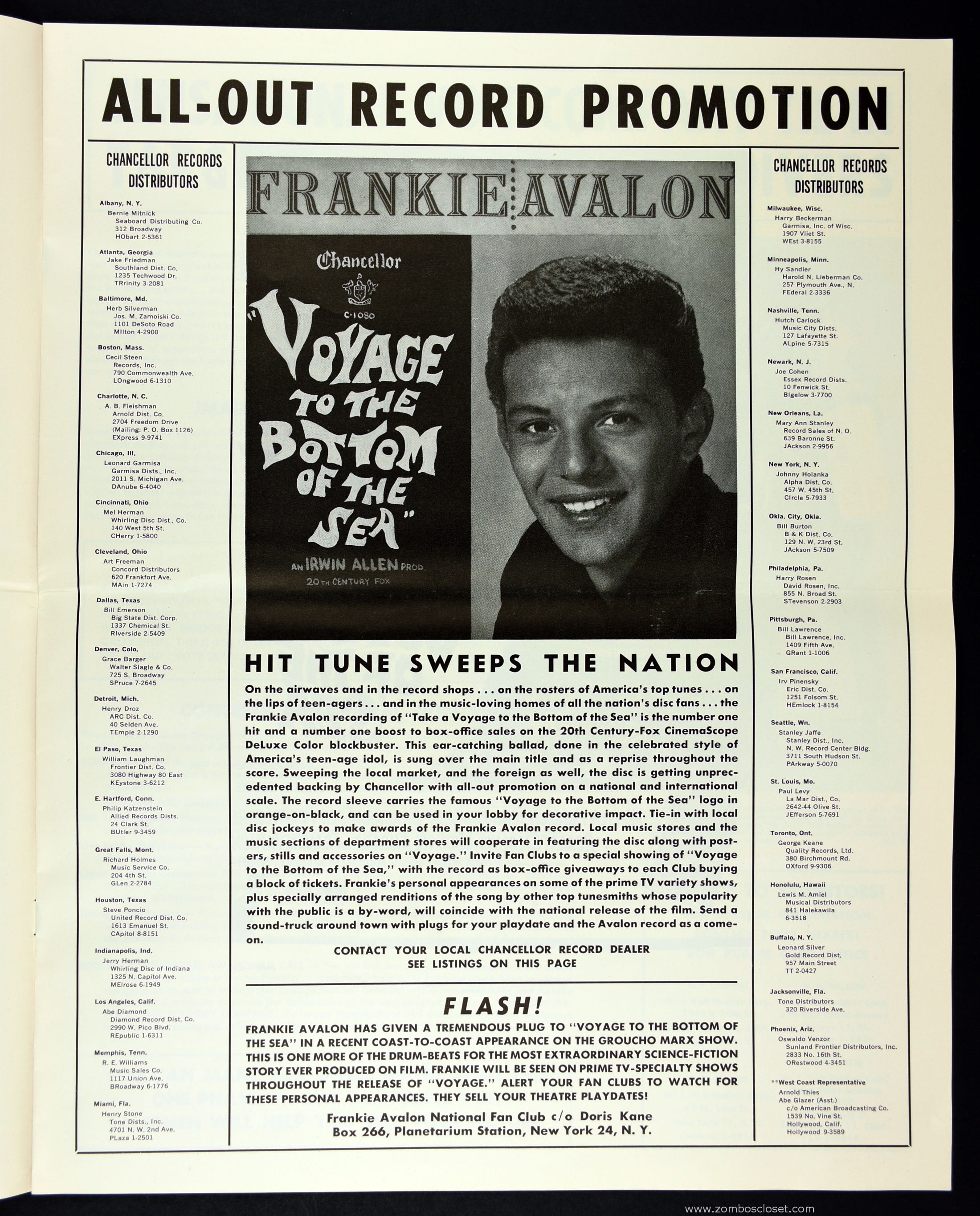 There are lots of merchandising tie-ins for Irwin Allen's Voyage to the Bottom of the Sea movie: a comic book, a novel, a board game, and Frankie Avalon singing so they could sell some records. Of course the movie version doesn't have space aliens; the television series had the space aliens, and lots of other cool fantasy stuff Irwin Allen tossed in (with lots of sparkly, silvery, and colorfully goofy props and makeup) to make the TV series a must see for kids after Lost in Space became a hit.
