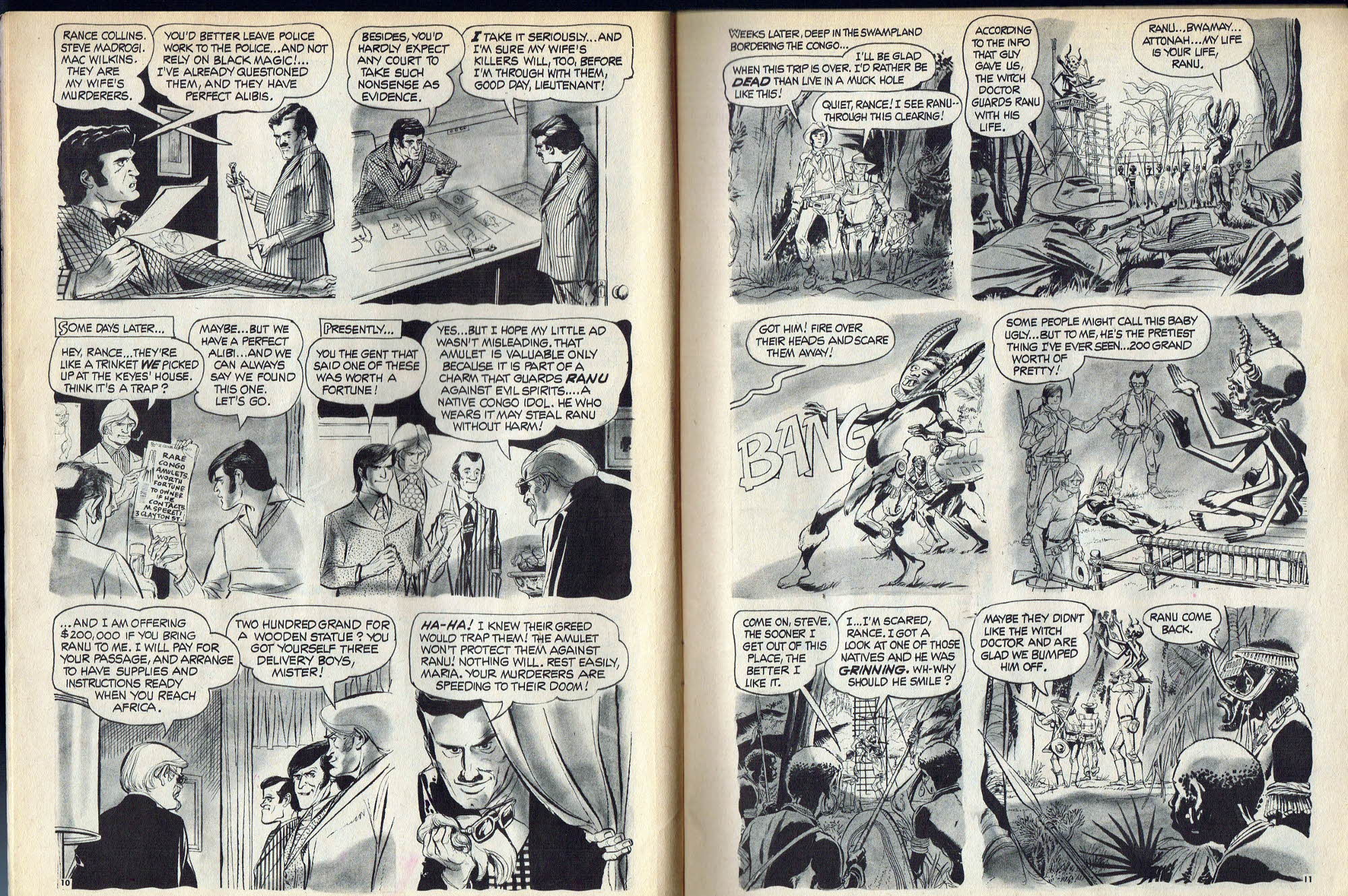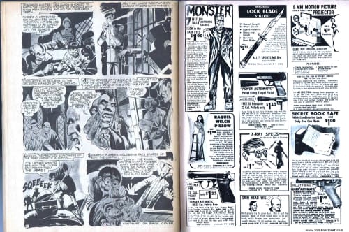 Wade into The Murder Pool and lose some weight, spend a Night of Terror by mistake, and don't take finger rings from ghouls with big eyes. Your eyes don't deceive you: Ghoul Without Pockets was printed with pages 47 and 48 out of order. So read page 48 before 47. You may also notice that the cover is a poor cut and paste job from previous issues. Weird. Very weird.