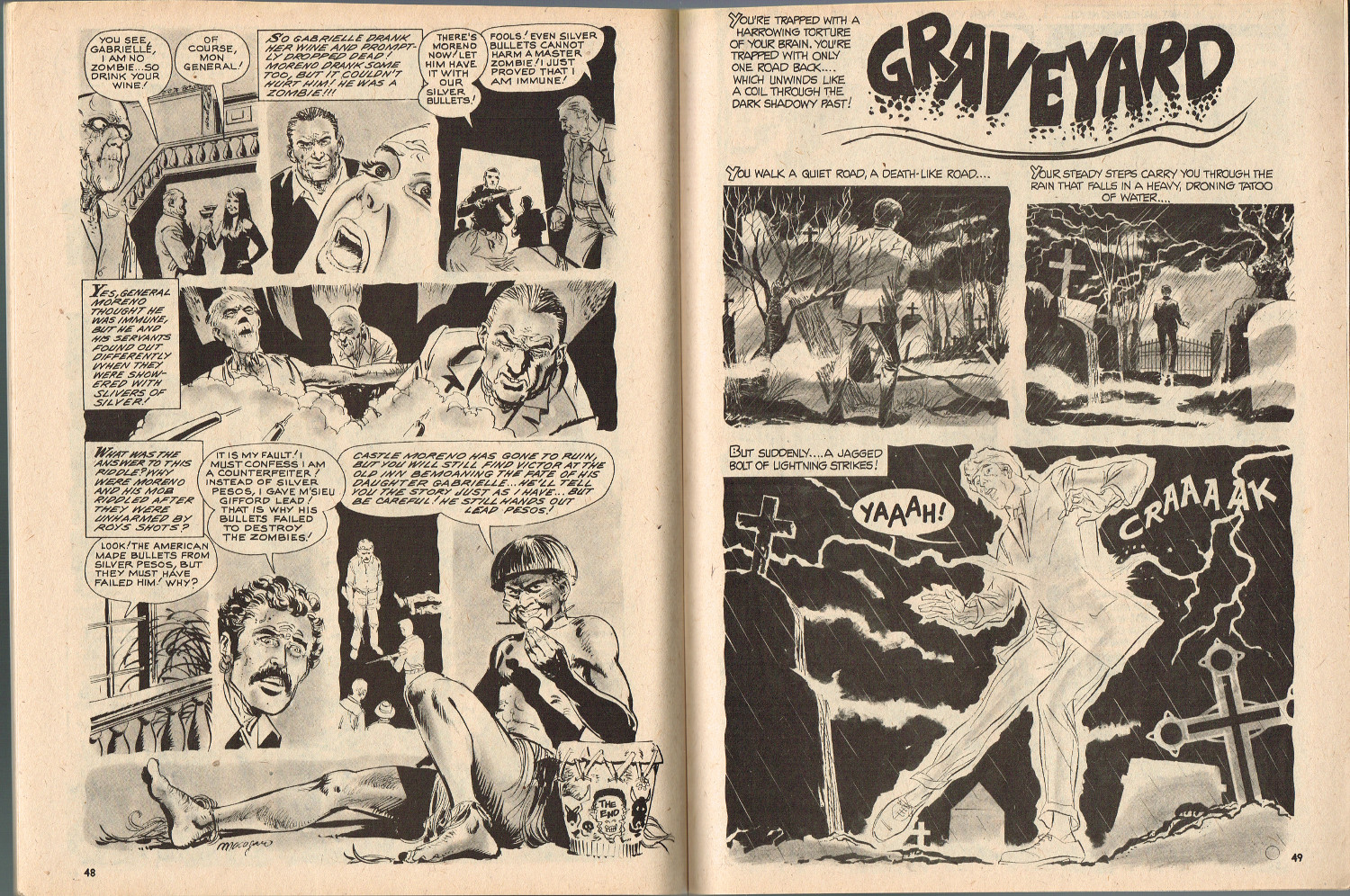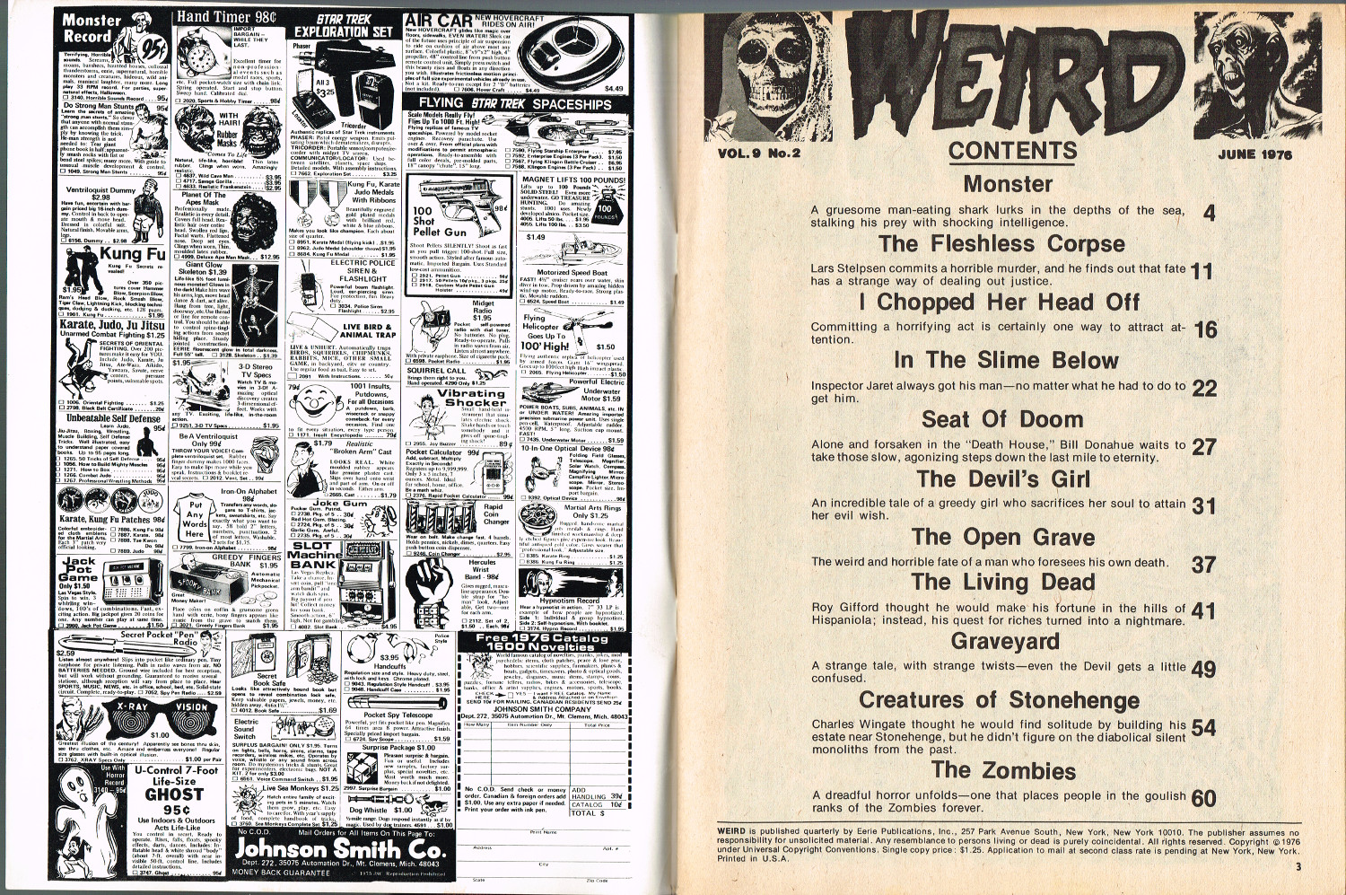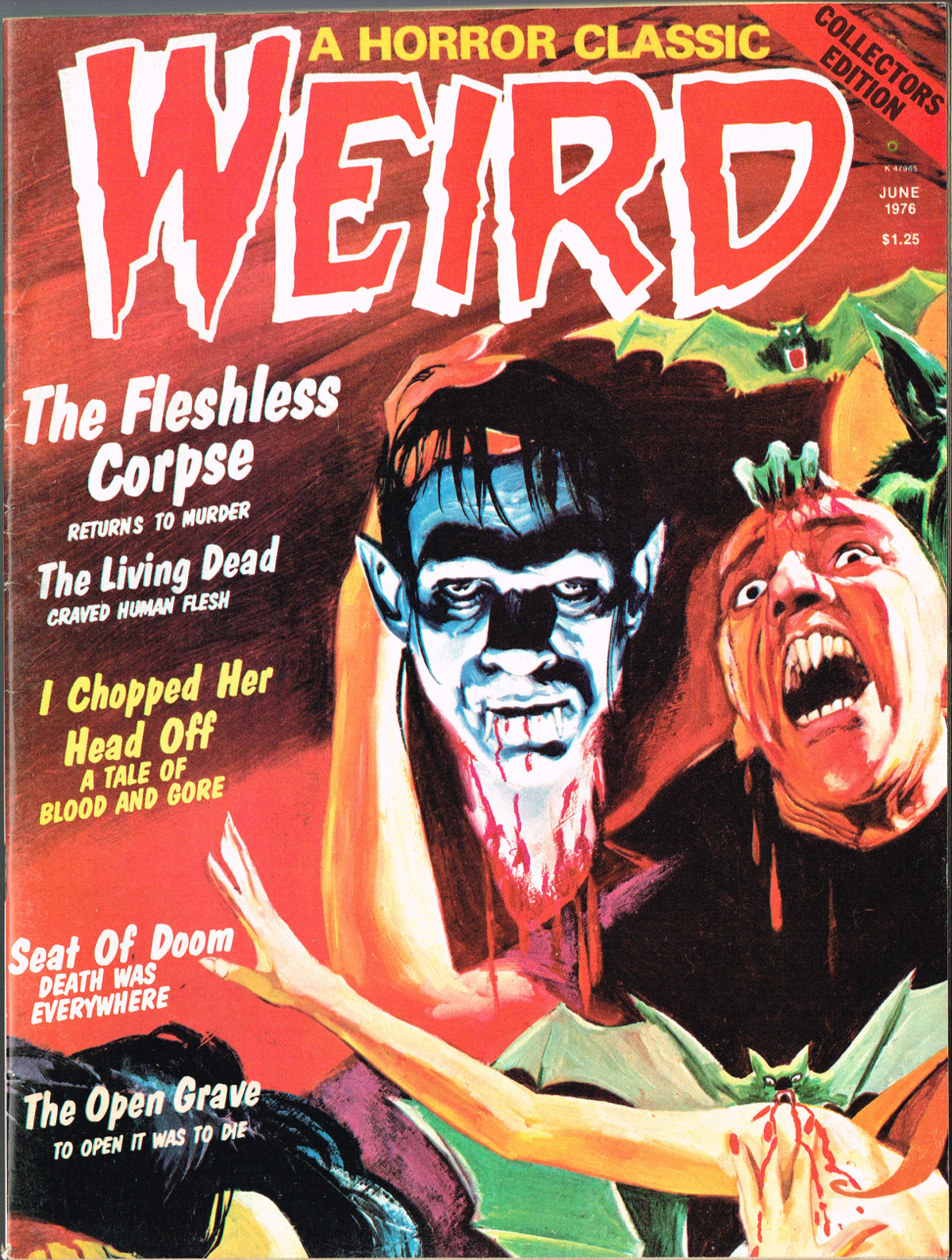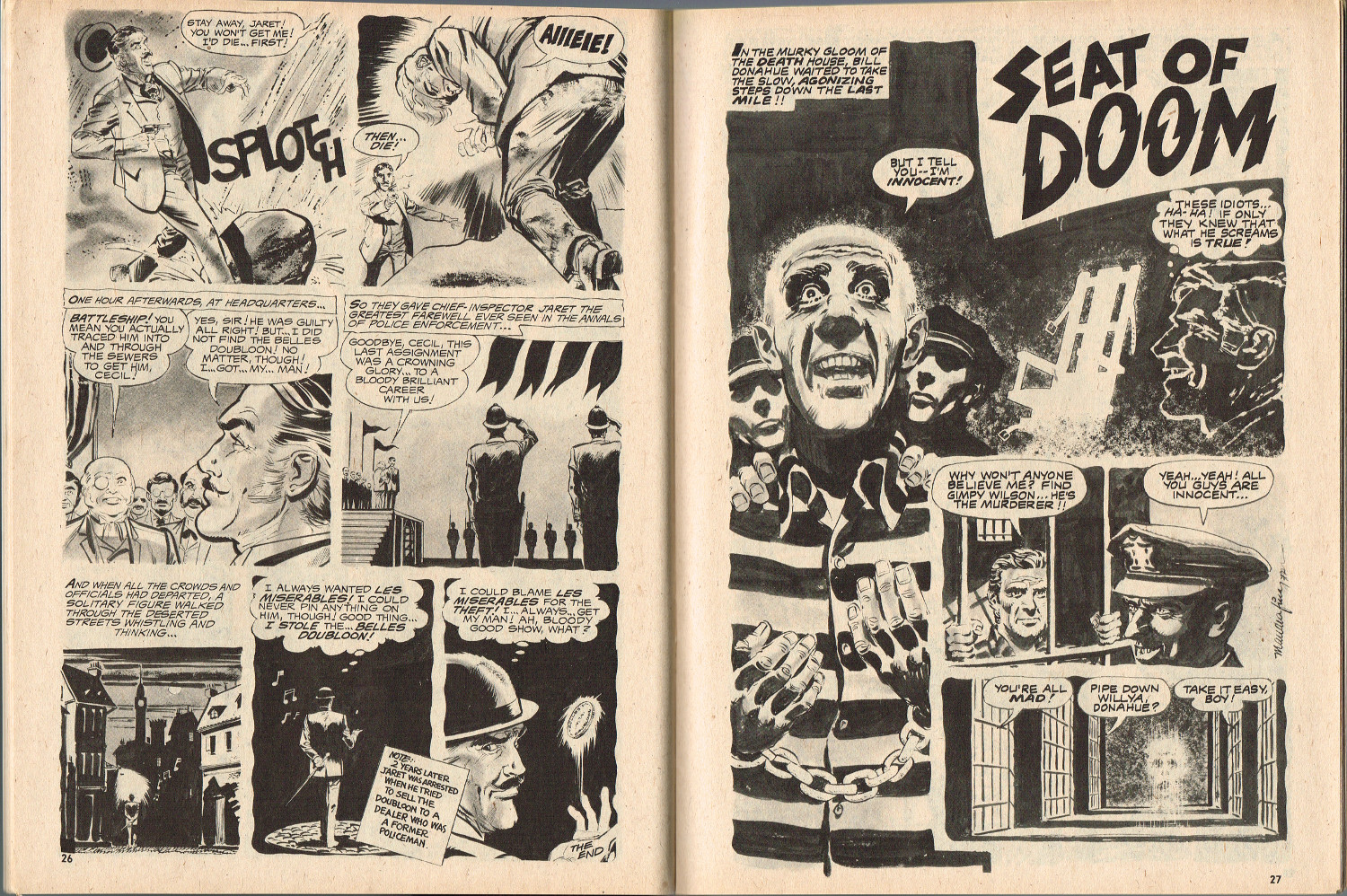 With a cover that's a zoomed in portion of the cover from Tales From the Tomb, May 1974, this issue of Weird, which picks up 15 months after the original magazine's run, "ain't nuthin' but a bunch of reprints. Evidently the kid who picked the stories was a fan of Macagno and Mandrafina, as their artwork takes up over half of the magazine." (from The Weird Indexes of Eerie Publications by Mike Howlett) But, hey, these stories are still chilling when read in the dead of night.