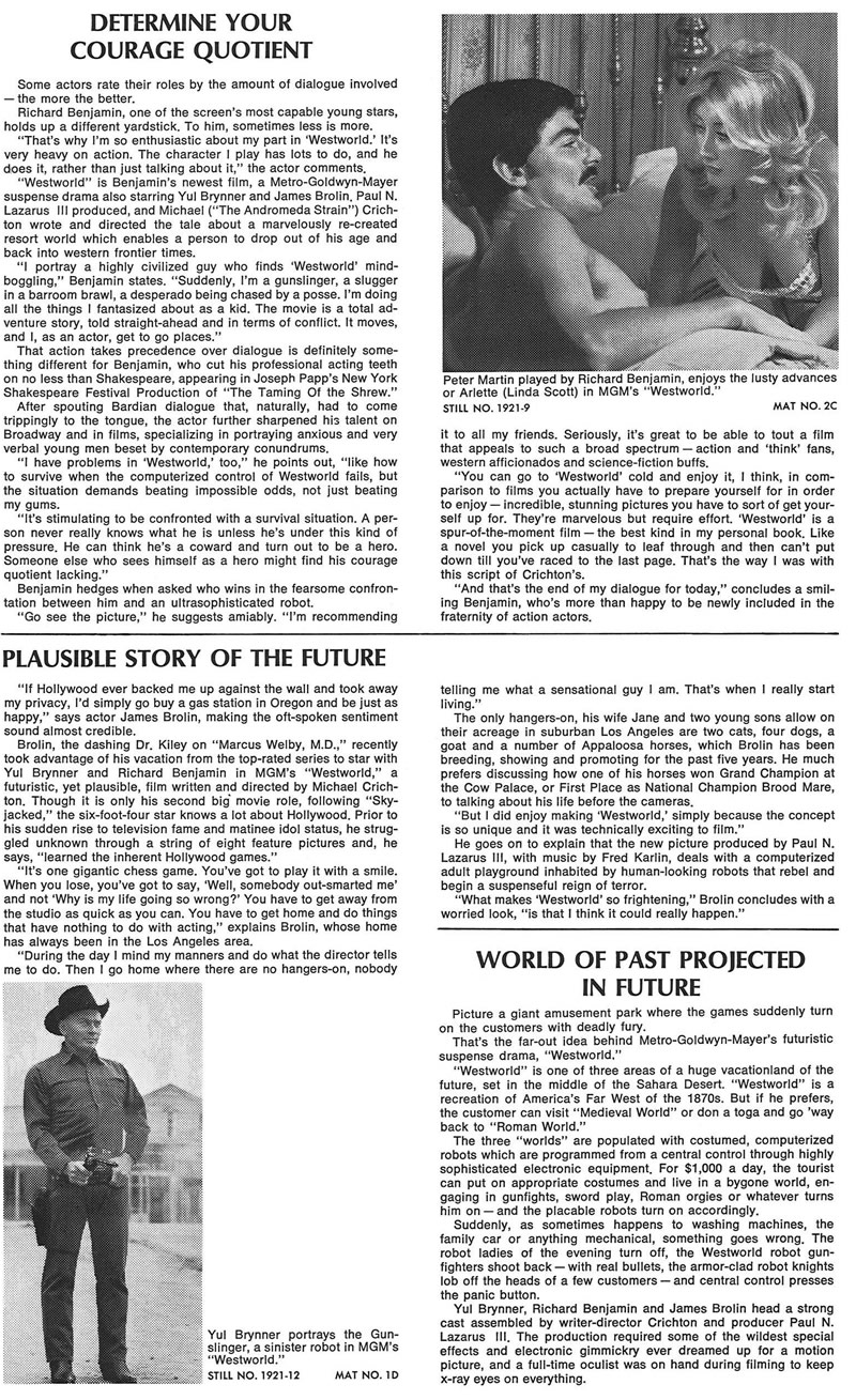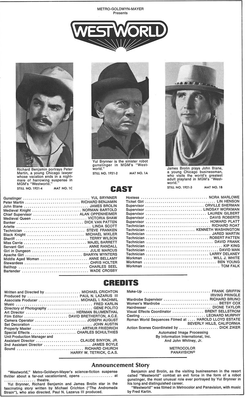 Westworld (1973) Pressbook Leave a Comment / Pressbooks (Horror, Sci Fi, Fantasy) / By JM Cozzoli Considering the latest developments in robotics, this may not be that far off. Like this:Like Loading... Share this post Facebook Twitter Pinterest Linkedin