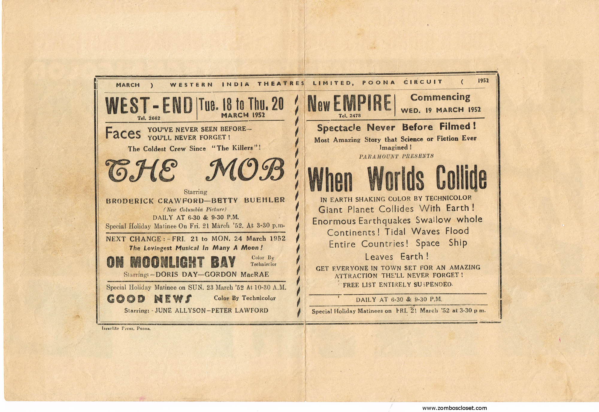 When Worlds Collide (1951) Herald Leave a Comment / Pressbooks (Horror, Sci Fi, Fantasy) / By JM Cozzoli Here’s a movie herald for When Worlds Collide. The movie won the Academy Award for special effects in 1951, even if George Pal had to scale back due to budget.2024 Update: Terry Michitsch provided enhanced images for the herald. Thanks Terry! Like this:Like Loading... Share this post Facebook Twitter Pinterest Linkedin