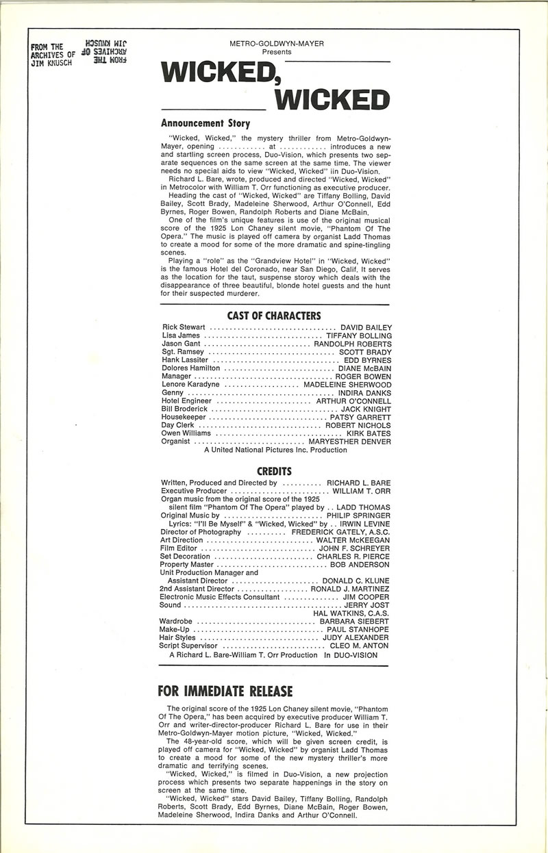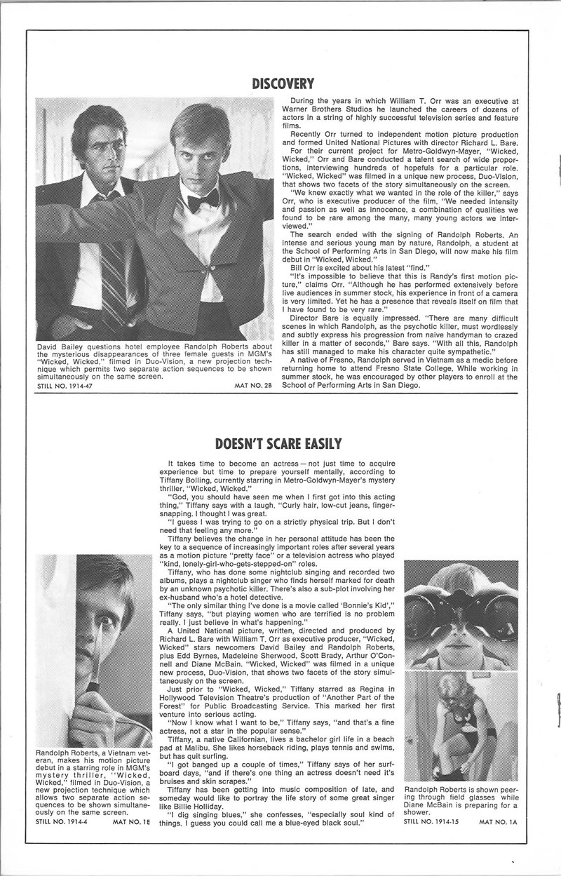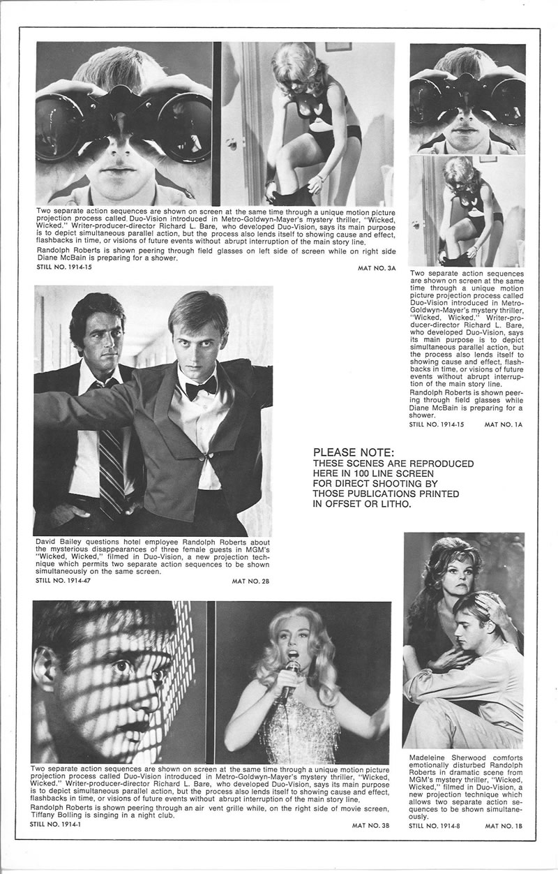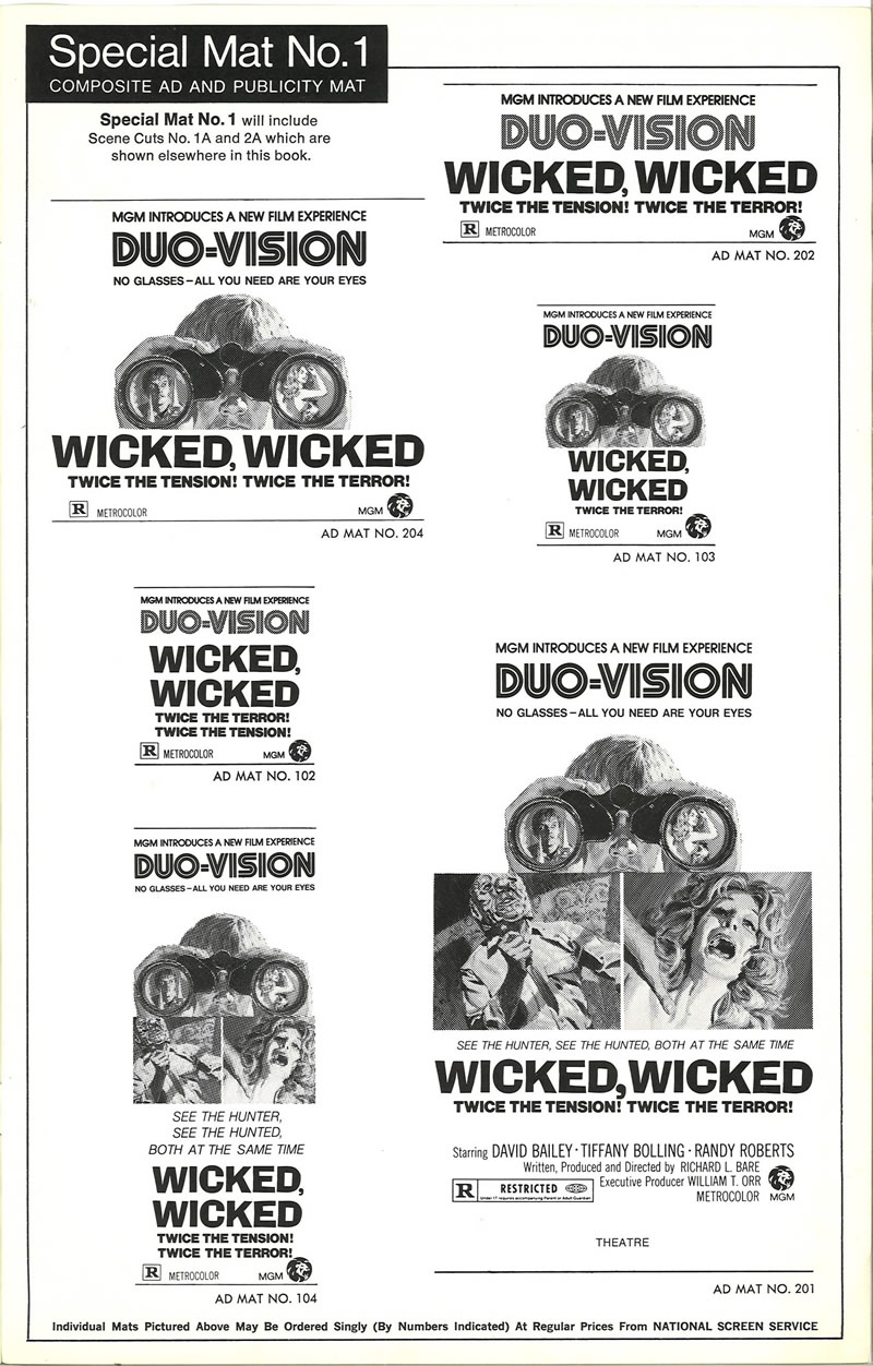 Wicked, Wicked (1973) Pressbook Leave a Comment / Pressbooks (Horror, Sci Fi, Fantasy) / By JM Cozzoli Move over silent era, step aside talkies, hit the road 3D. Now we have Duo-vision. Duo-Vision was by no means ground-breaking. It was just a promotional marketing term to describe split screen. Like this:Like Loading... Share this post Facebook Twitter Pinterest Linkedin