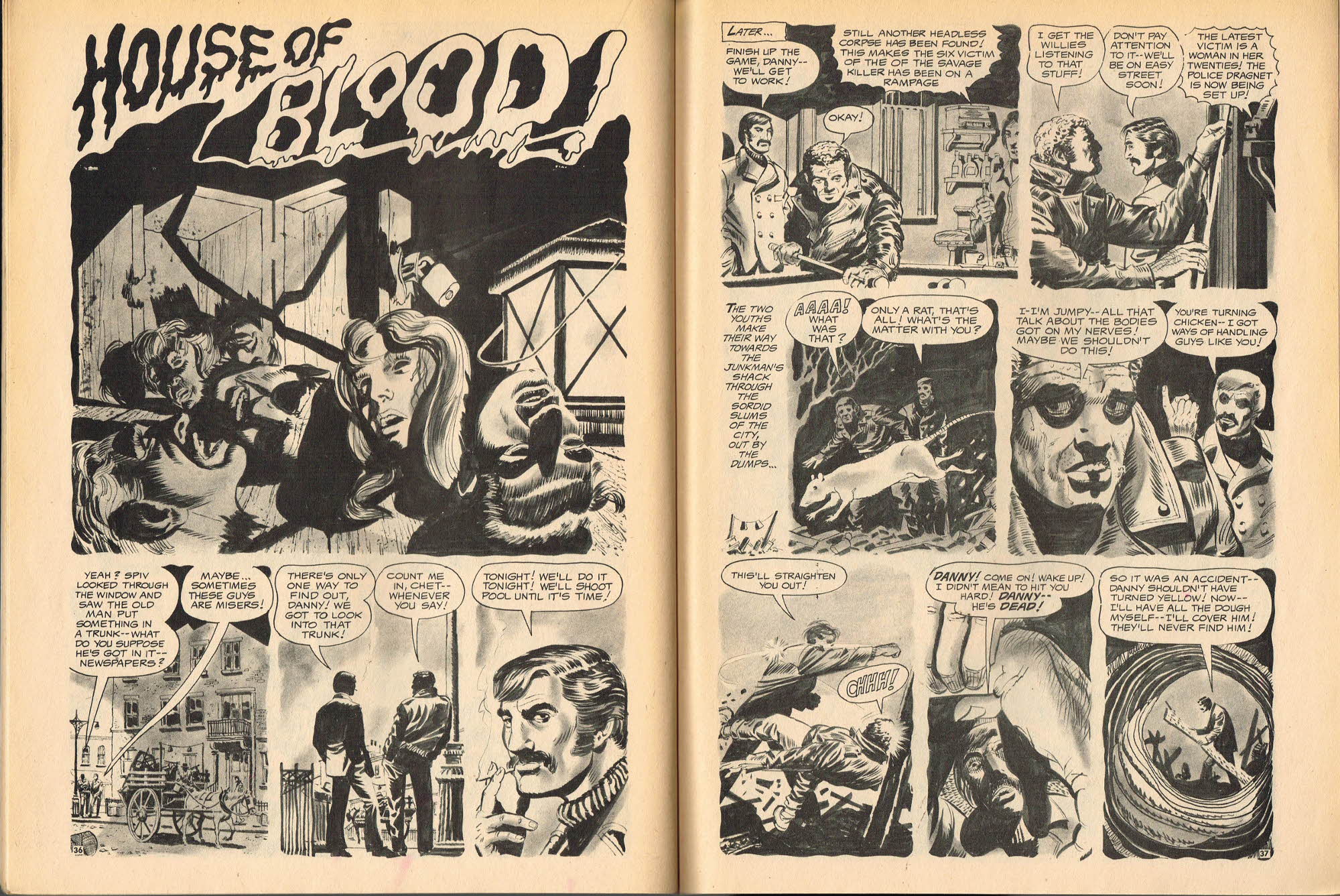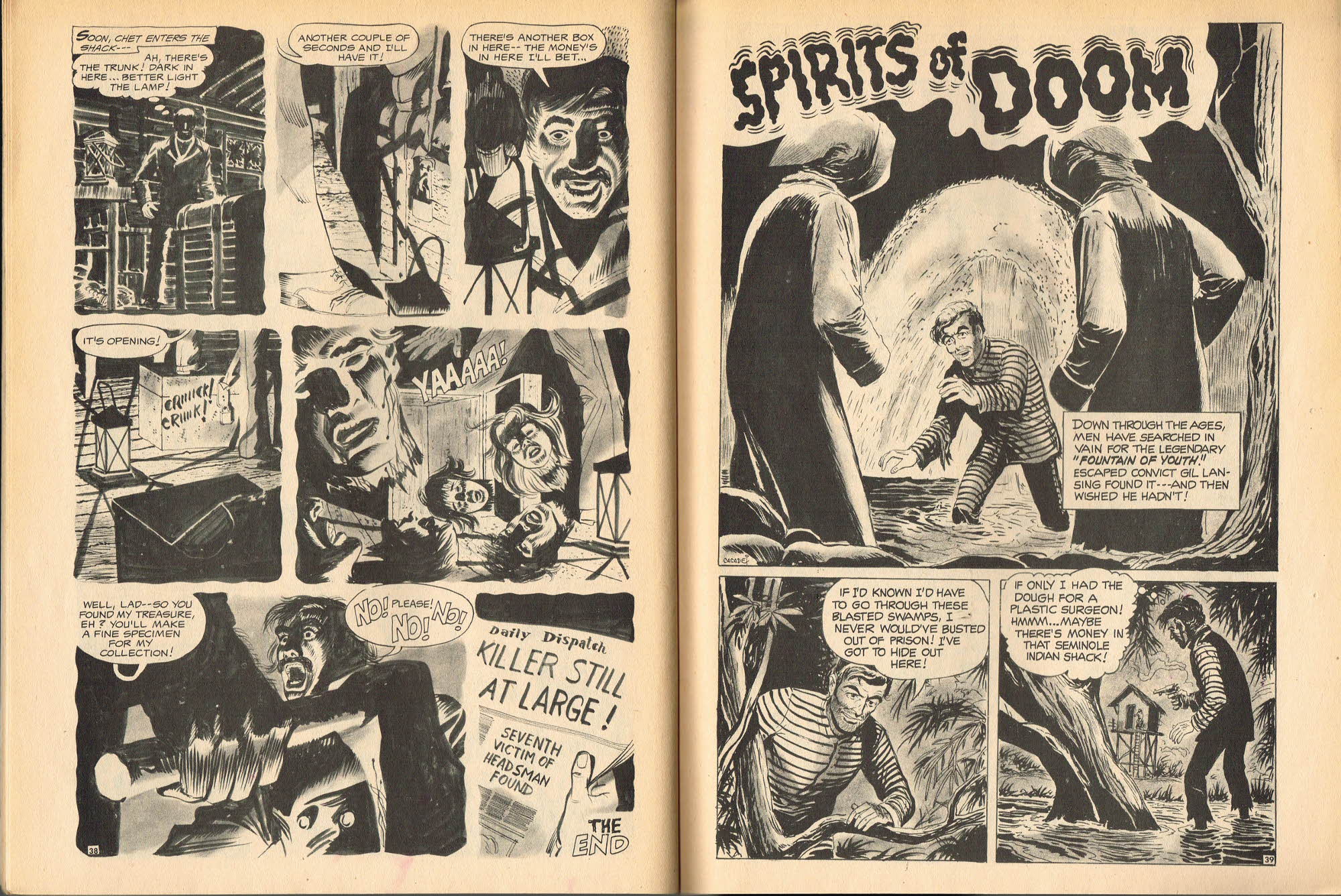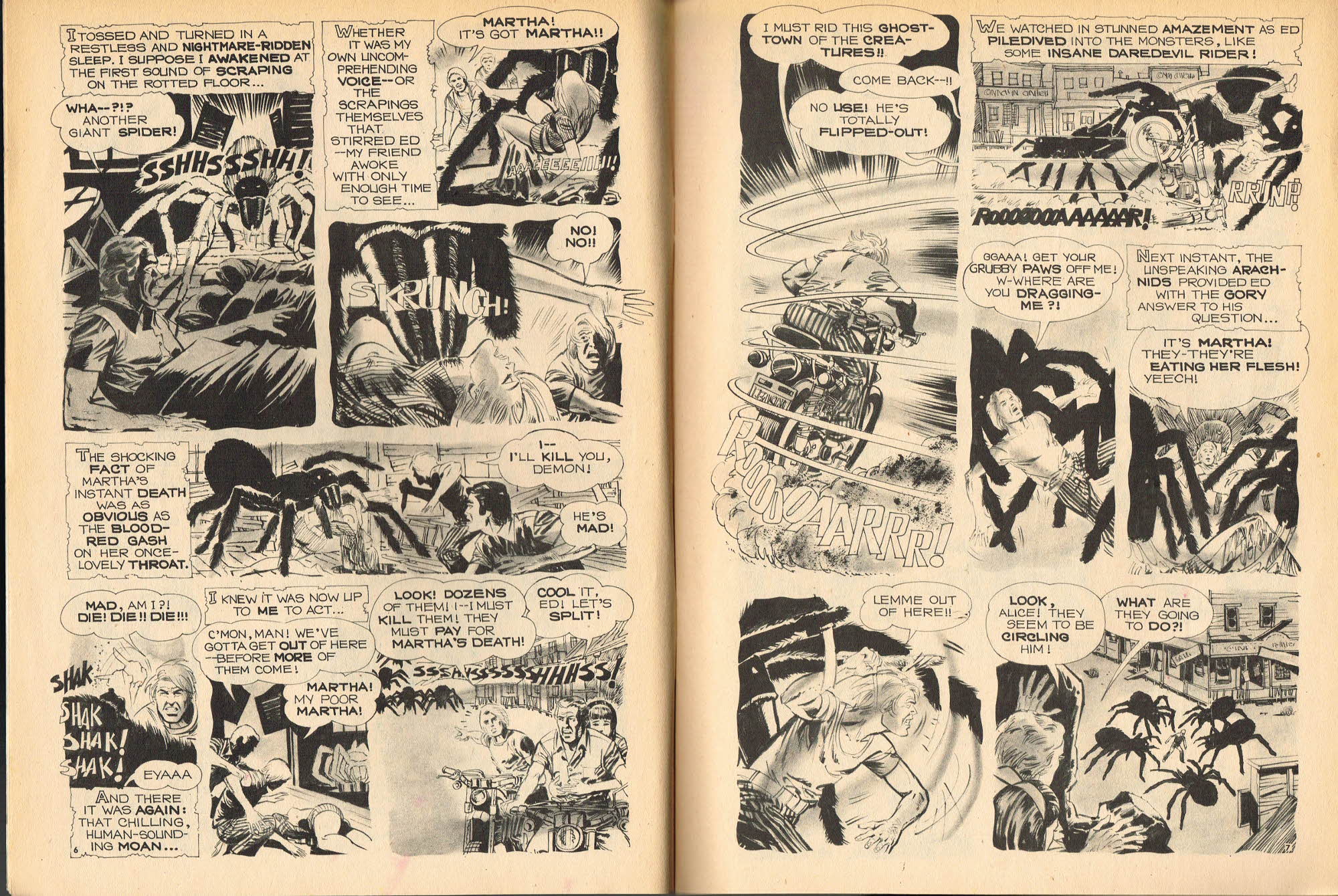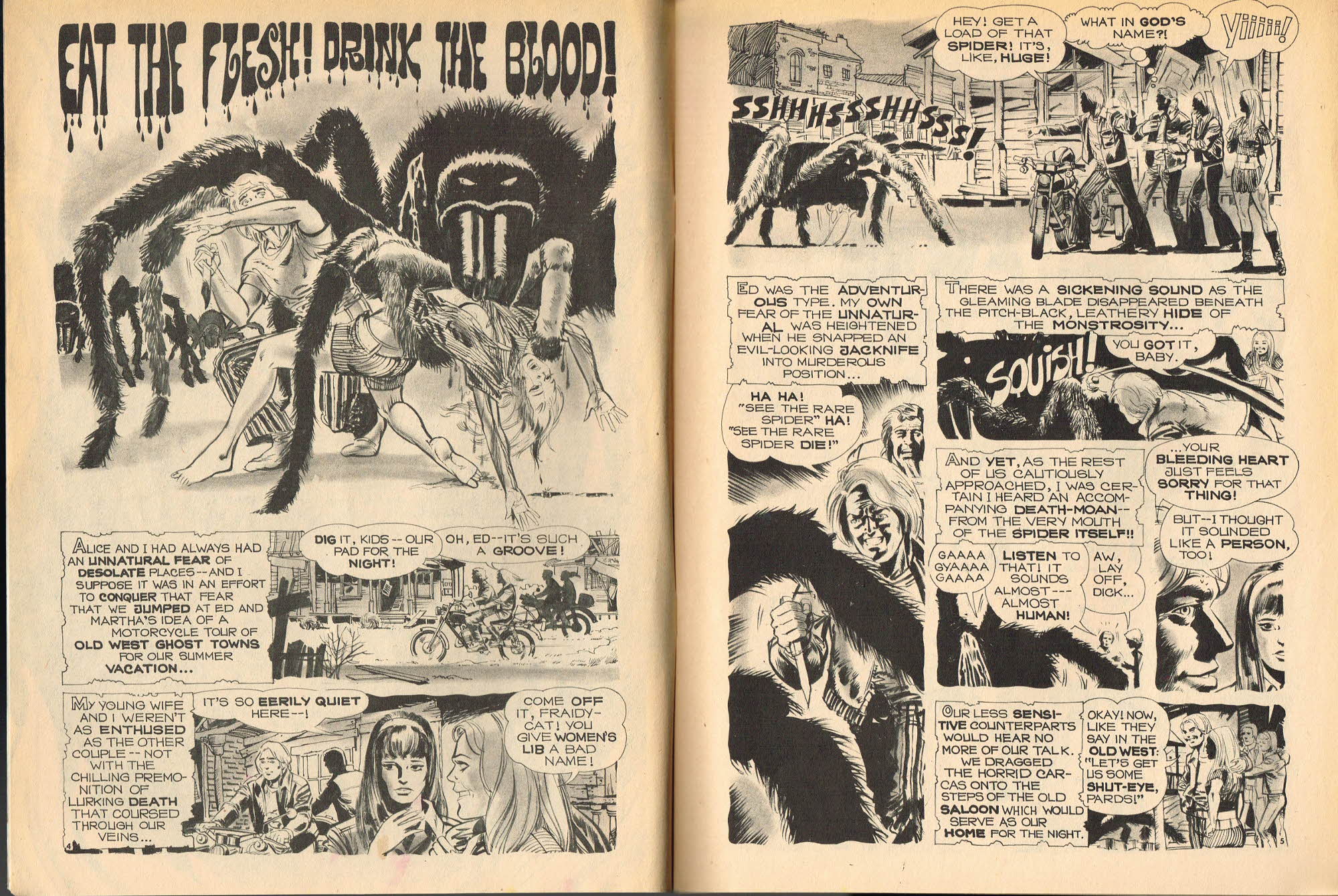 Eat the Flesh! Drink the Blood! gets my vote for the Creeper Keeper Award. "Hey! Get a load of that spider! It's like, HUGE!" Mike Howlett in his The Weird Indexes of Eerie Publications believes this story may be an original because he couldn't find a precursor. It would make an awesome radio horrordrama.