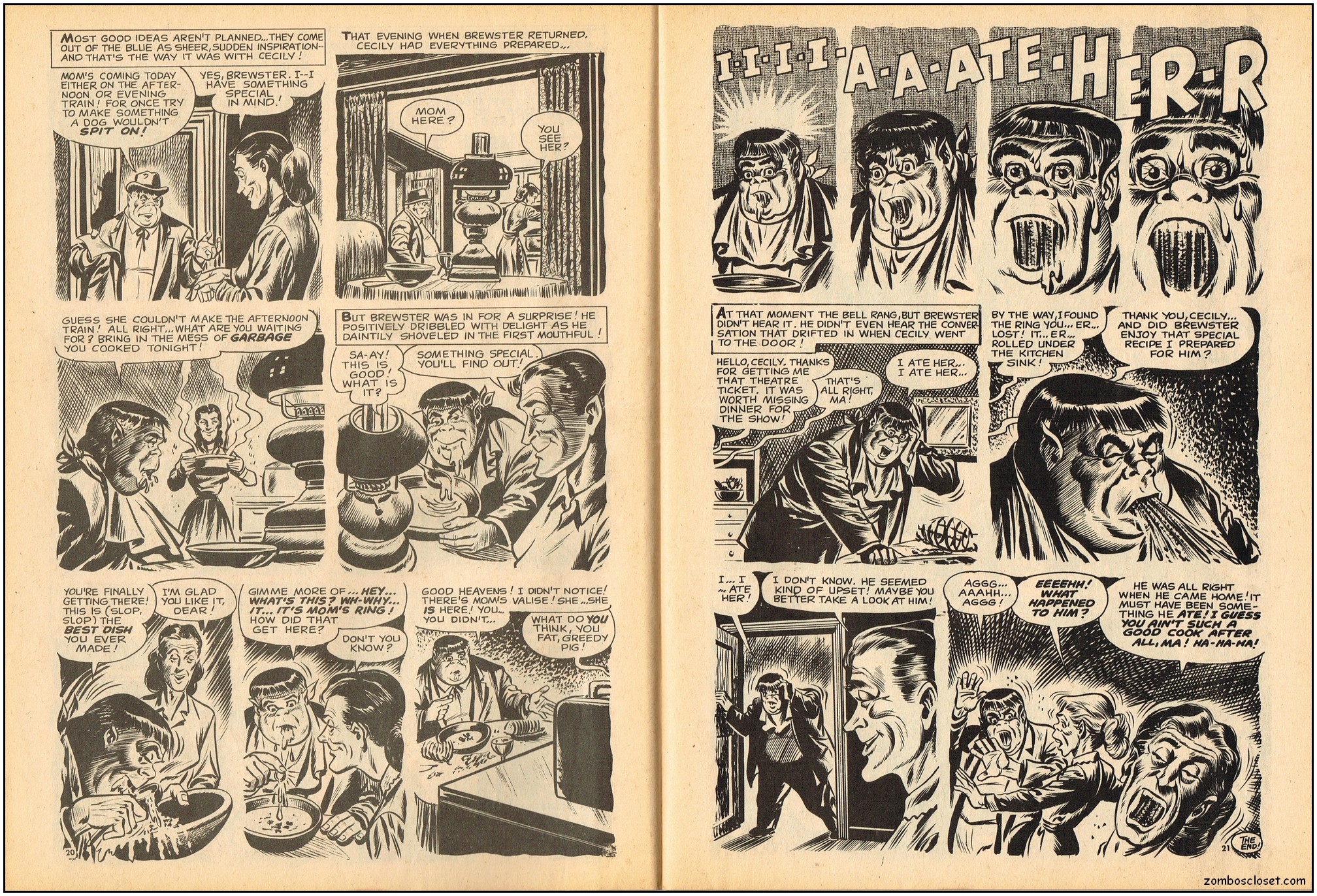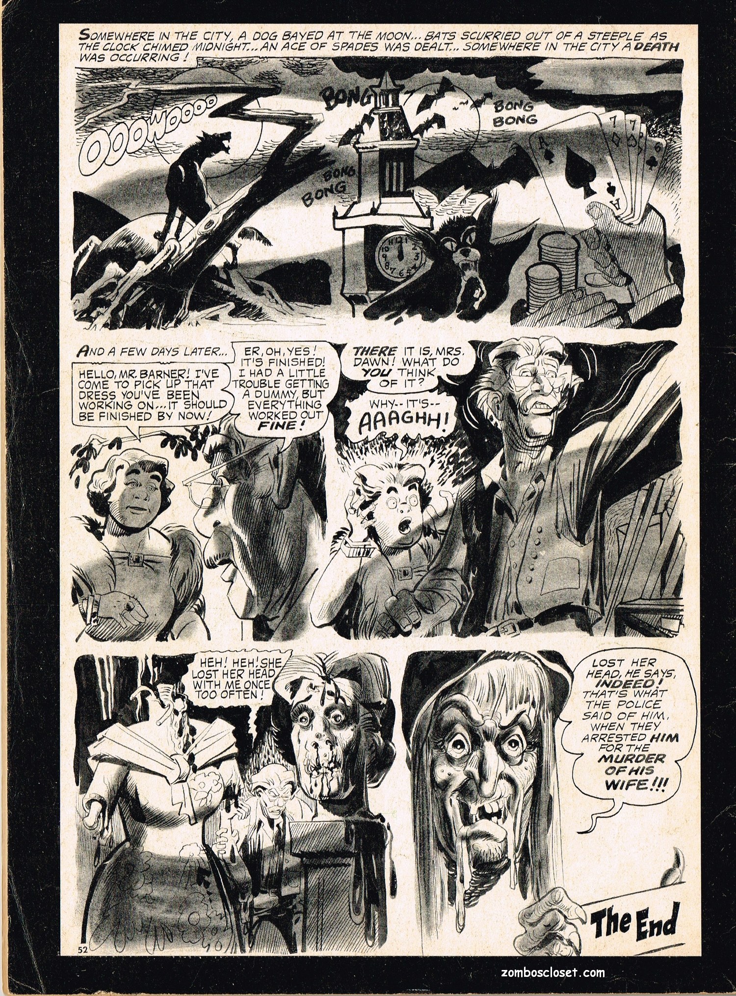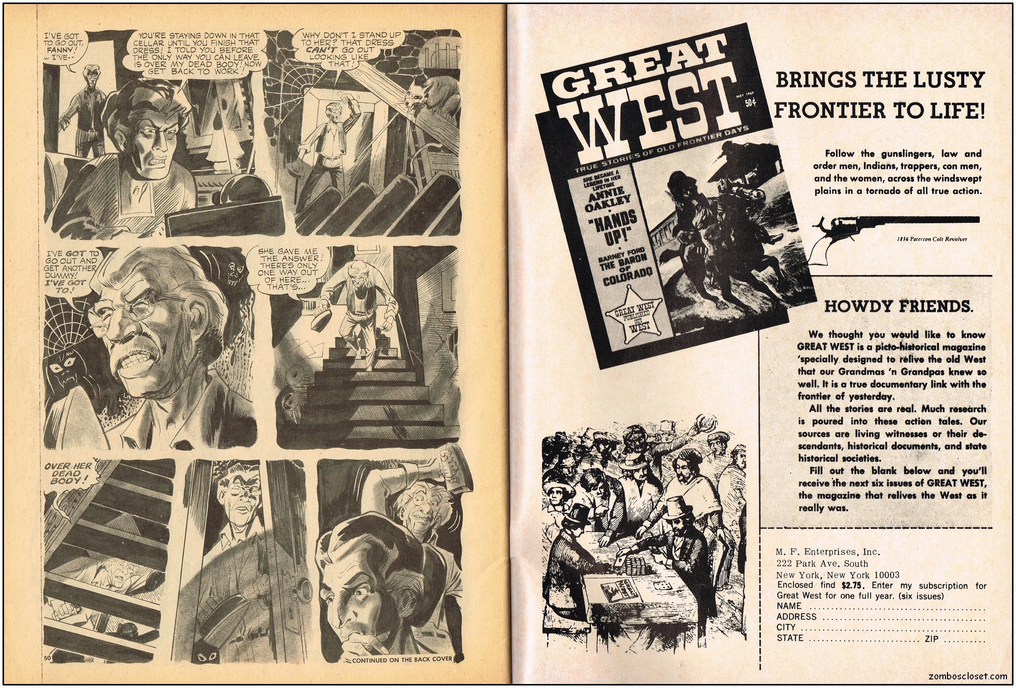How could any self-respecting monsterkid pass up on such a cover? Of course, once snatched from the magazine rack, one would need to be vary careful around one’s mom and employ subterfuge and guile to keep such a magazine carefully hidden. Just saying. I learned my lesson with Vampirella No. 1. My mom outsmarted me THAT time. She threatened to dial up Warren Publications and organize all manner of mayhem against them. No telling what she would have done if she saw this issue of Witches Tales. Speaking of witch (hey, a pun!), this issue is gruesomely drawn and vile in its depictions of victims and sinners. Perfect!