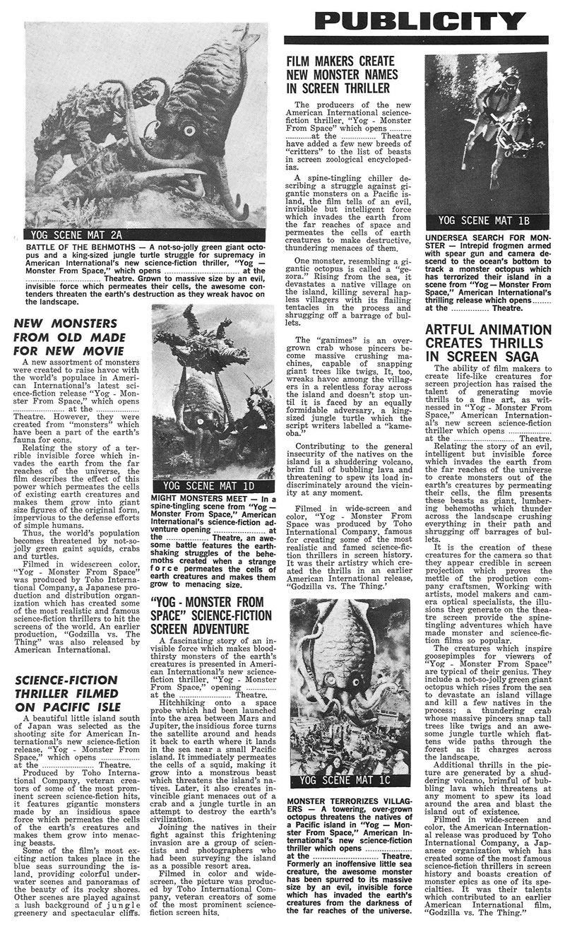 Yog, Monster From Space (1970) Pressbook 1 Comment / Pressbooks (Horror, Sci Fi, Fantasy) / By JM Cozzoli As usual, the exploitation section is the most interesting part of this pressbook. Like this:Like Loading... Share this post Facebook Twitter Pinterest Linkedin