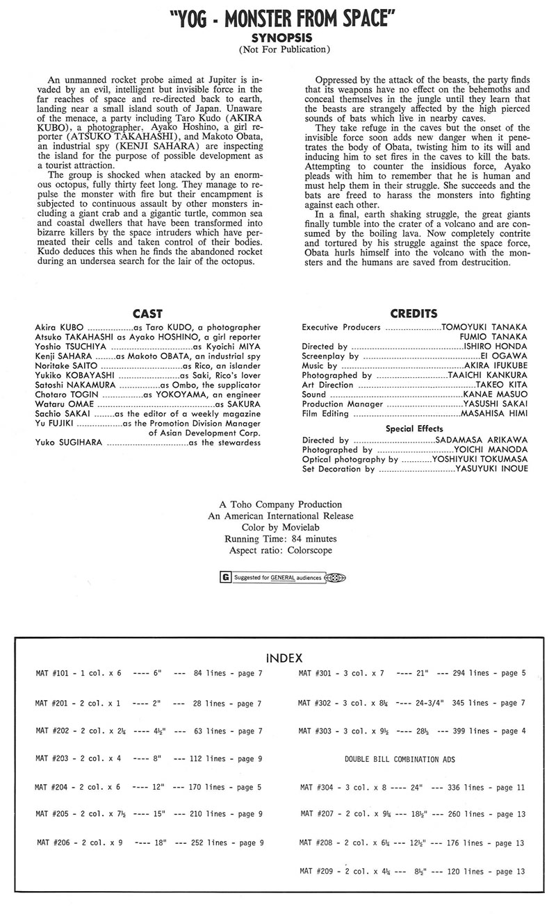 This is great. An underrated if almost unknown Kaiju at the end of Toho’s reign as the king of the monster movie studios. I did a post a while back about Yog and hope I can link this article to my post for Yog fans out there. Good stuff John.