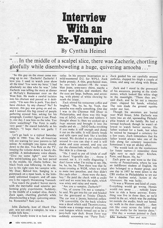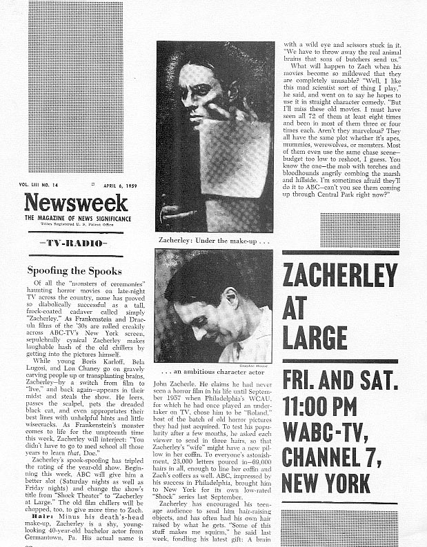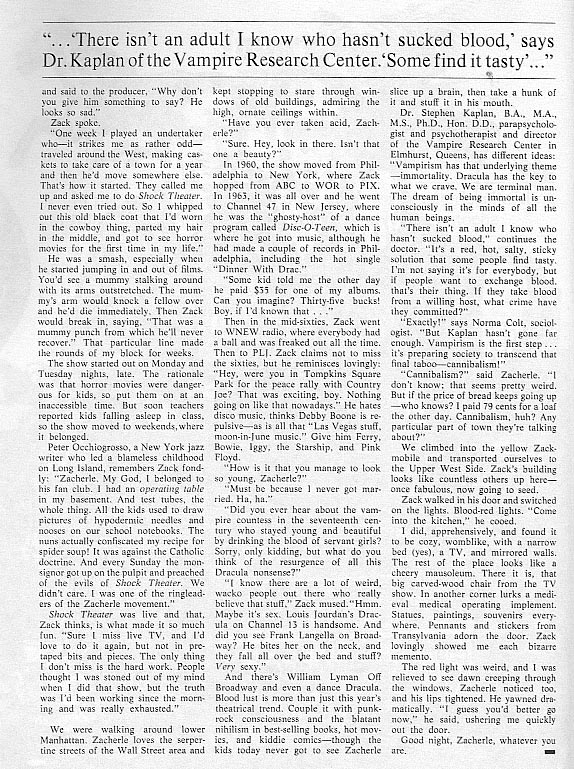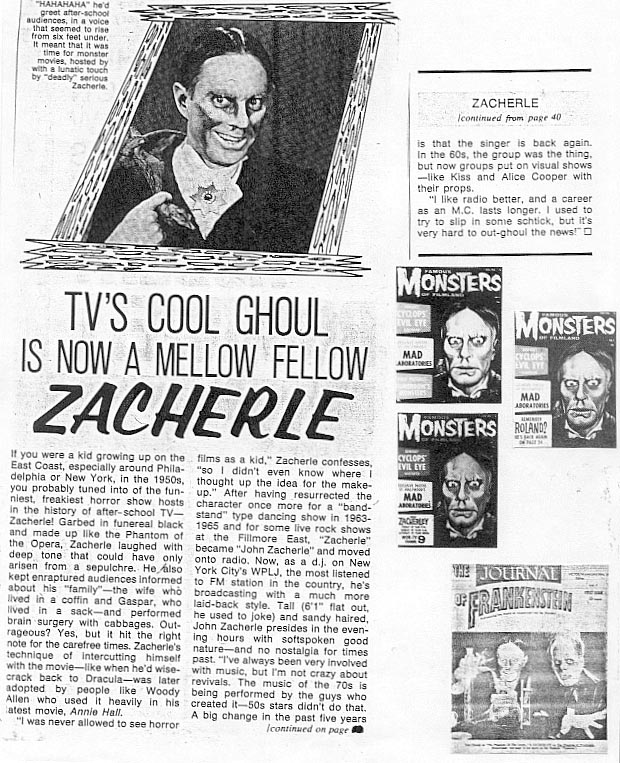 Professor Kinema’s Zacherley Fanzine Issue 1 (Part 2) Leave a Comment / Horror Hosts, Professor Kinema Archives / By JM Cozzoli More photos, articles, and ghoulish delights to warm the cockles of your nostalgic heart… with the Cool Ghoul Zacherley. Brought to you by Jim “Professor Kinema” Knusch. Like this:Like Loading... Share this post Facebook Twitter Pinterest Linkedin