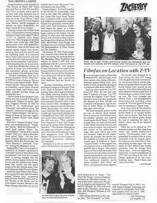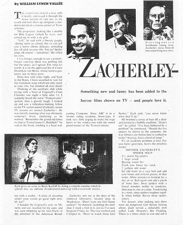 Professor Kinema’s Zacherley Fanzine Issue 3 (Part 1) Leave a Comment / Horror Hosts, Professor Kinema Archives / By JM Cozzoli More Zacherley the Cool Ghoul history from the crypt of Professor Kinema…(click to enlarge)… Like this:Like Loading... Share this post Facebook Twitter Pinterest Linkedin