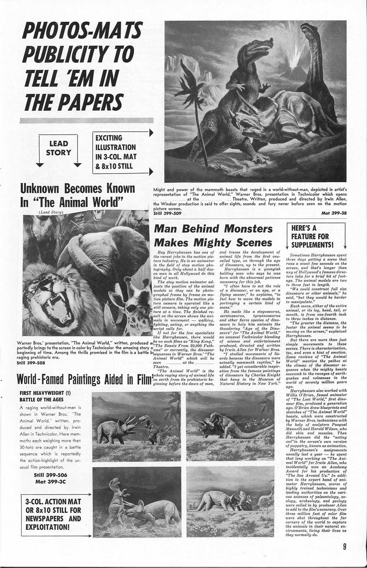 Terry Michitsch, once again, has come to the rescue to provide additional scans of missing pages for this enjoyable pressbook, another Ray Harryhausen and Willis O'Brien treat. Some of these stop-motion scenes wound up in the Night Gallery's, The Painted Mirror episode and the Joan Crawford tearjerker, Trog.