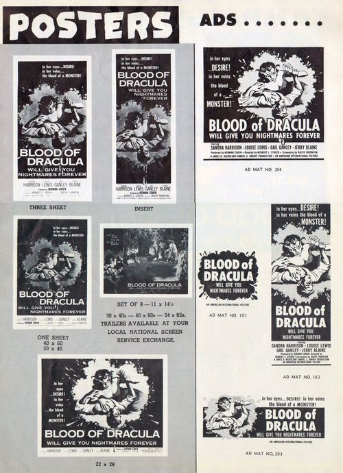 Another wonderful American International double bill, folder-styled, pressbook from the Tony Rivers collection. From Tony: "All these AIP pressbooks from this era had an extra page (I Was a Teenage Werewolf had the page with ads showing the werewolf's face while How to Make a Monster had the comic strip page in color.) While I don't have that page in my pressbook for I Was a Teenage Frankenstein, I found a small picture of it online and am enclosing it as the last page. " (Note: See next to last page for "American News: Frankenstein Versus Dracula" promotional articles).