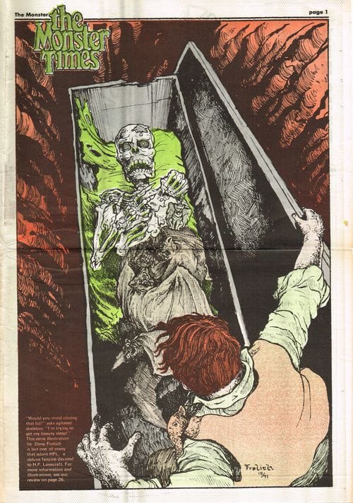 An underwhelming writing exercise for The Valley of Gwangi (a storyline for the movie, not a review or analysis), but an informative article on Vampires in the Comics, takes over issue 15 of The Monster Times. By now it's obvious that TMT is stronger when discussing comic books than classic movies. While comic book articles receive more devoted attention, genre movies were given the usual let's write out the movie's story for you to read brush-offs. While I didn't much notice this when I originally read TMT, now--and of course given the Internet's glut of information, and the easy availability of movies today--it's irksome to read. Yes, it was a different take on covering the movies, but not anywhere near fun to read as the other, more lively, articles in TMT. Alfred Hitchcock is also interviewed, and Gary Brown gives love to HLP. The Roots of Evil: The Carrot That Conquered the World by Jim Winoroski, and Joe Kane's article on Blacula, shows how much more TMT could do with writing about genre movies when given a mind to.