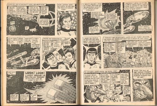 A Star Trek Hall of Fame kicks off this second half of Quasimodo's Monster Magazine Issue 8 as the movie is "90% set," followed by a comic, Star Wrecked vs: Spaced-Out 19991/2 (a fan produced one, I'd say). Don Wigal explores Shark Fever with Jaws (a very informative article on the production, Steven Spielberg, and the movie's influence). Another good article by Ed Connor discusses silent serials, and a short look at 1931's The Spider with Edmund Lowe as a magician (he also played Chandu the Magician in the 1932 movie of the same name, being vexed by Bela Lugosi). Finishing off the issue is an interview with author Edward Edelson on his science fiction films book, Visions of Tomorrow. All told, this issue packs some punch with its articles.