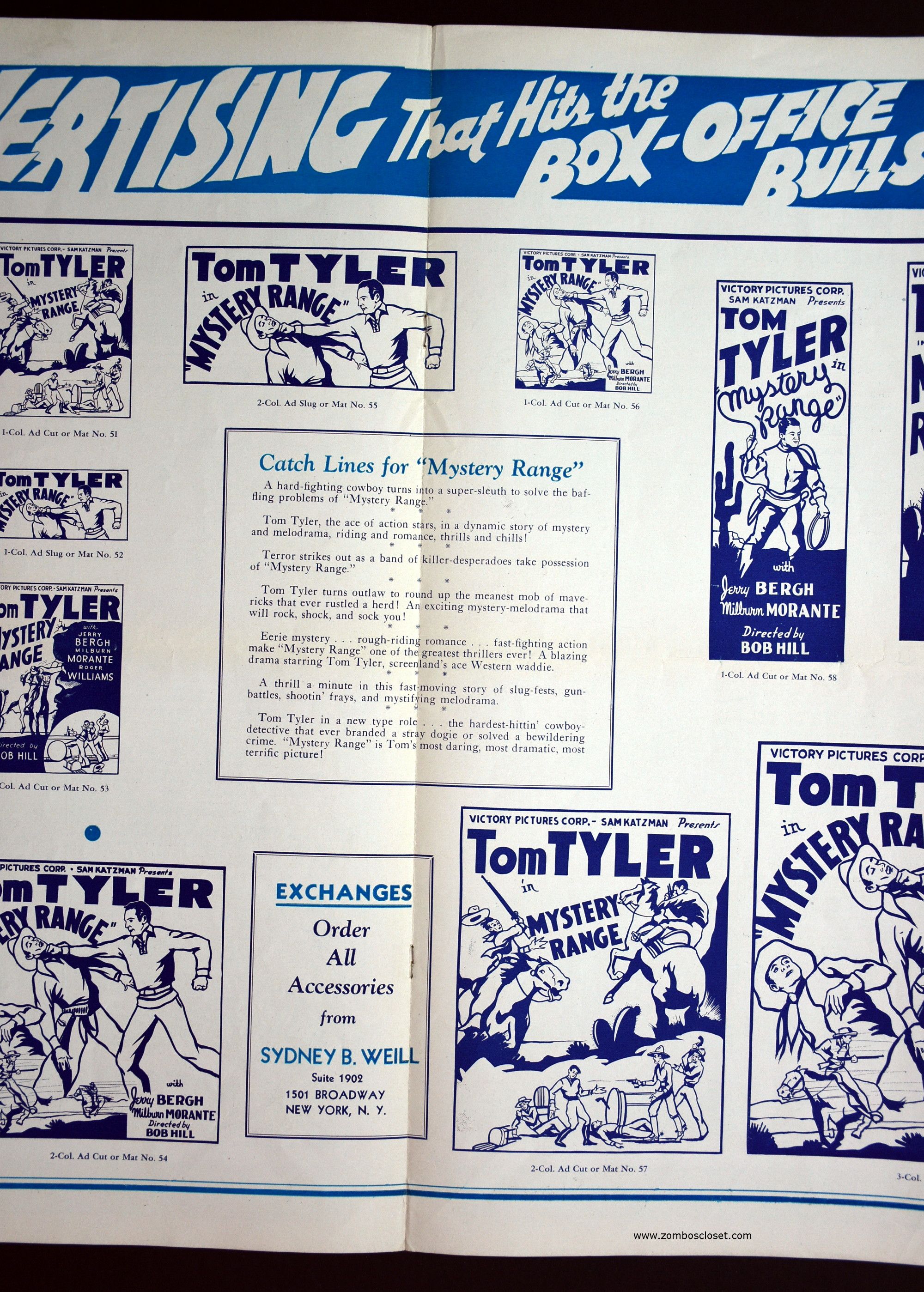 Cowboy movies may be poised for a comeback. Saddle up with Tom Tyler in Mystery Range to prepare yourself. Here's the comic book reader version to slip into your digital saddlebag: Download Tom Tyler Pressbook, before you hit the trail.