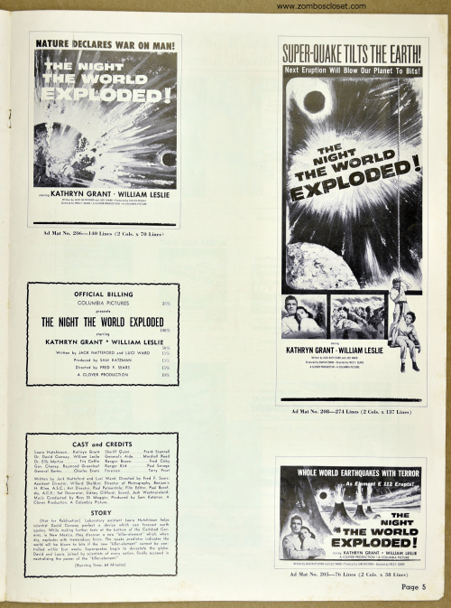 The lower half of a double bill with The Giant Claw, The Night the World Exploded, once again, has a scientist, his Girl Friday, and the wonders of technology. So for the price of one movie ticket you got a lecture on antimatter and one on geothermal activity. Of course, these movies wouldn't be science fiction without some sort of monster. For The Giant Claw there's an astro-bird and for The Night the World Exploded you get little black rocks that grow in size until they blow up or, as the tagline reads, "Terror from above! Horror from below!"