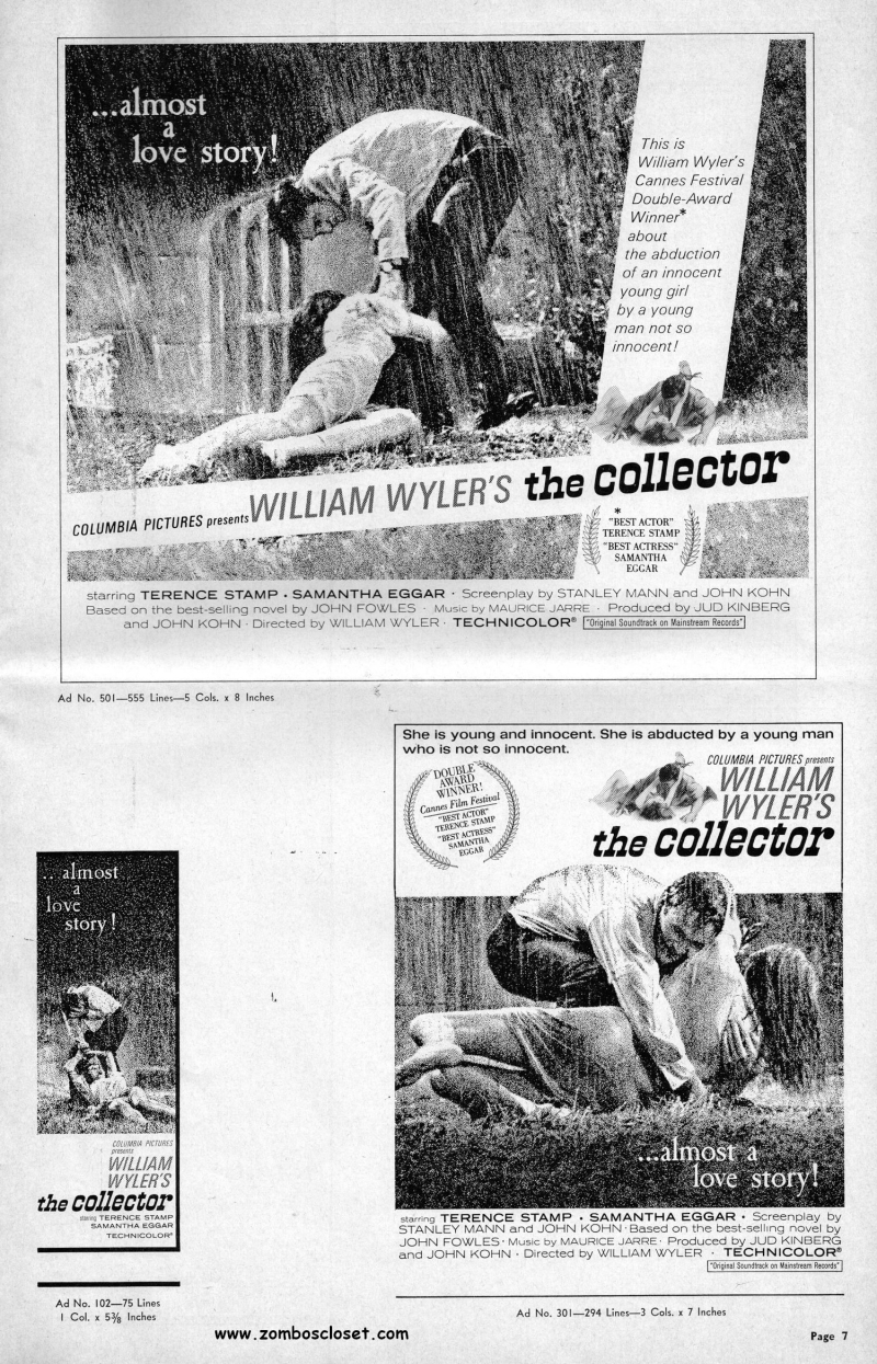 I caught this on television a long while back and found it disturbing. A psychological horror story, it leaves you with a definite depressed mood. Terrence Stamp and Samantha Eggar provide the tension and terror as he displays really bad social skills and she's desperate to escape.