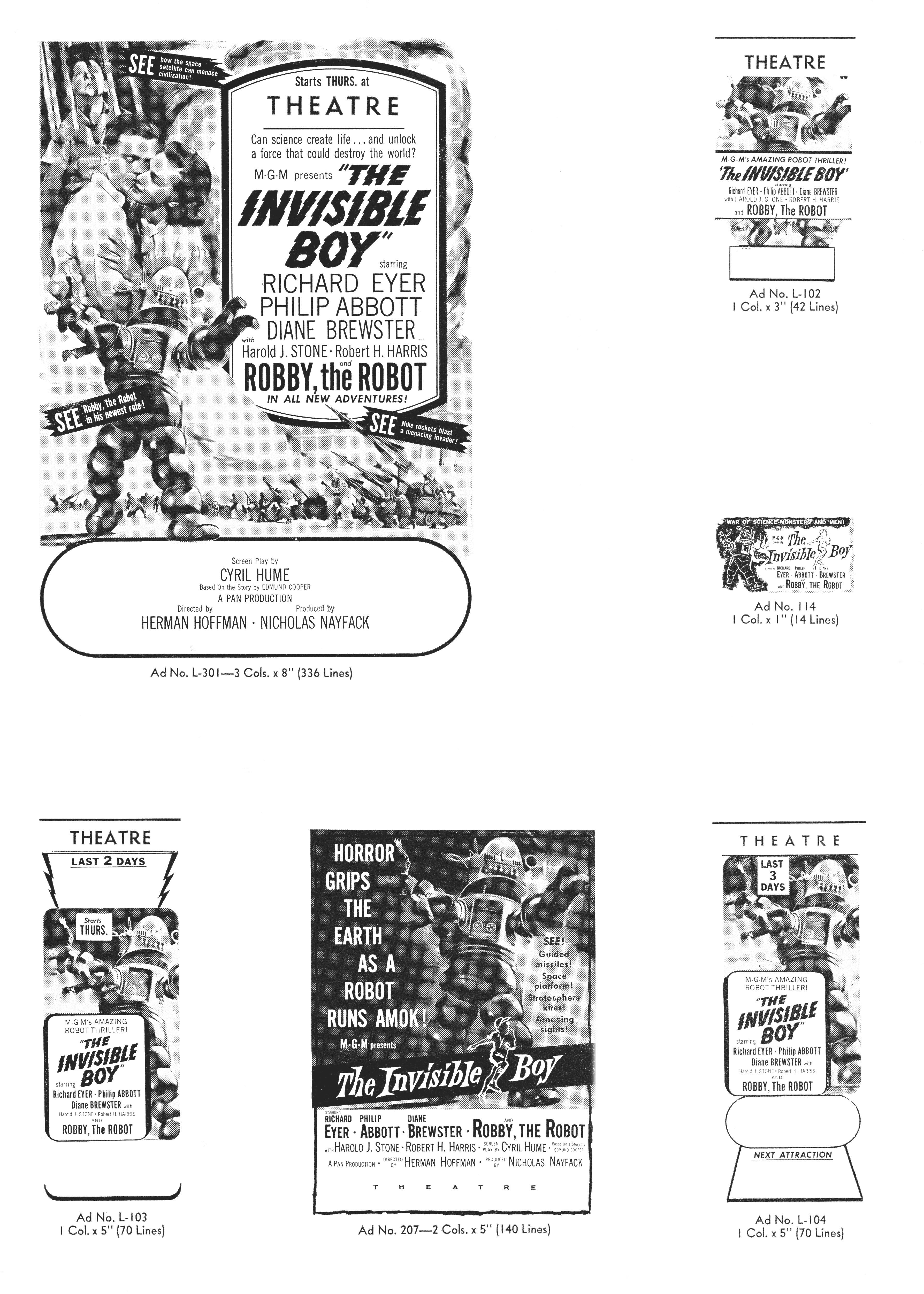 Thanks to Terry Michitsch for providing these wonderful scans of the American pressbook for The Invisible Boy. You can see the UK one here.